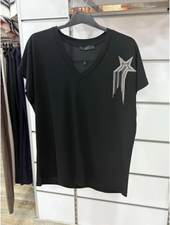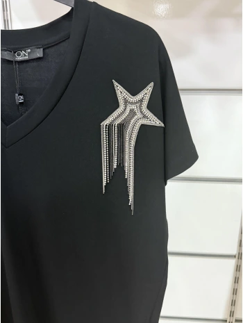 On Fashion Zincirli Yıldız Detaylı V Yaka Bluz 5647