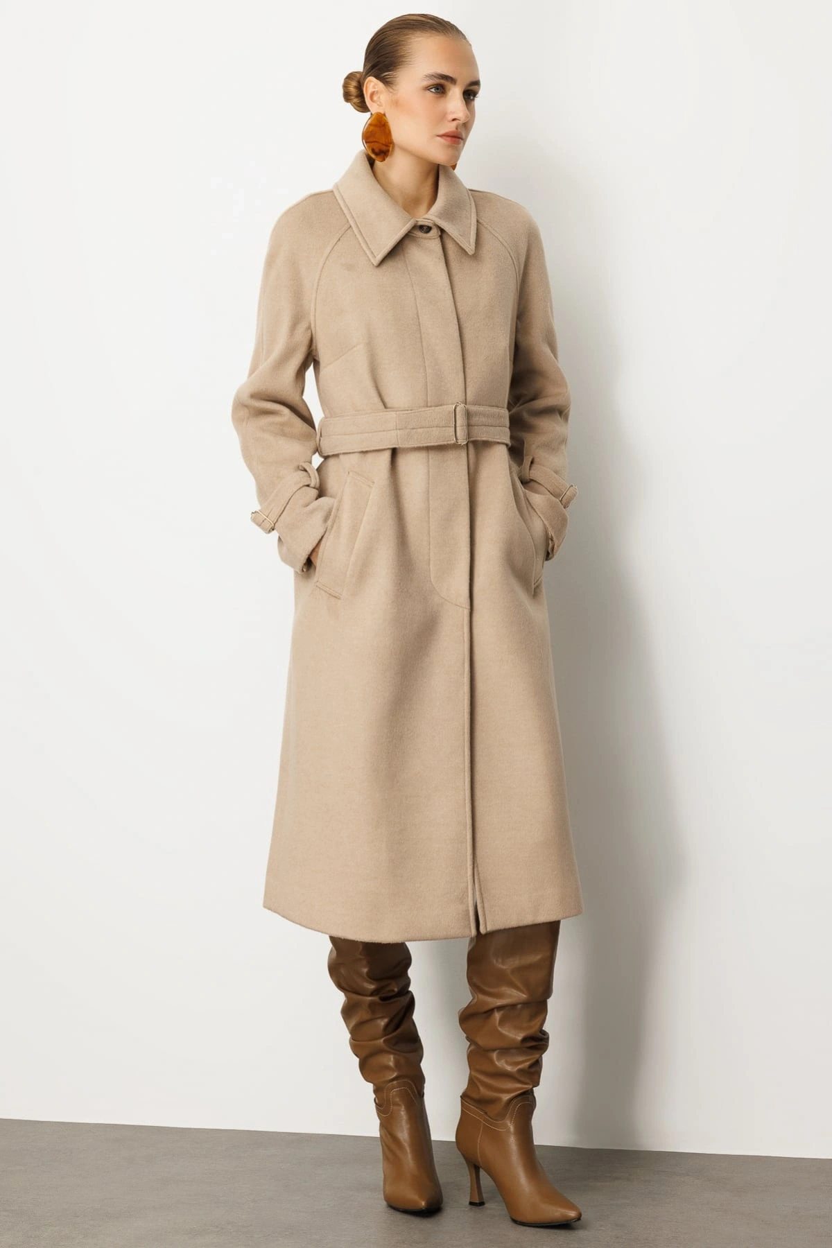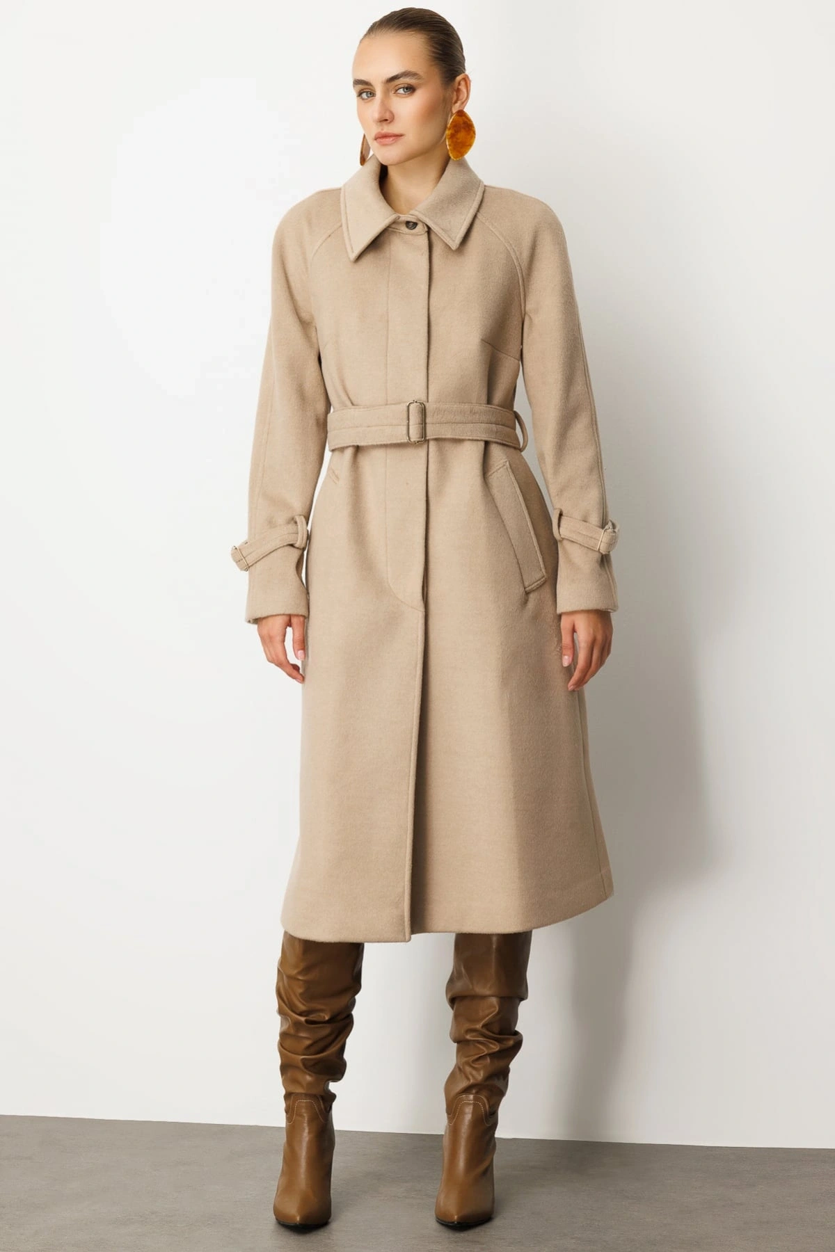 Ekol Beli Kuşaklı Kadın Kum Renk Manto 06057, zarif duruşu ve uzun formu ile 2026 kış sezonu kadın dış giyim koleksiyonlarında öne çıkan bir üründür. Kum rengi, sade ve şık bir görünüm sunarken, beli kuşaklı tasarımı vücut formunu dengeleyen feminen bir siluet oluşturur. Uzun boy kesimi, soğuk havalarda ekstra koruma sağlar.