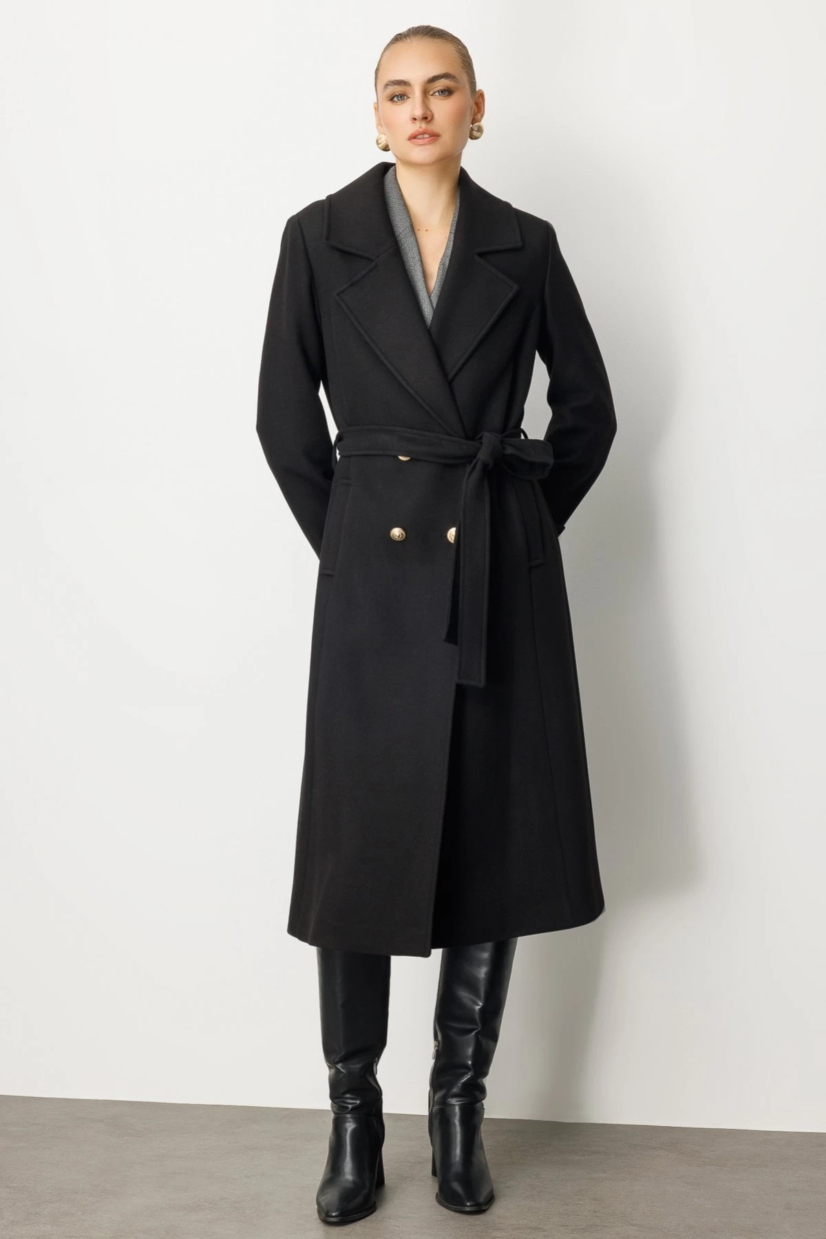 Ekol Kruvaze Yaka Broş Detaylı Manto 06331