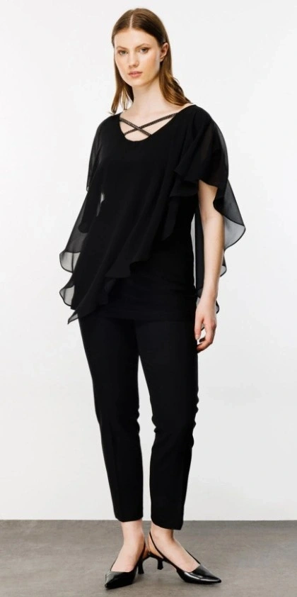 Ekol Ön Ve Arka Kısmı Çapraz İpli Şifon Bluz 01142