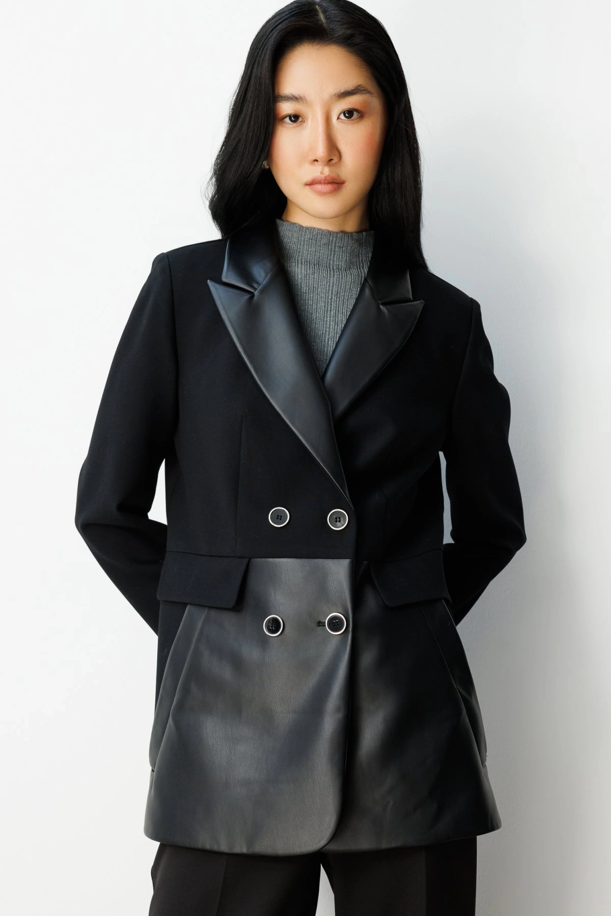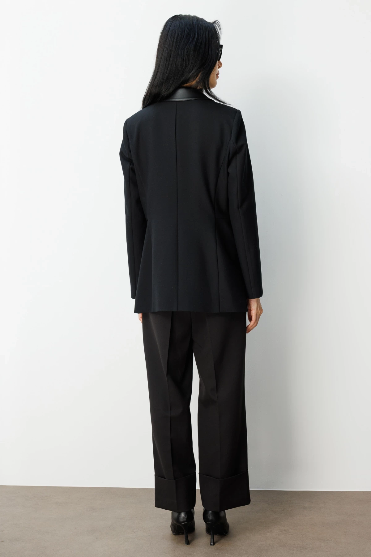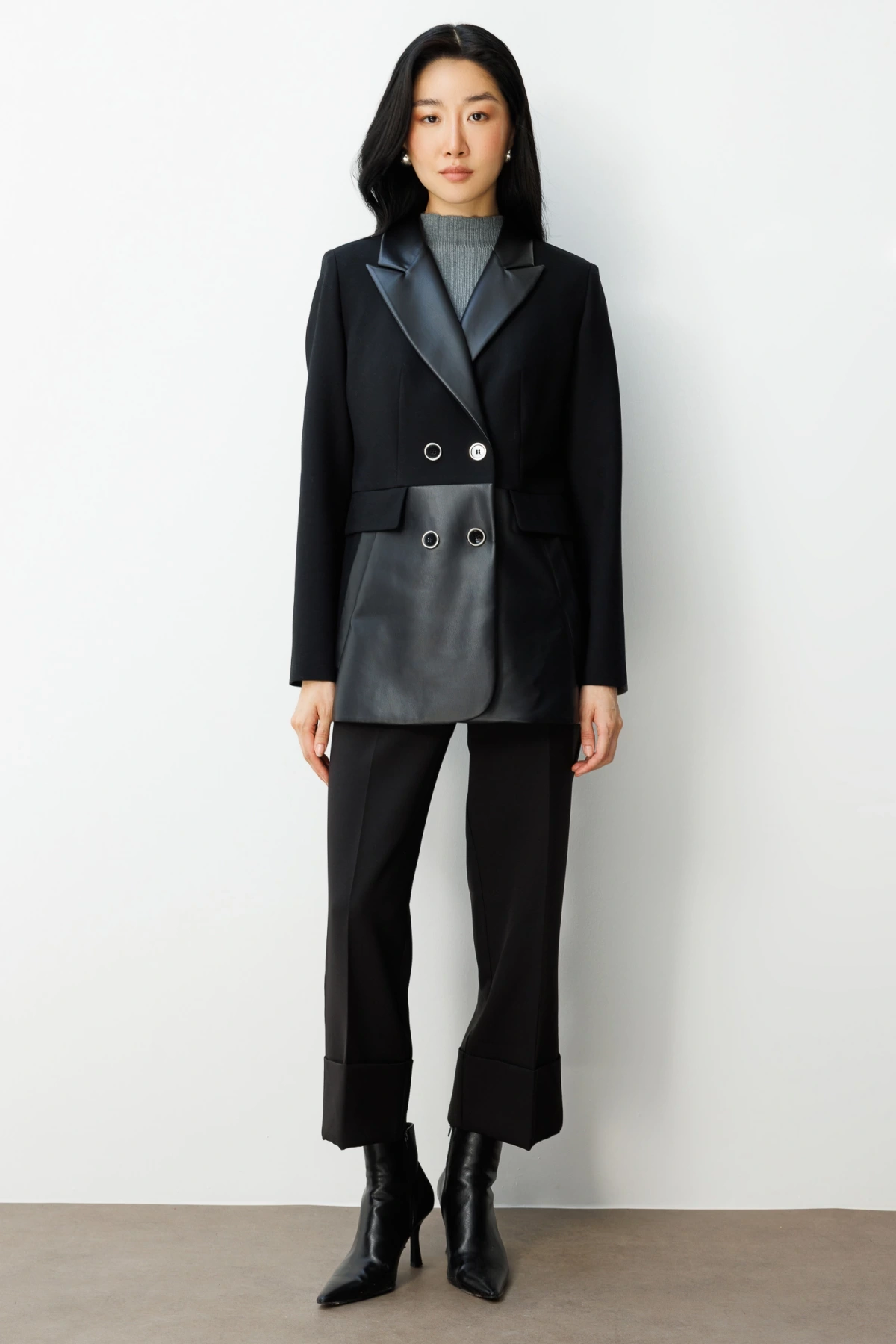 Ekol Suni Deri Detaylı Düğmeli Ceket 05093