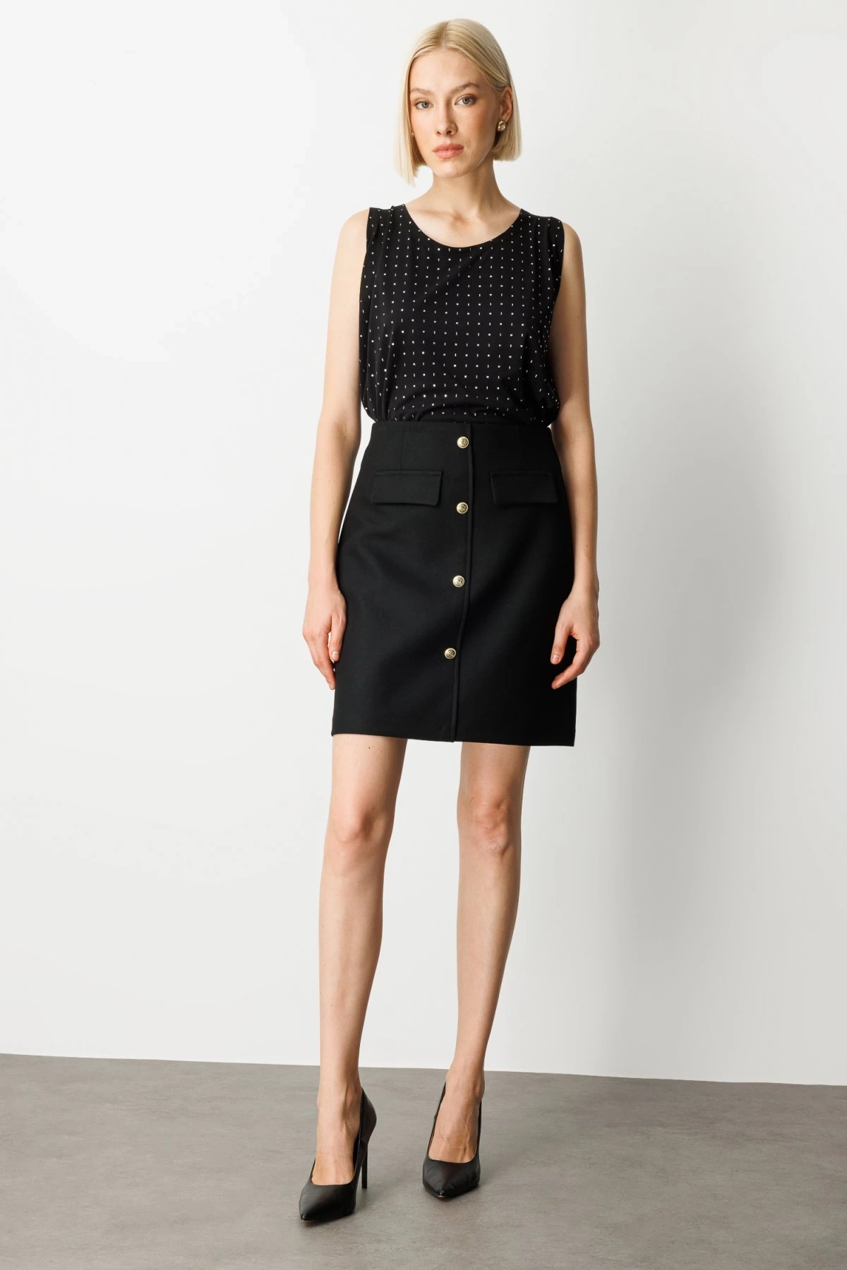 Ekol Süs Düğmeli Mini Kaşe Etek 02001