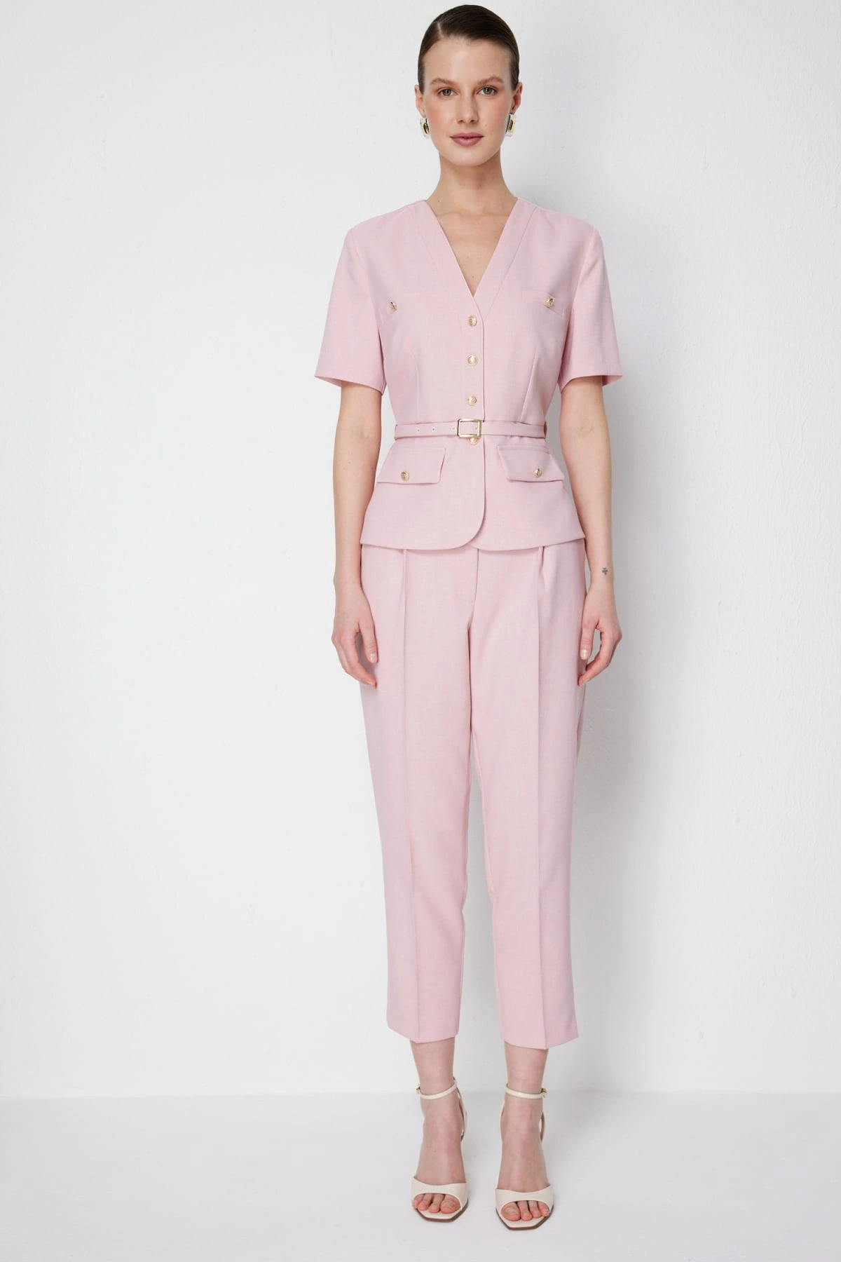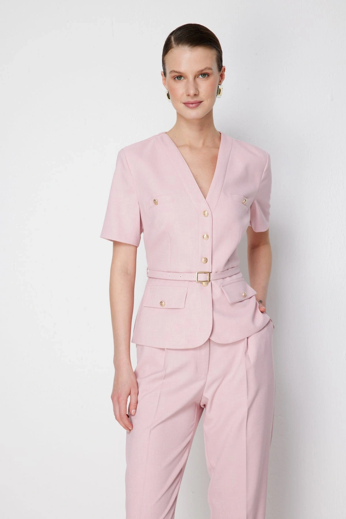 Ekol V Yaka Beli Kemerli Kısa Kol Ceket 01190