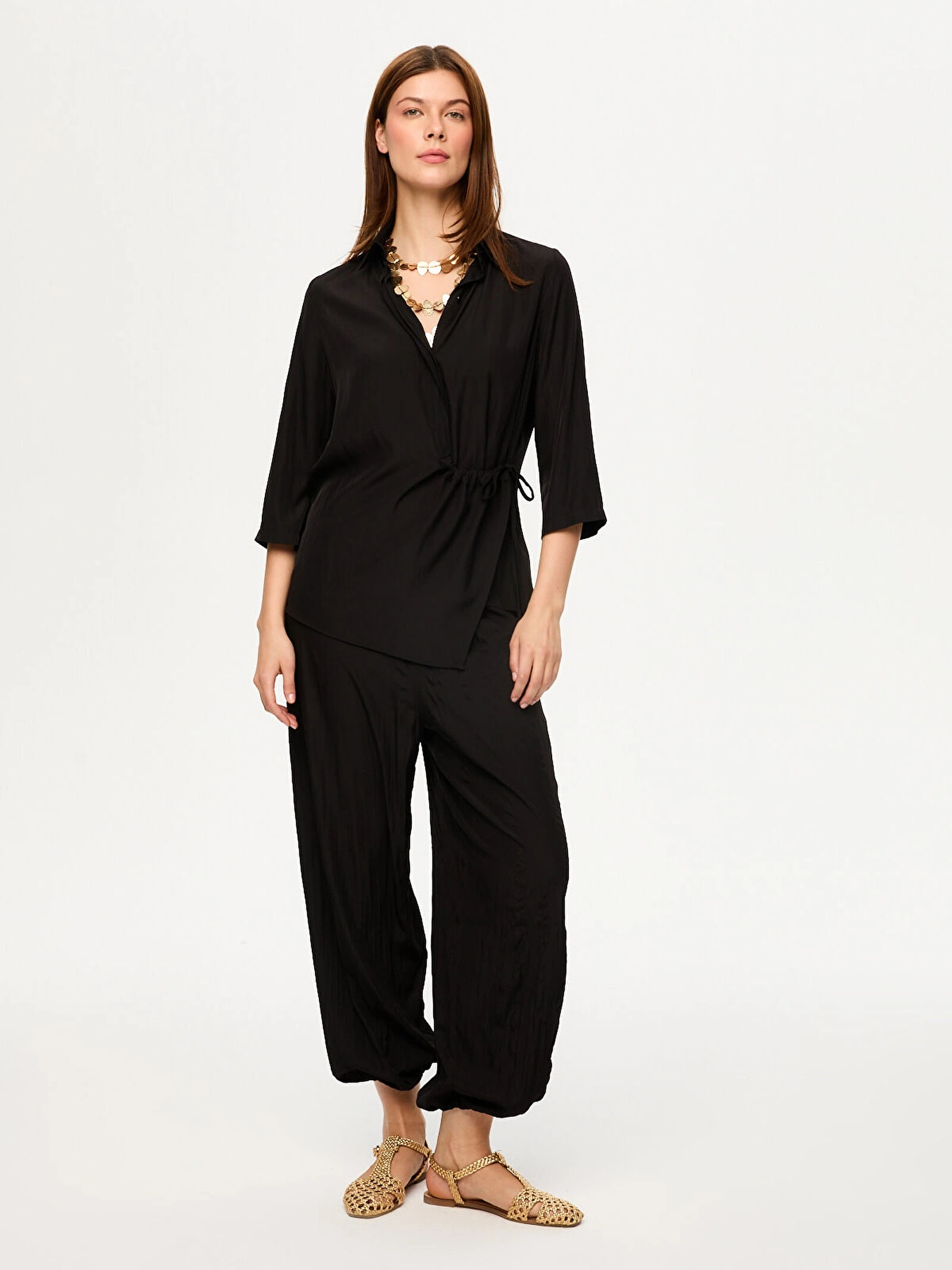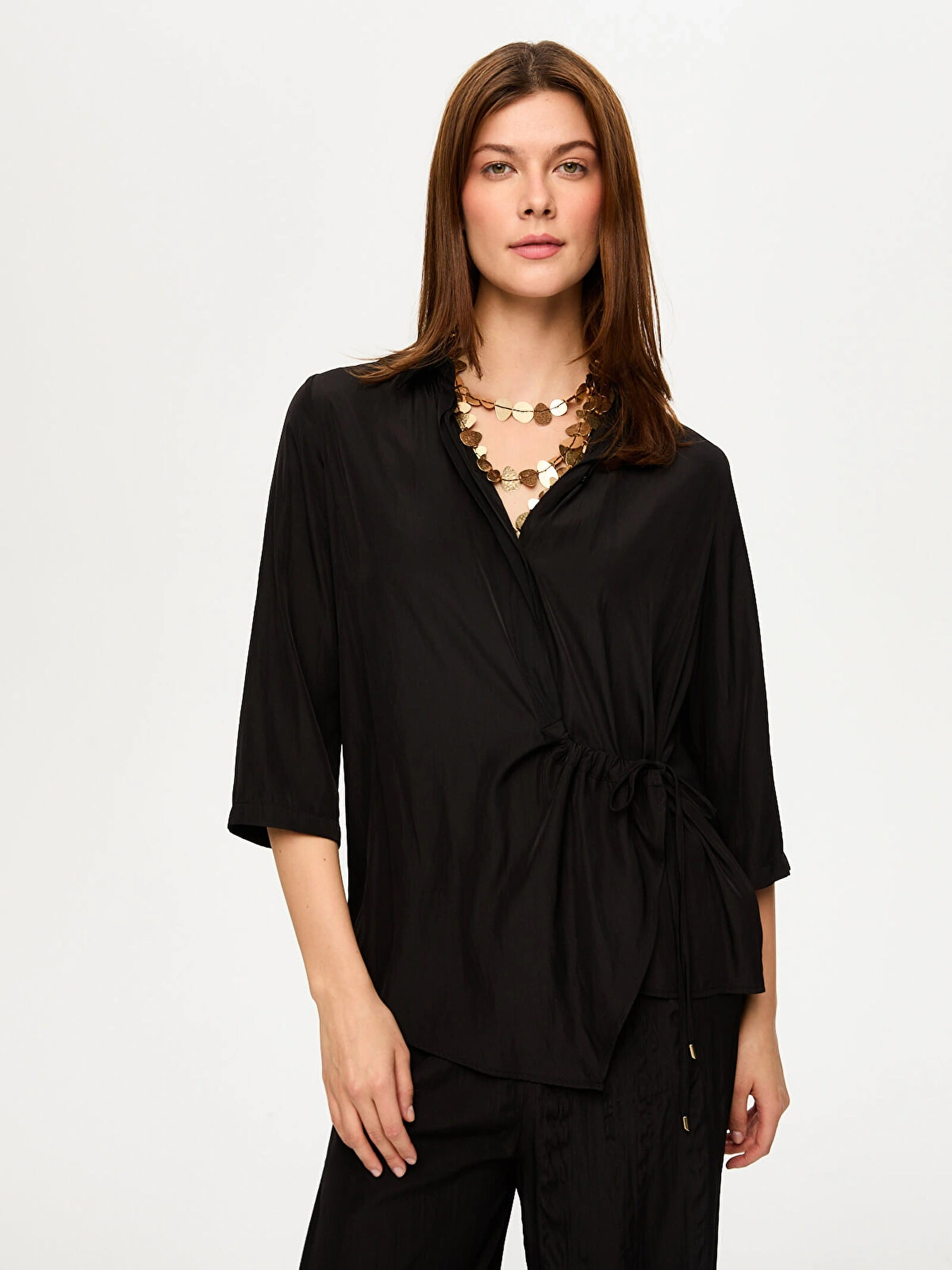 Faik Sönmez Beli Bağcık Detaylı 3-4 Kol Gömlek US26GML009
