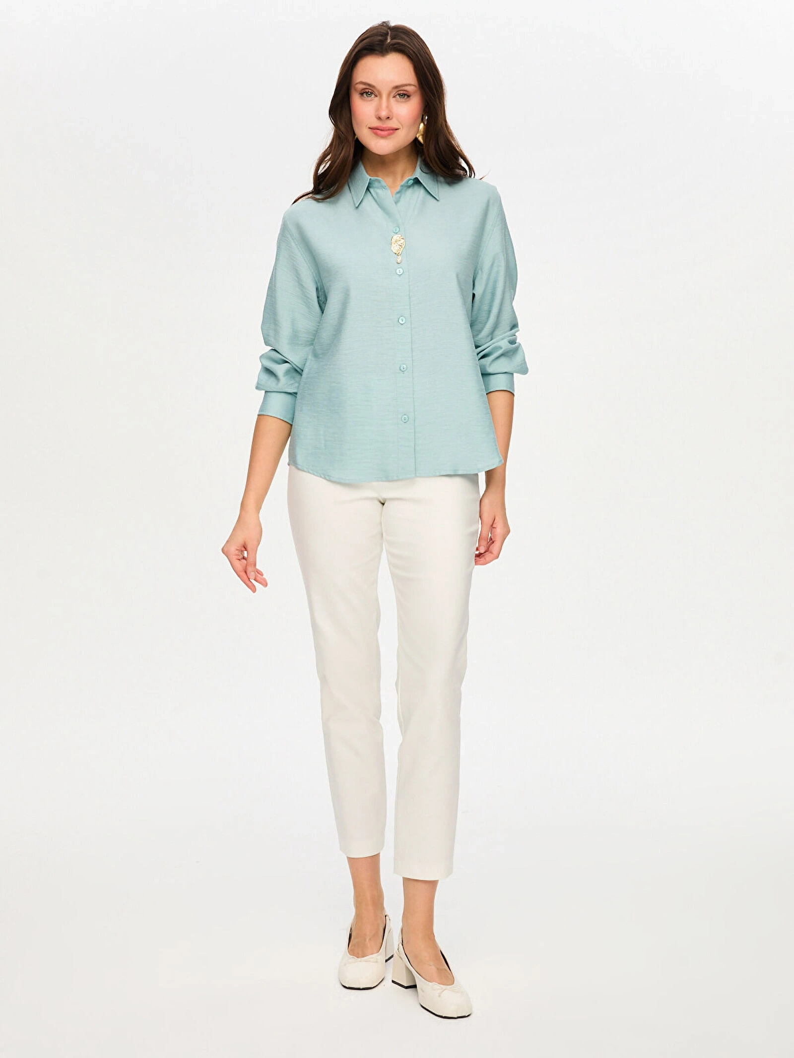 Faik Sönmez Cebi Gold İnci Aksesuarlı Kendinden Desenli Gömlek US26GML017
