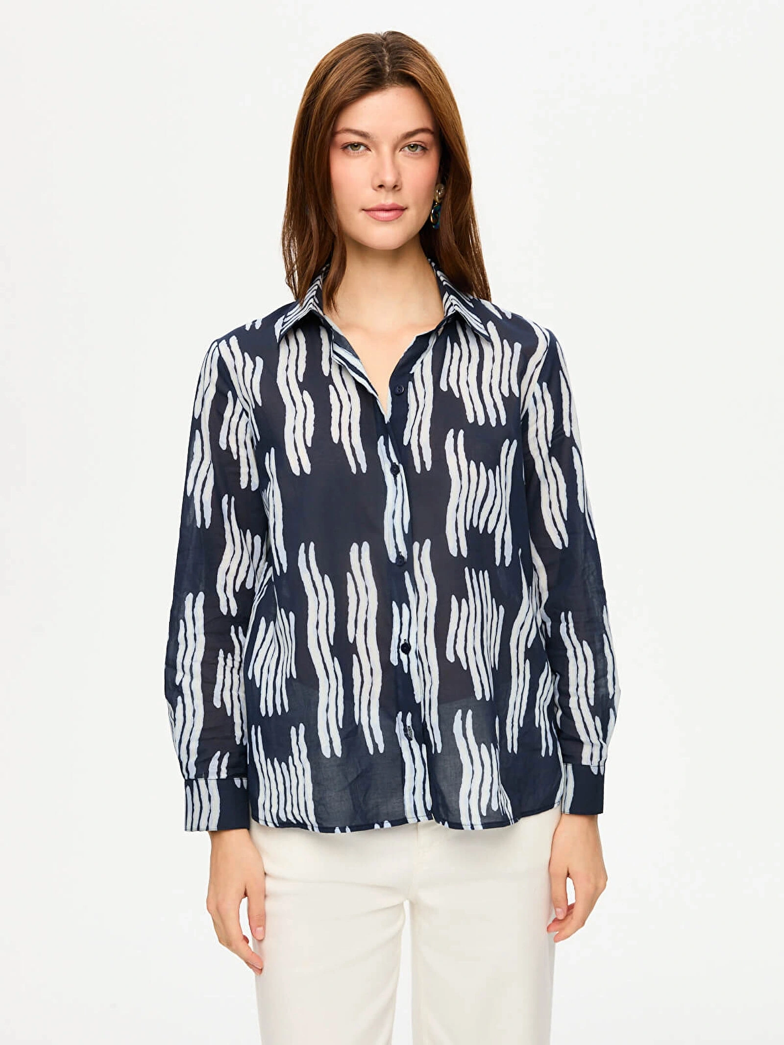 Faik Sönmez Çizgili Desen Uzun Kol Pamuk Vual Gömlek US26GML052