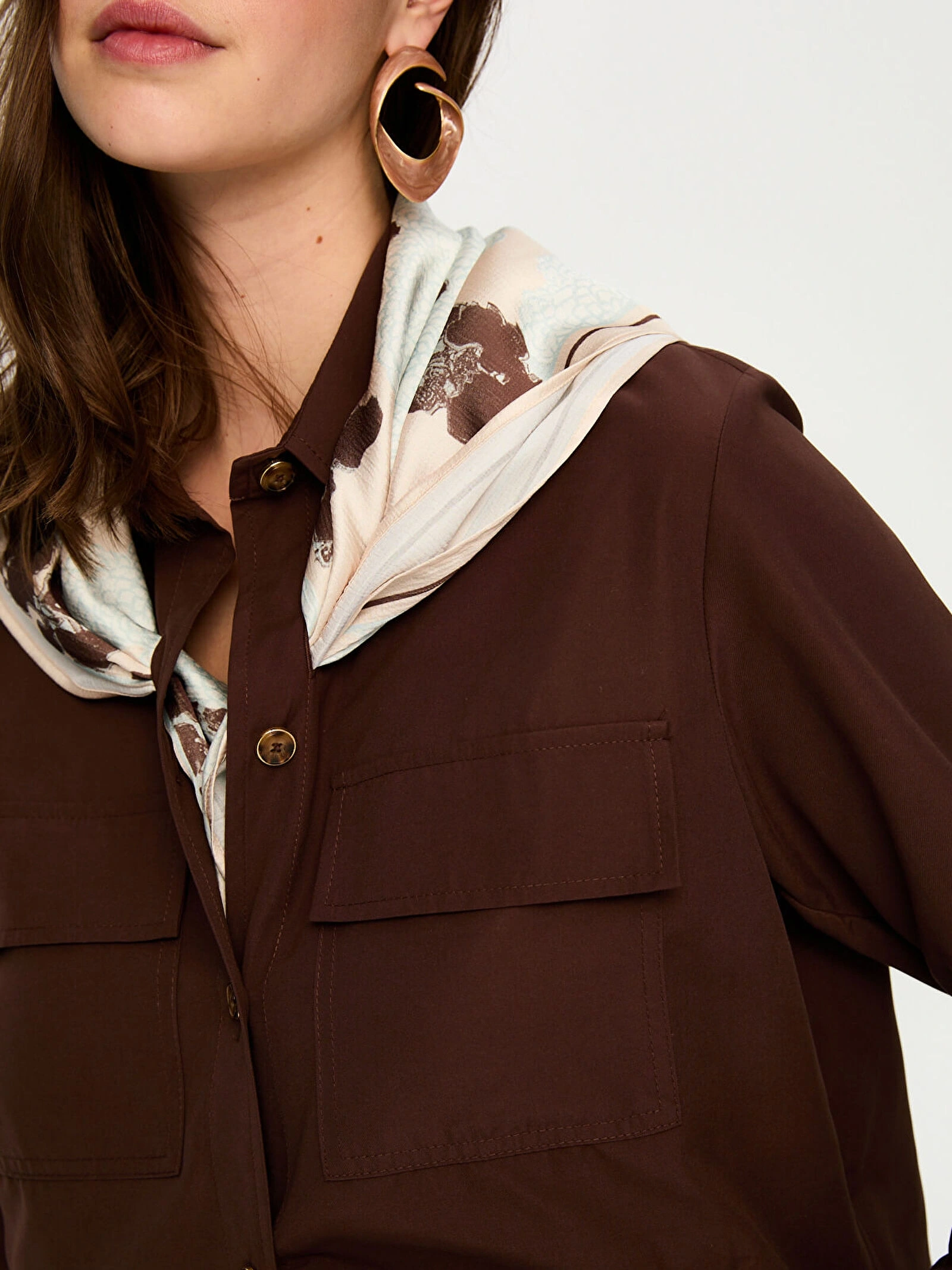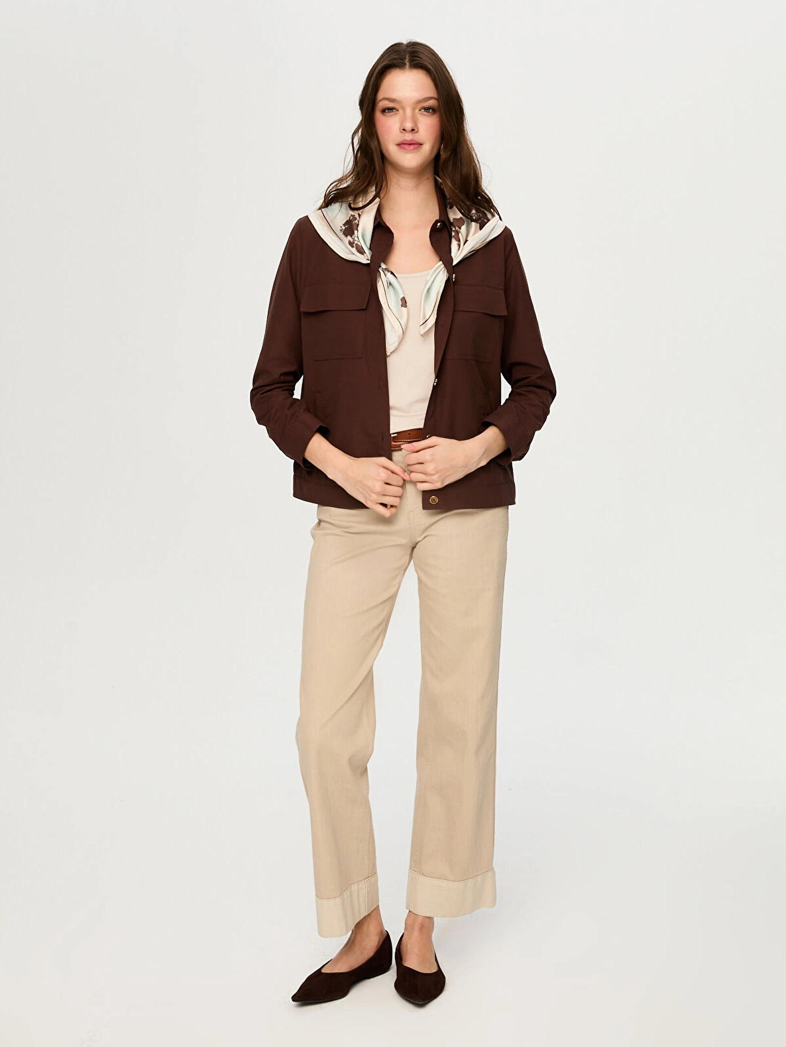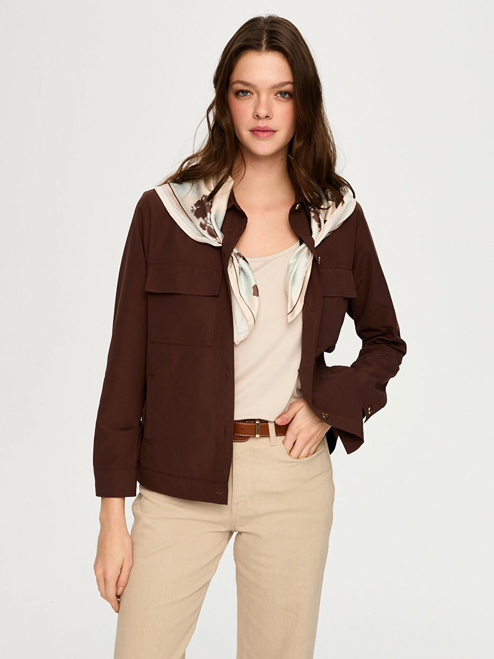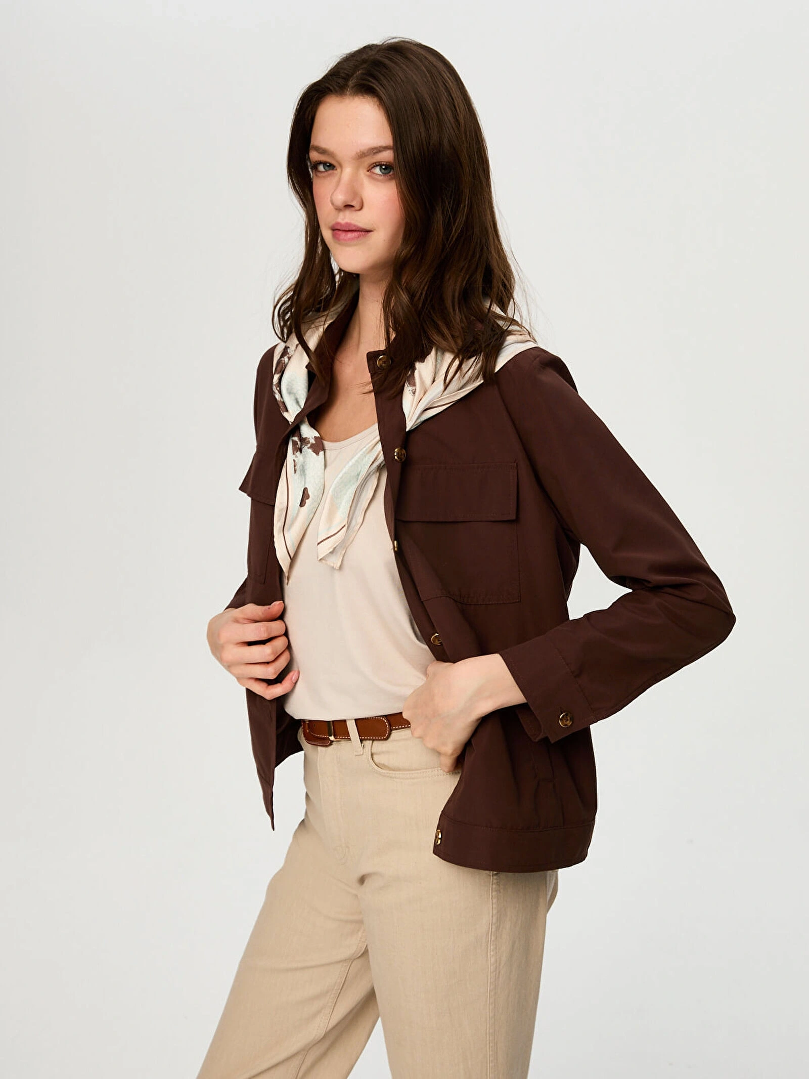 Faik Sönmez Desenli Fular Aksesuarlı Pamuklu Ceket US26CKT031