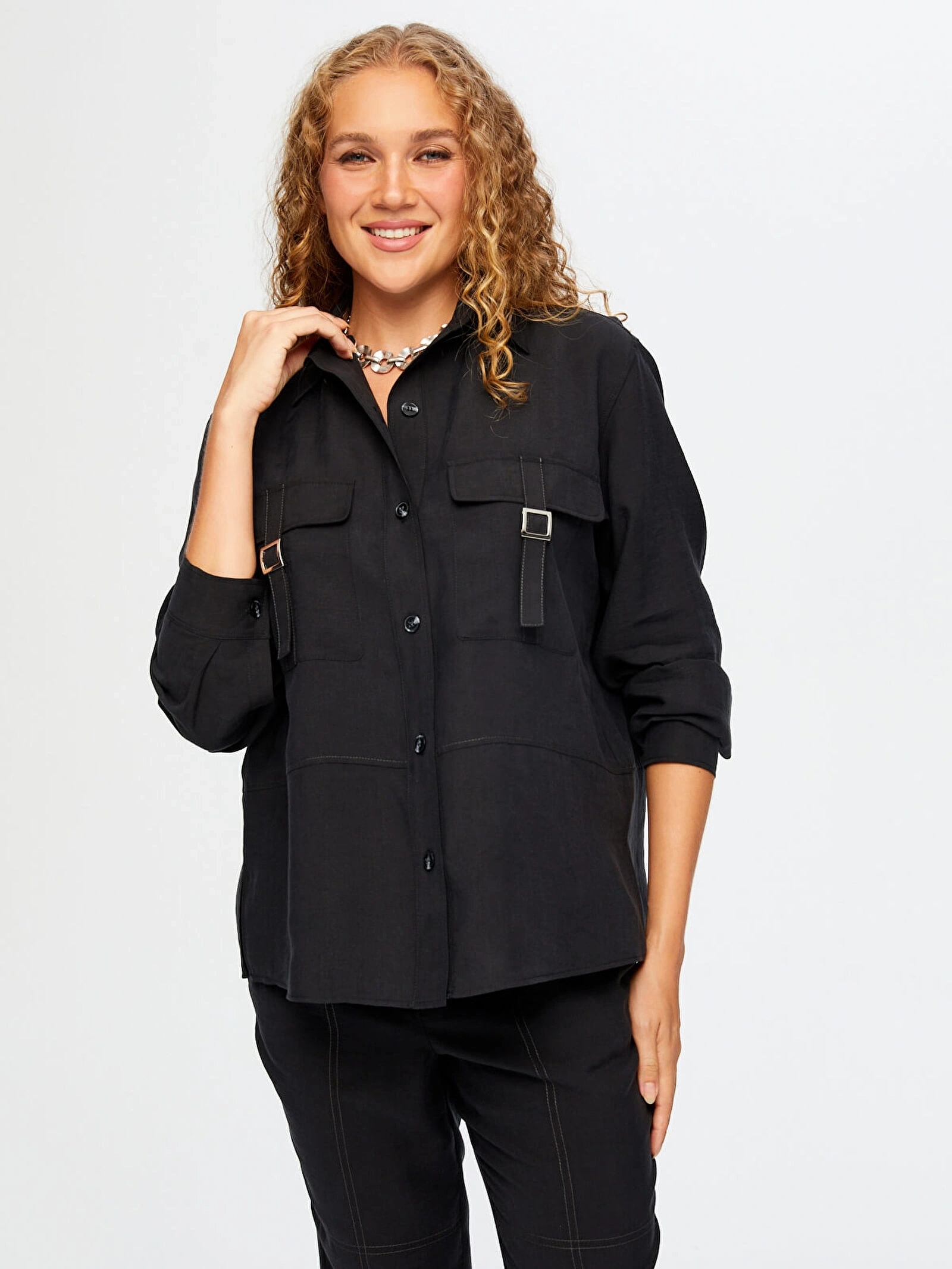 Faik Sönmez Kadın Cepleri Toka Detaylı Tenselli Siyah Tunik UW26TNK001