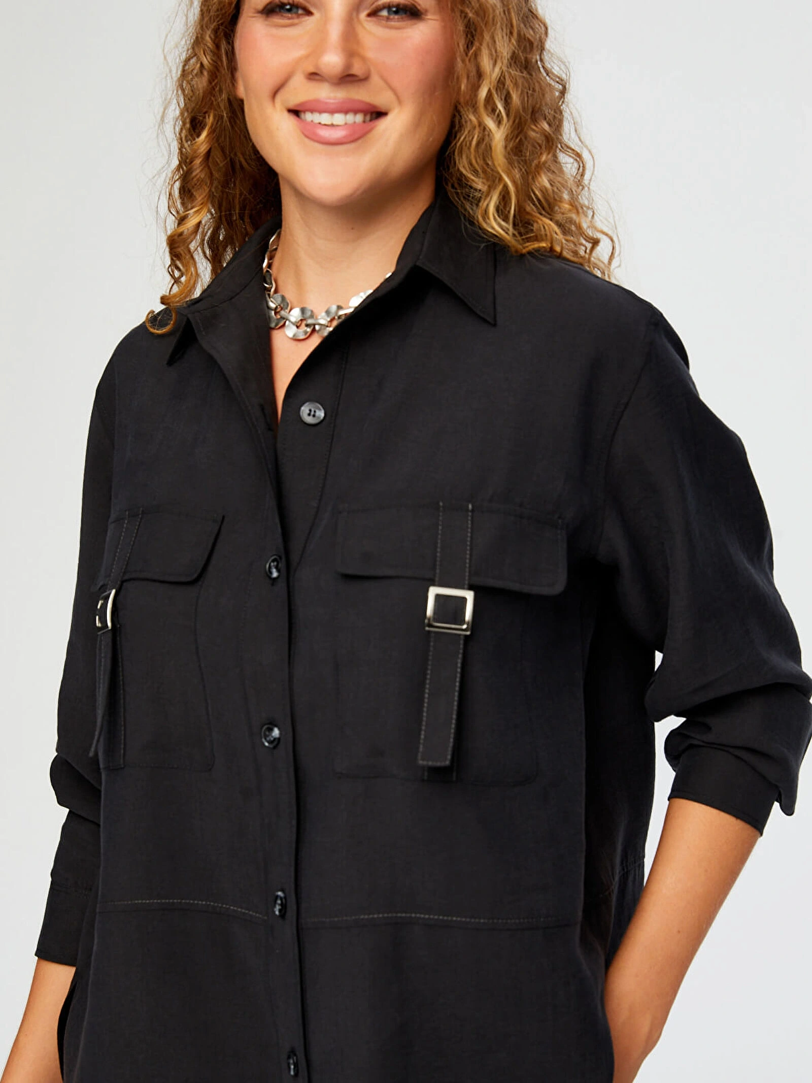 Bu tunik, modern tasarımı ve rahat kullanımıyla öne çıkıyor. Cepleri ve toka detayı, şıklığı fonksiyonellikle buluşturur. Yüksek oranda tensel (%89) ve polyester (%11) içeriği sayesinde yumuşak dokulu ve esnek bir kullanım sağlar.