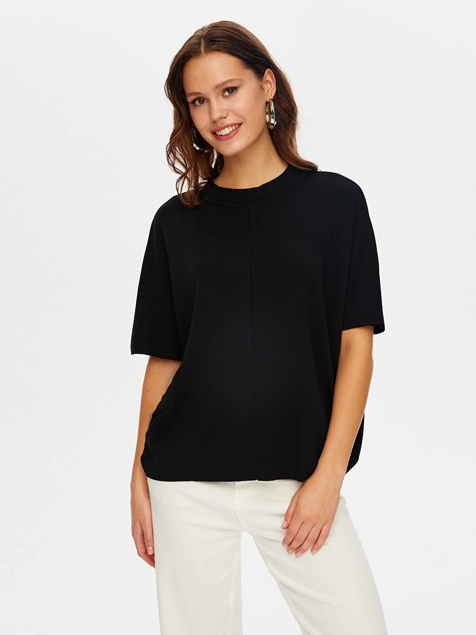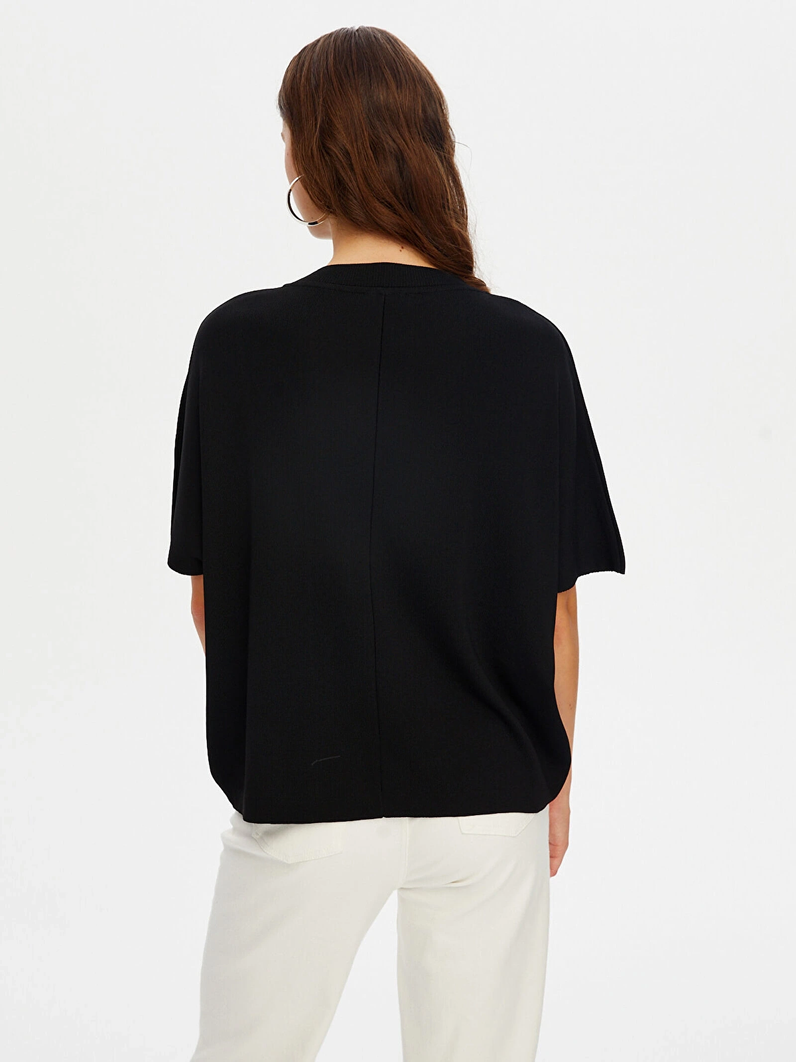 %65 rayon ve %35 naylon kumaş içeriği, yumuşak ve hafif dokusuyla gün boyu rahatlık sunarken triko yapısı sayesinde vücuda uyum sağlayarak şık bir siluet oluşturur. Siyah rengin klasik ve güçlü görünümü ile her stile kolayca uyum sağlar.