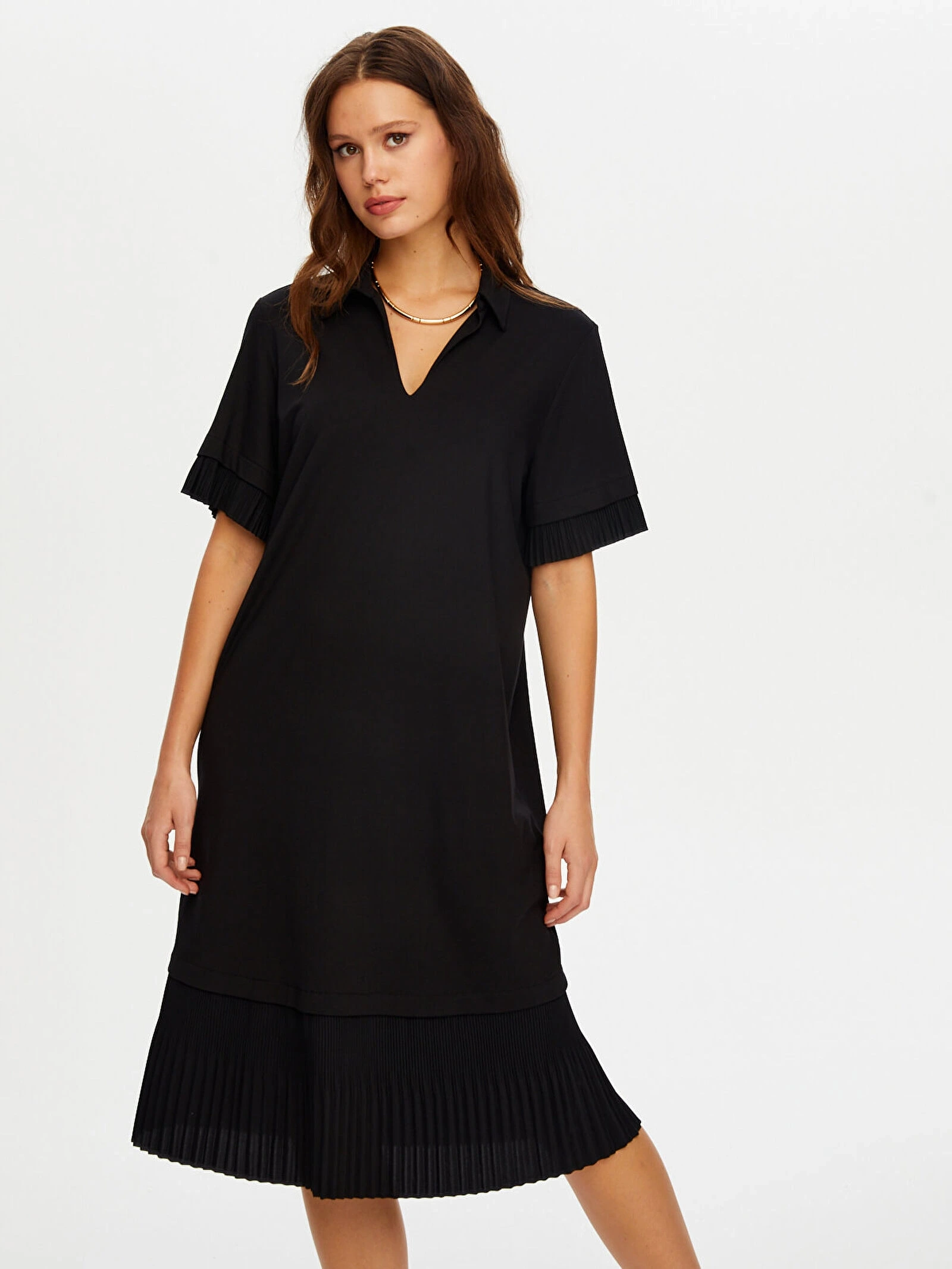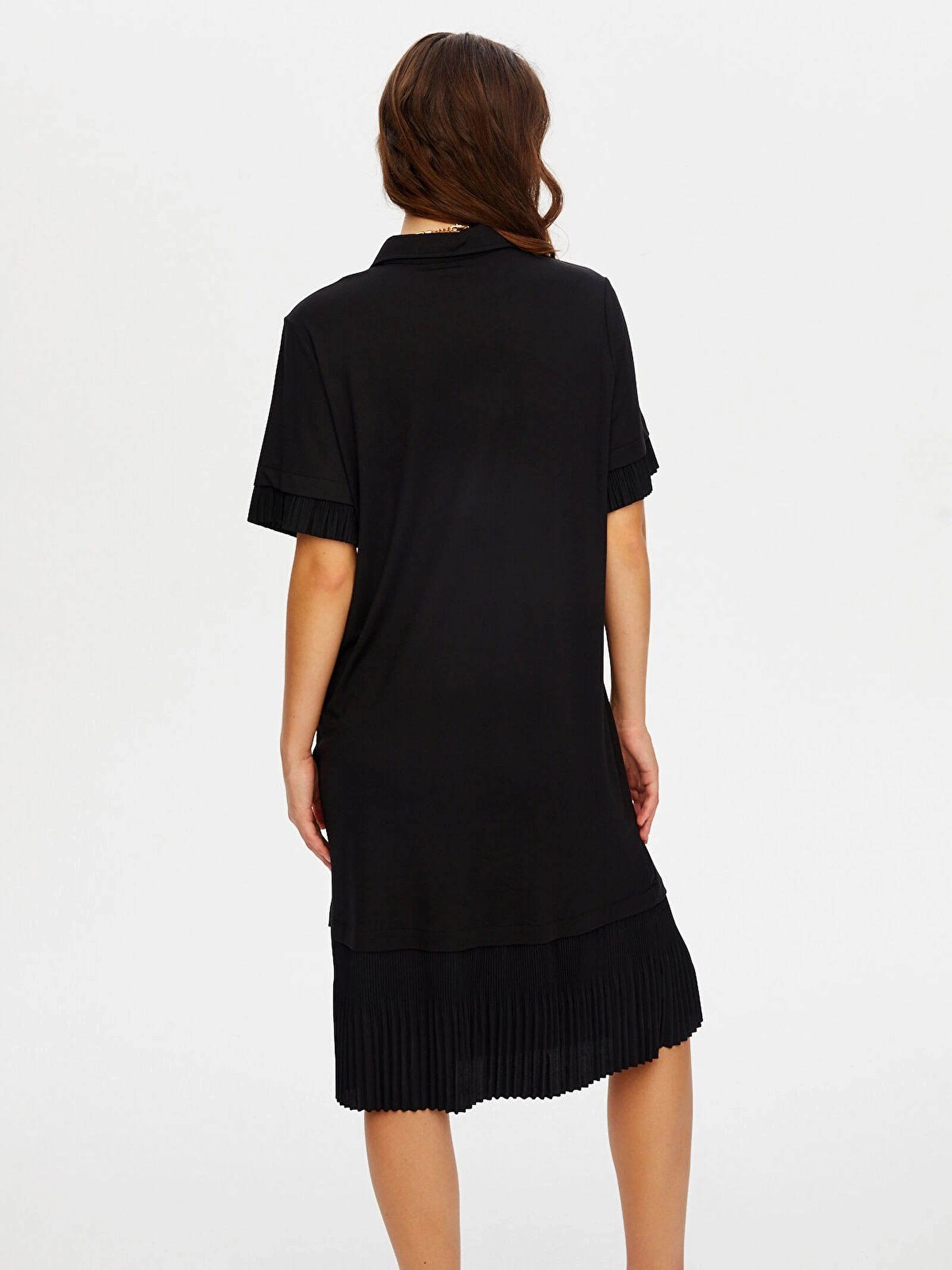 Eteği piliseli kısa kol örme elbise tasarımı