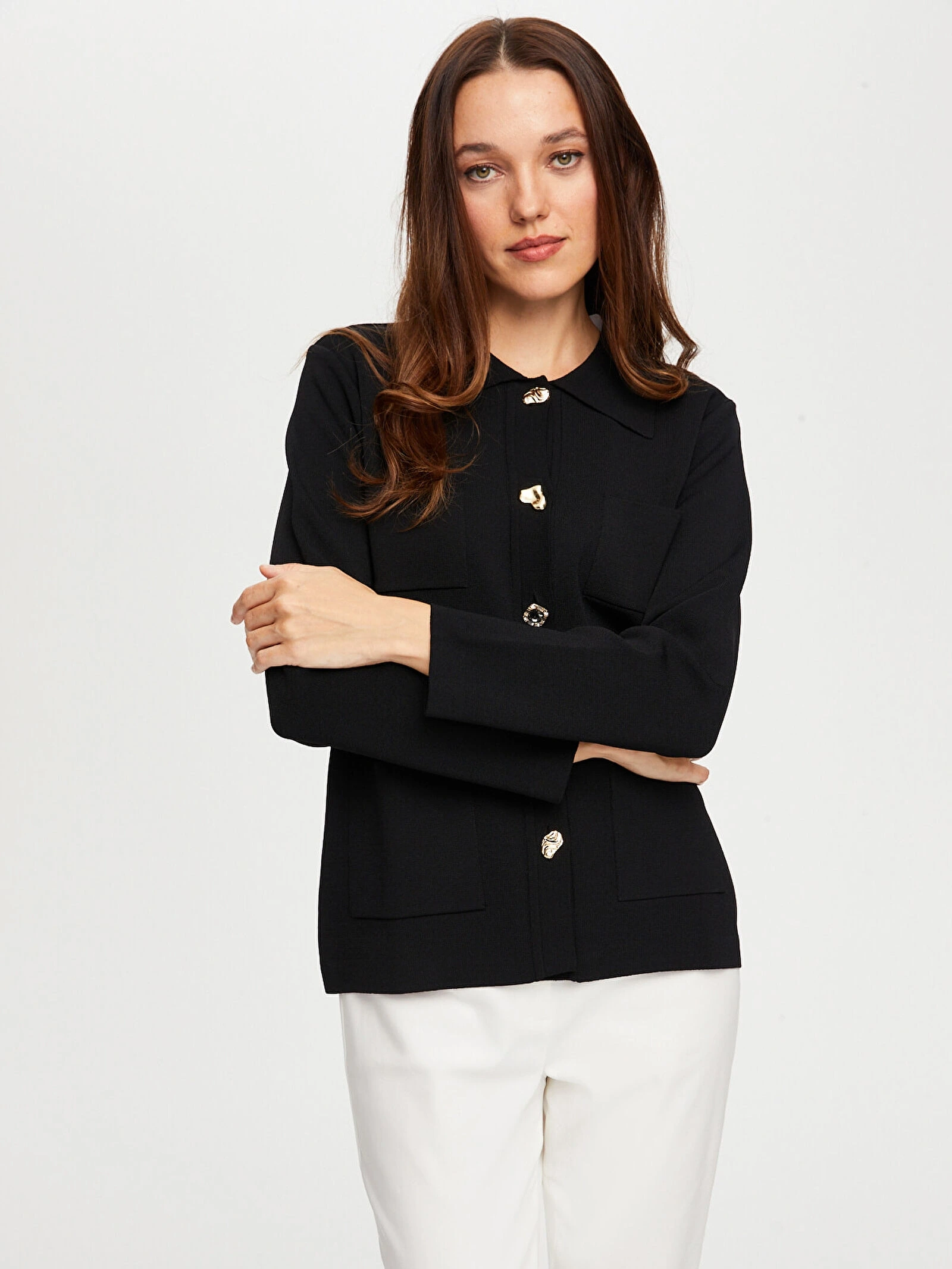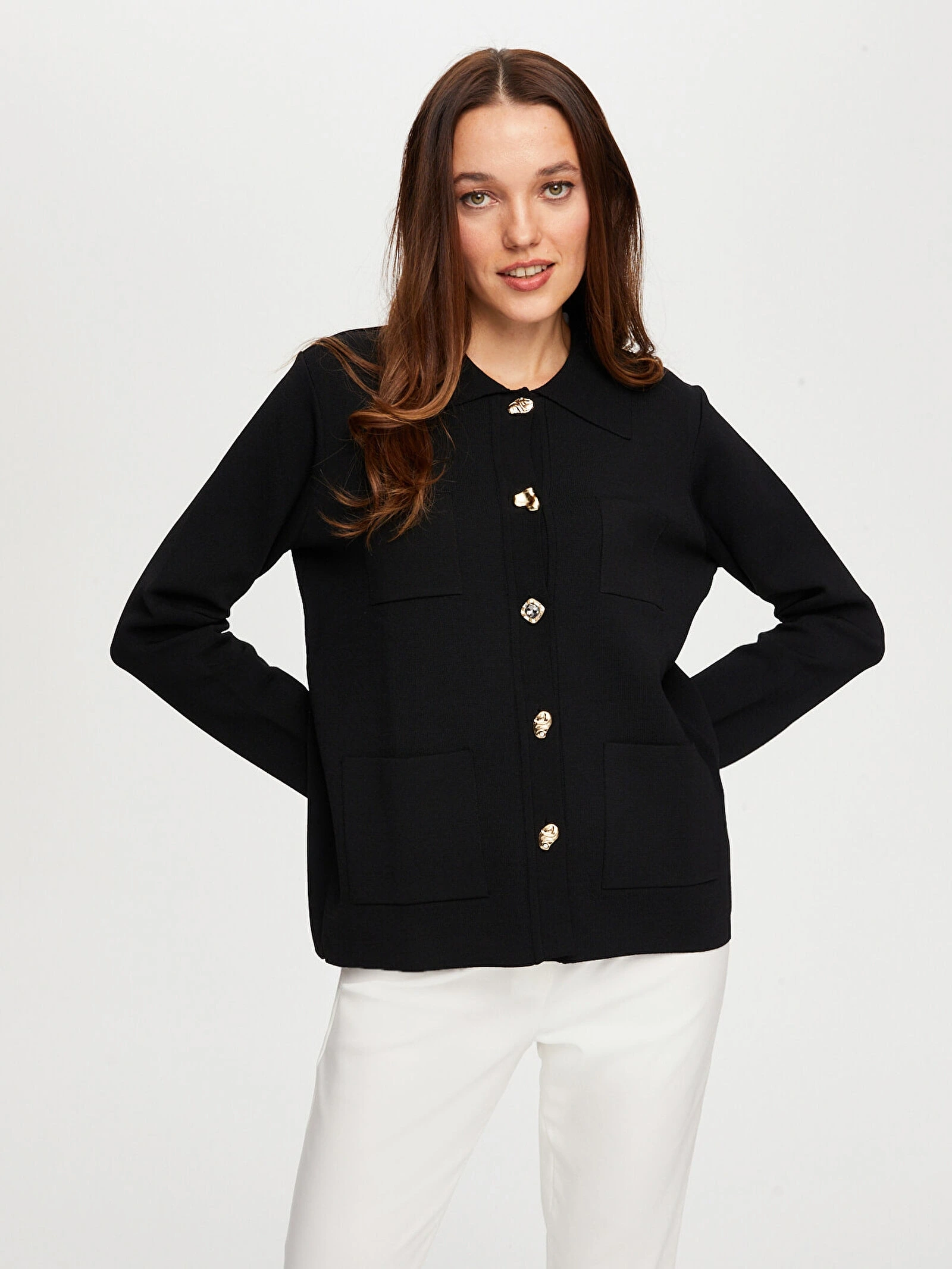 Ürün Adı: Gold Düğme Detaylı Triko Ceket Hırka W26TRH001
