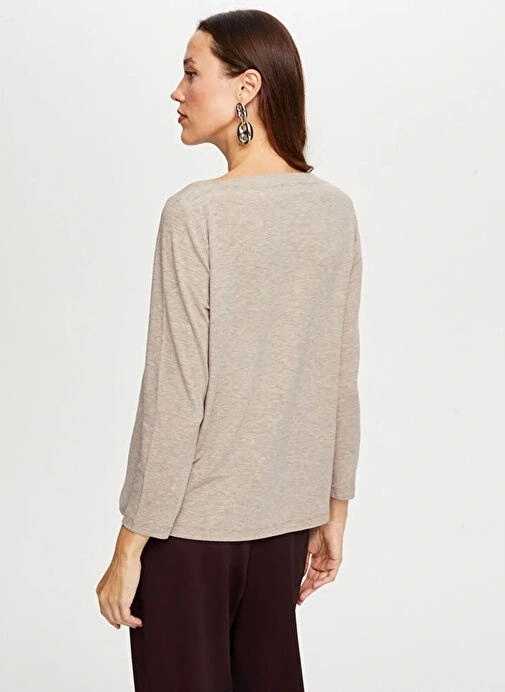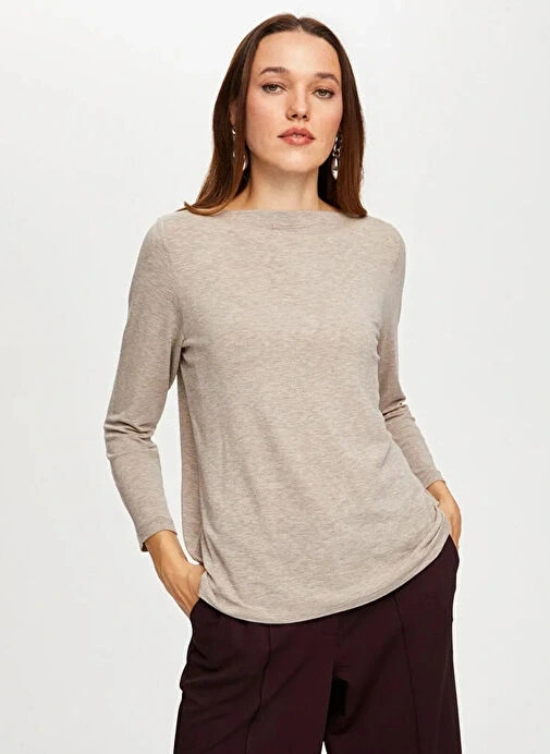 Faik Sönmez Kadın Kayık Yaka Triko Görünümlü Örme Taş Renk Bluz UW26BLZ009, zarif tasarım çizgileri ve modern dokusuyla günlük şıklığa sofistike bir dokunuş kazandırır. Taş renginin sade ve zamansız görünümü, farklı kombinlerle kolayca uyum sağlayarak stilinize dengeli ve şık bir görünüm katar.