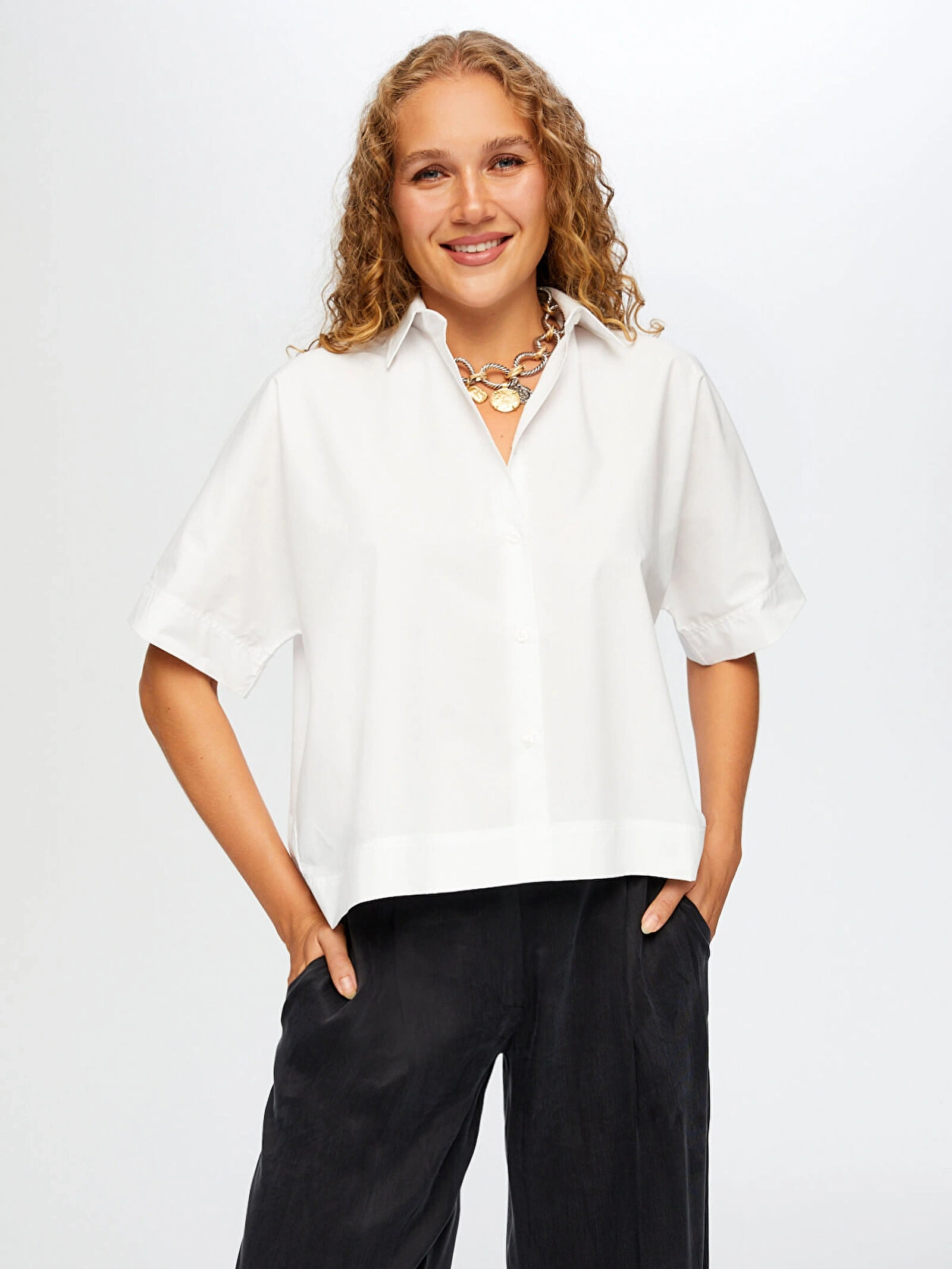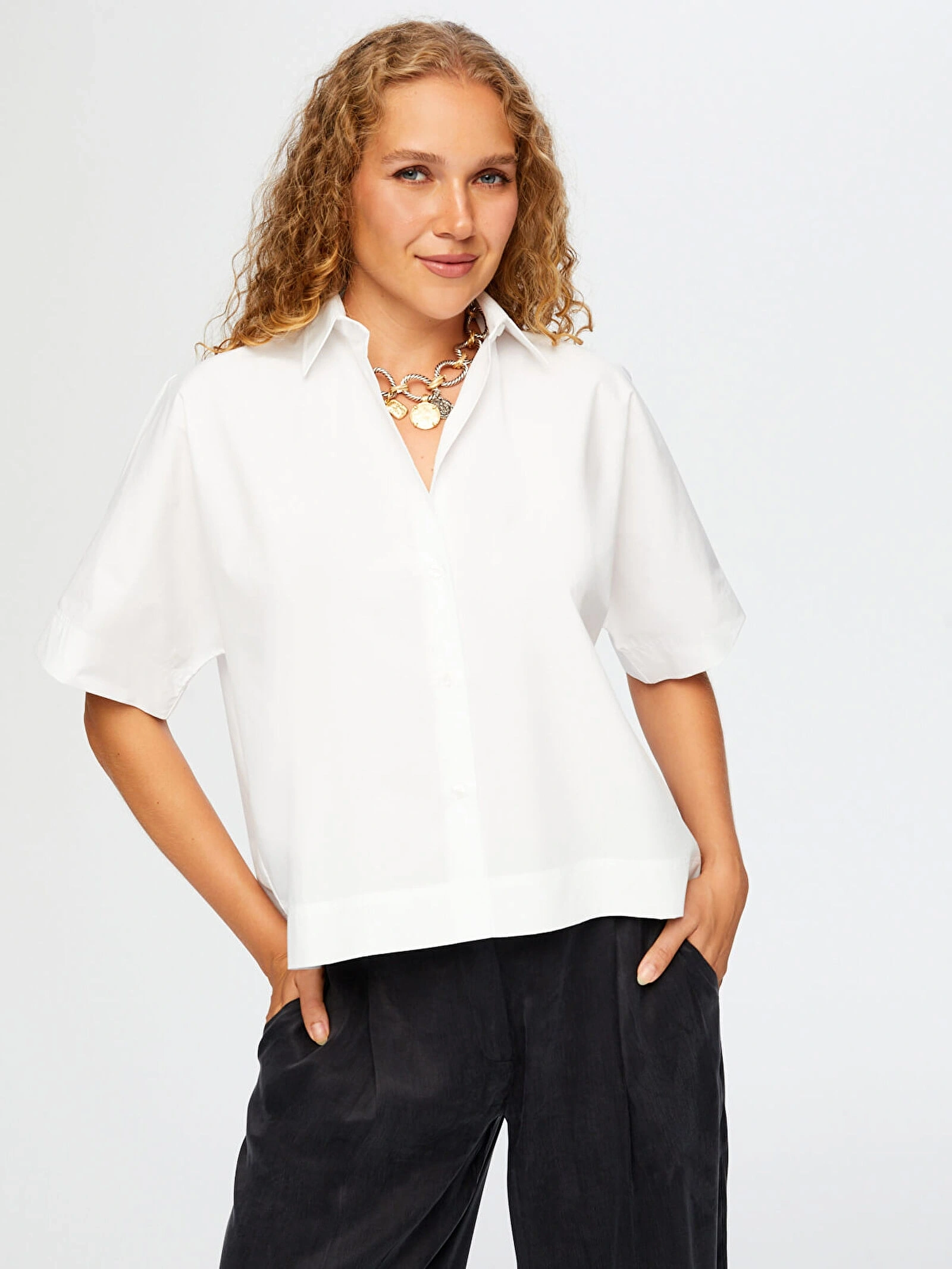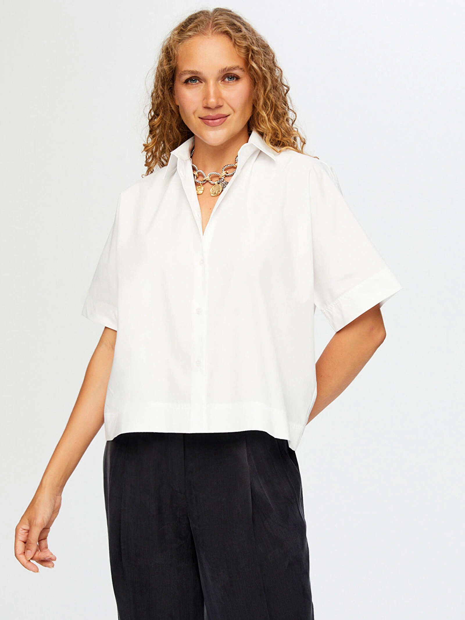 Faik Sönmez Kadın Kısa Kol Rahat Form Poplin Gömlek W26GML003