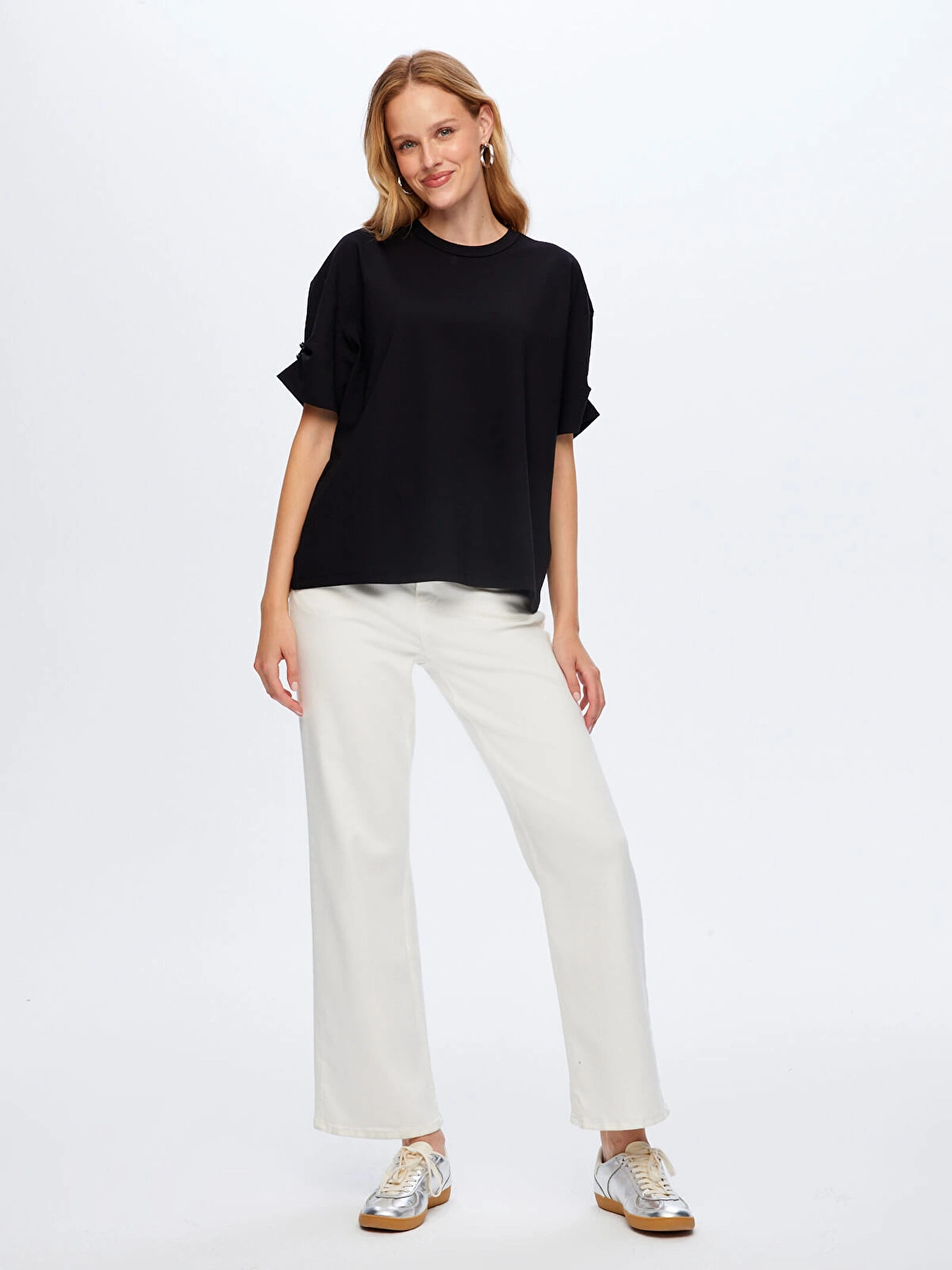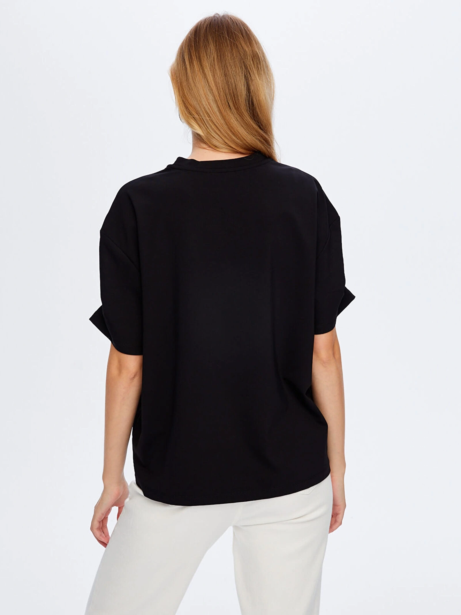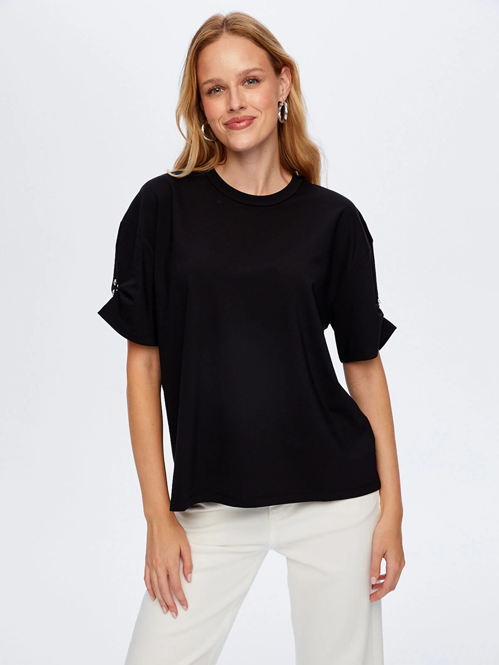 Kolları taş detaylı yuvarlak yaka t-shirt tasarımı