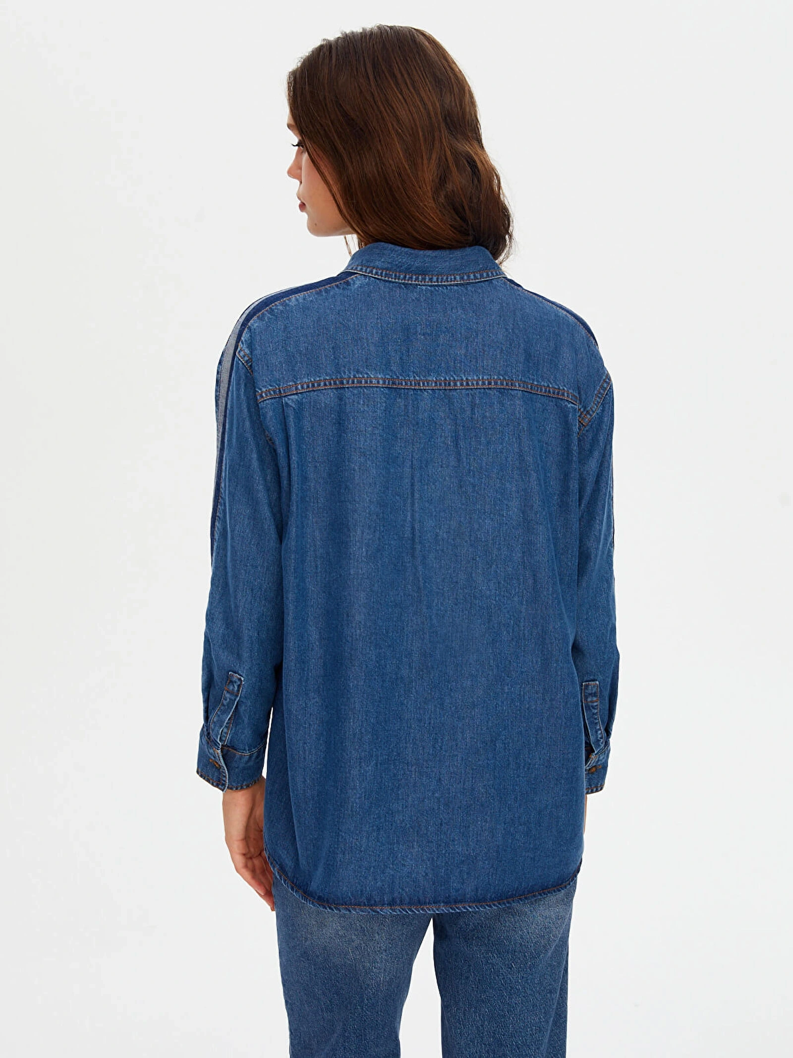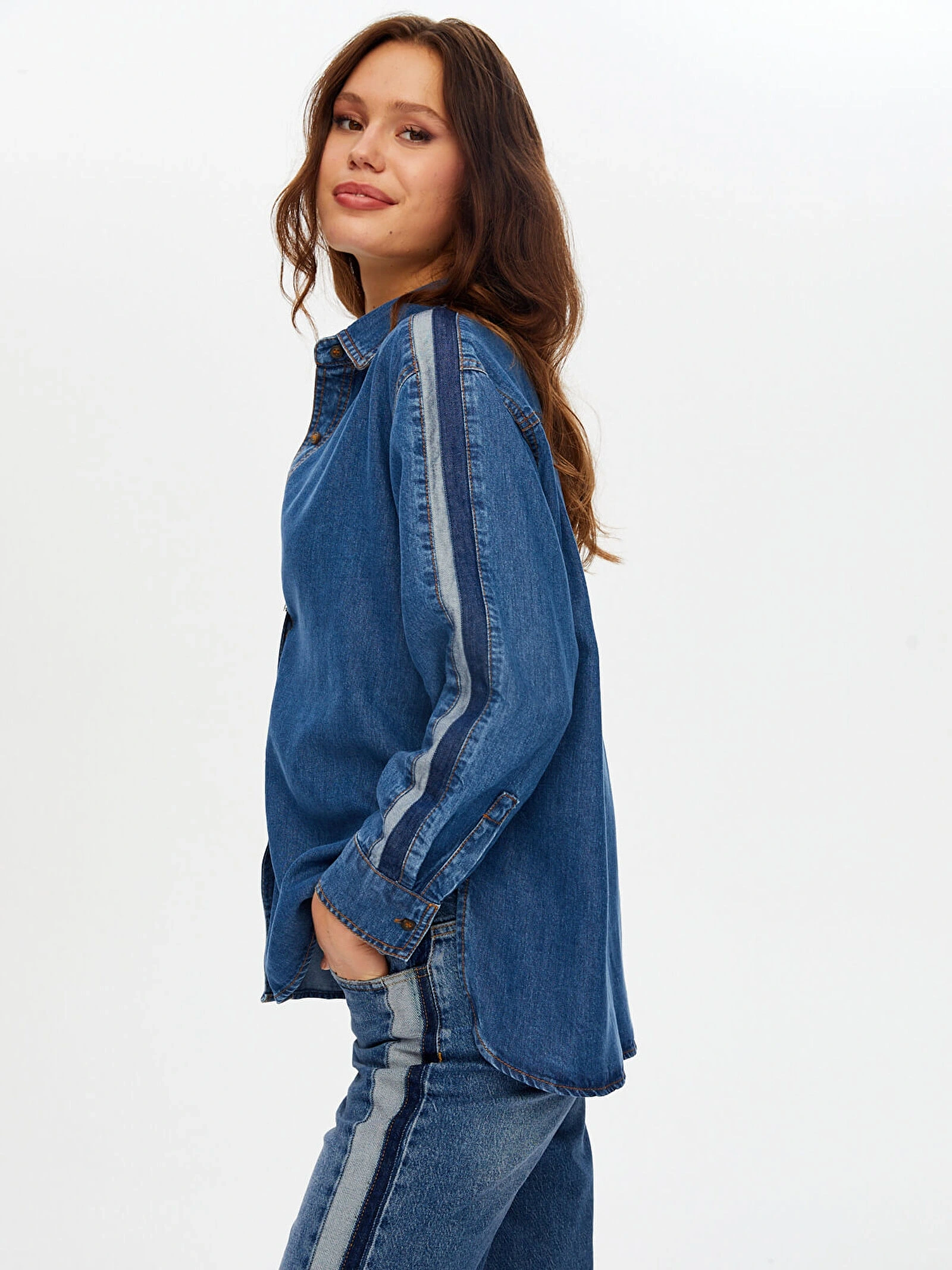 Faik Sönmez Kadın Kontrast Bant Detaylı Tenselli İndigo Jean Gömlek W26JGM001