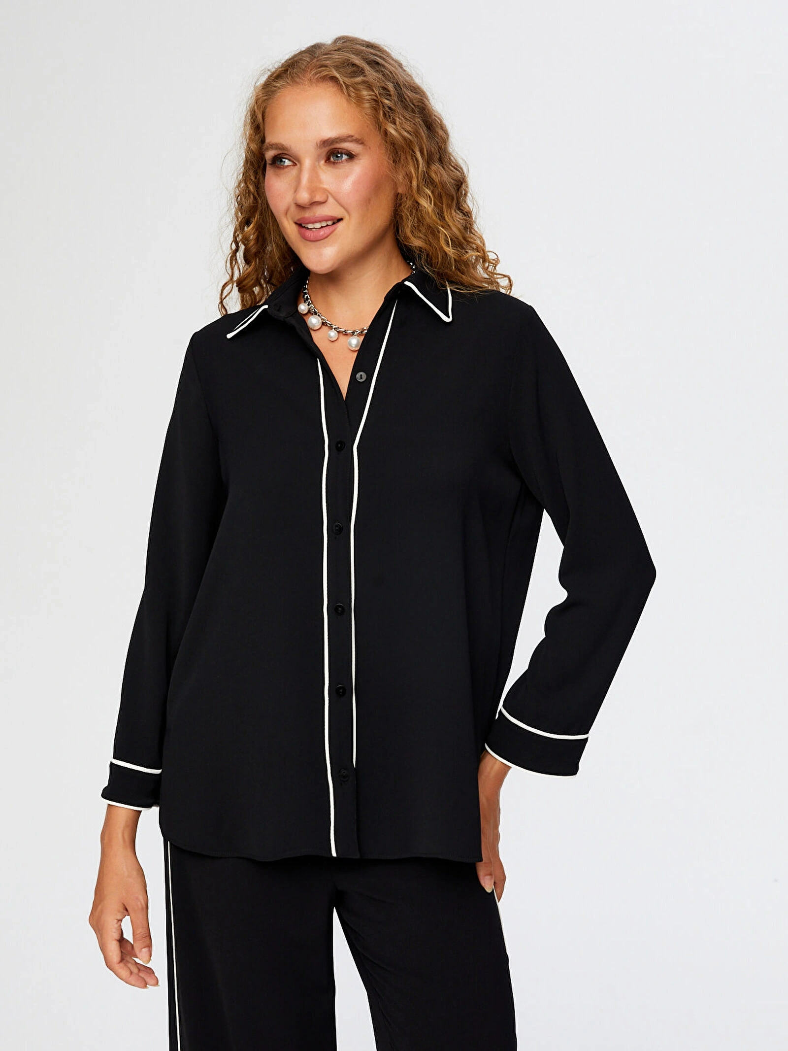 • Ürün Adı: Kontrast Biye Detaylı Uzun Kol Tunik W26TNK009