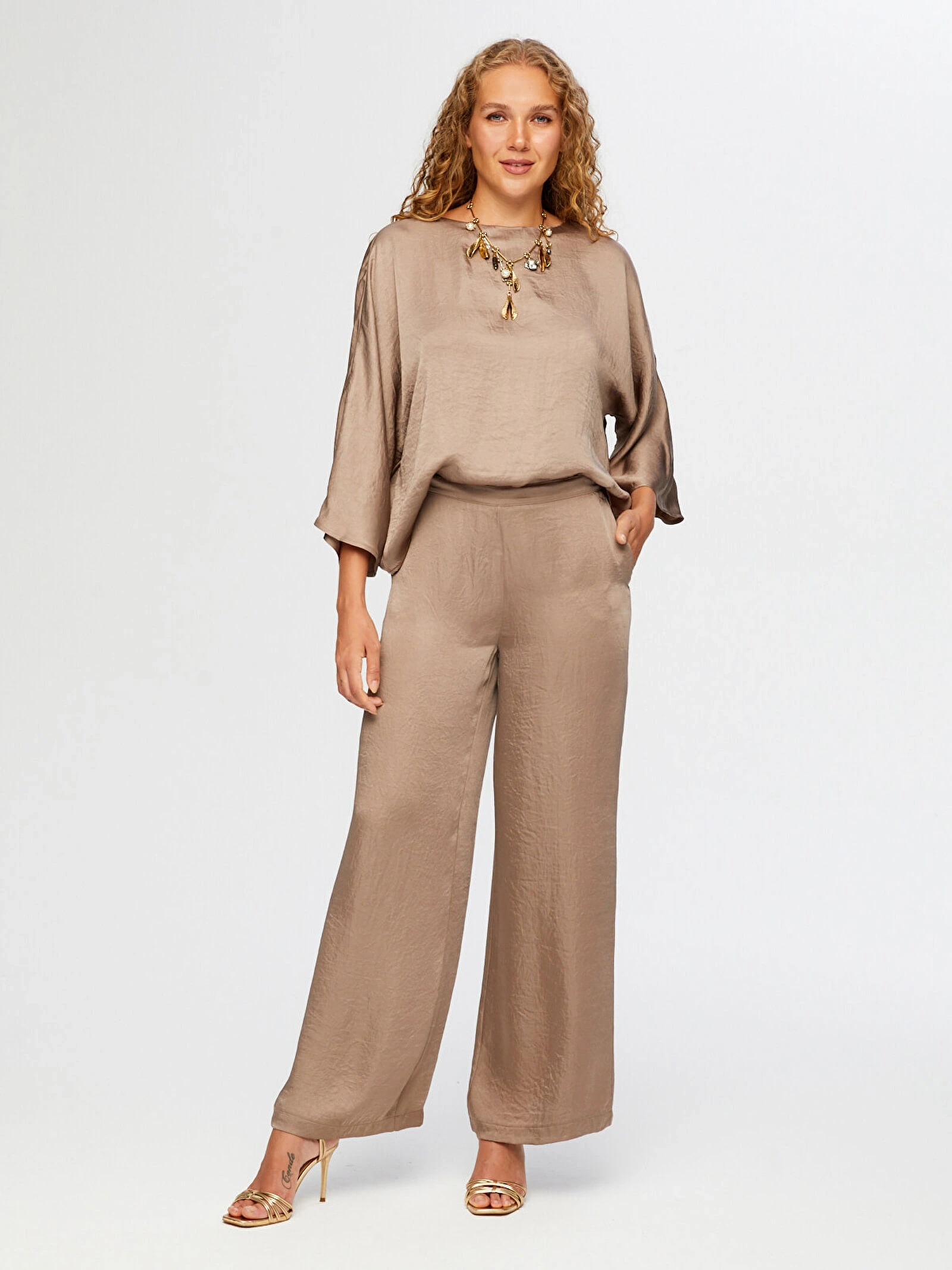 %100 Asetat kumaşı sayesinde pantolon hafif, akışkan ve lüks bir his verir.