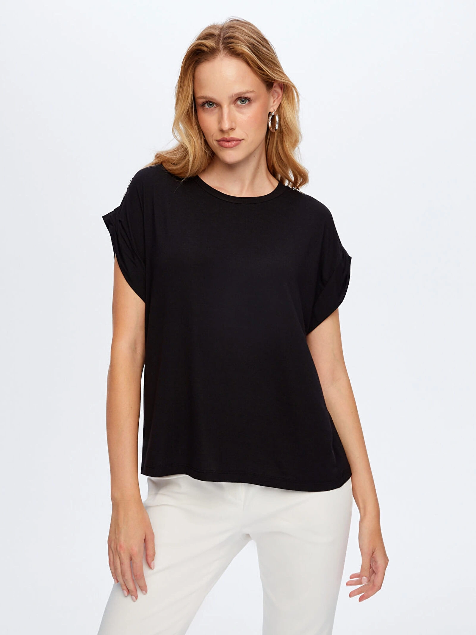 Ürün Adı: Omuzu Zincir Detaylı Modelli Tshirt W26TSH091