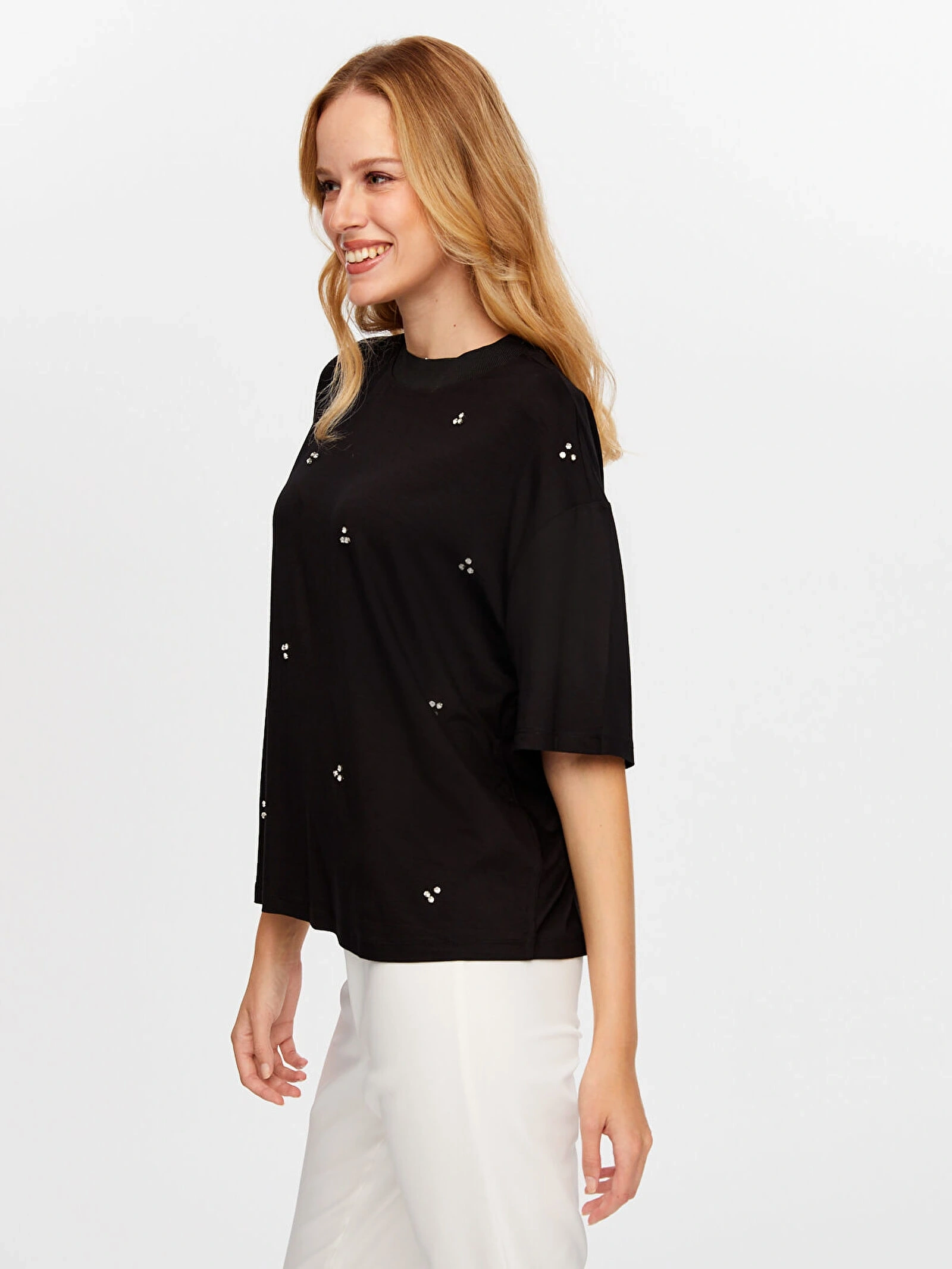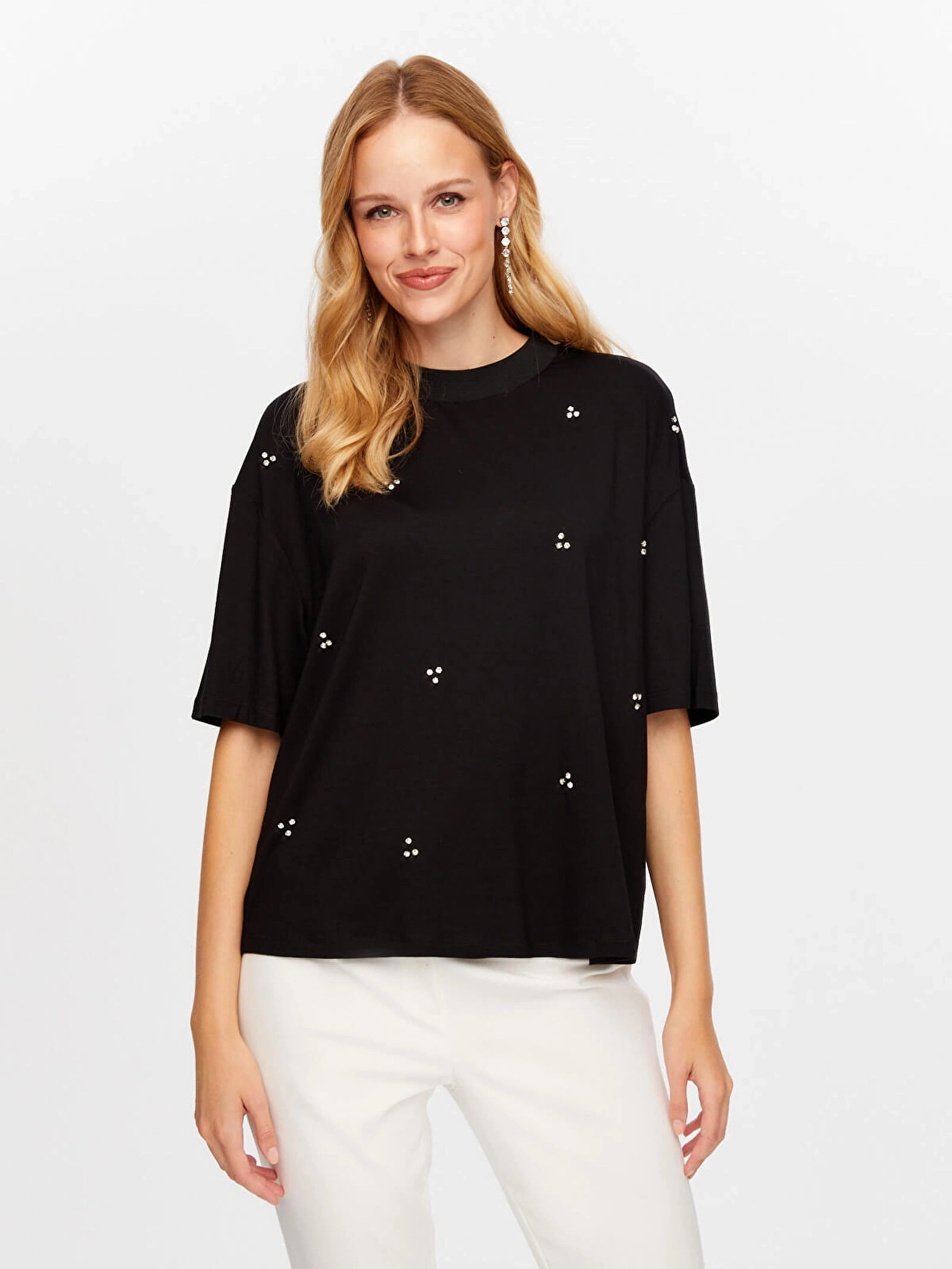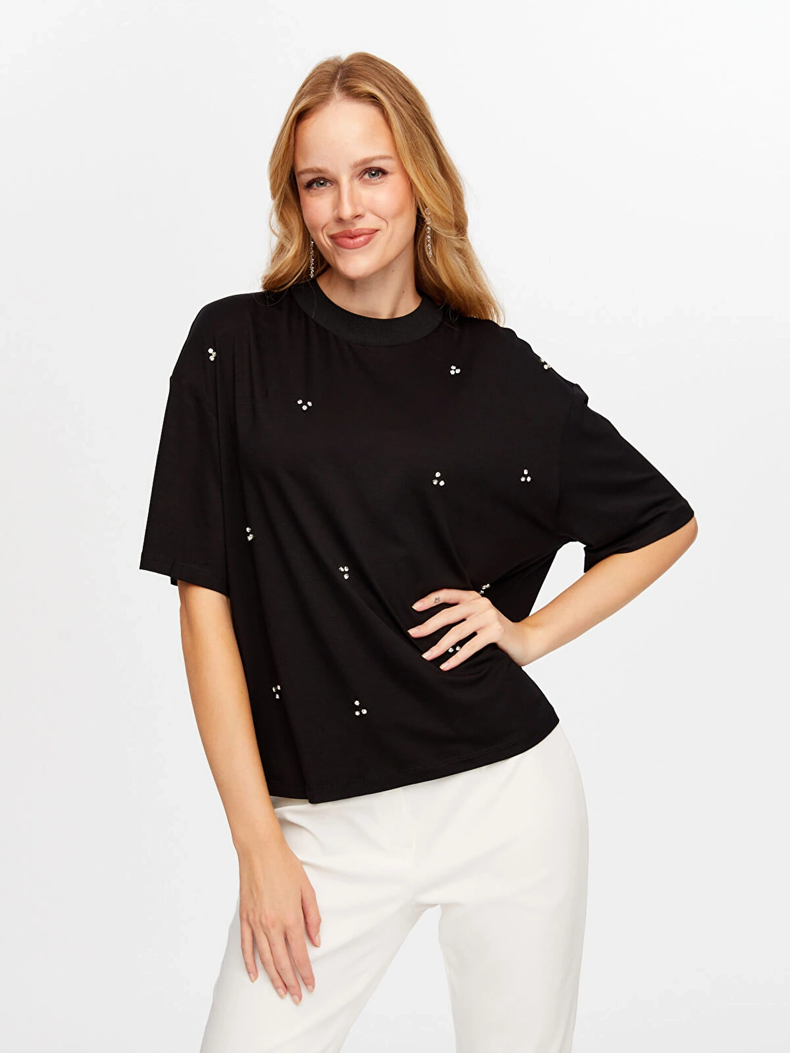 Ürün Adı: Önü Taş İşli Yuvarlak Yaka Kısa Kol T-Shırt W26TSH066