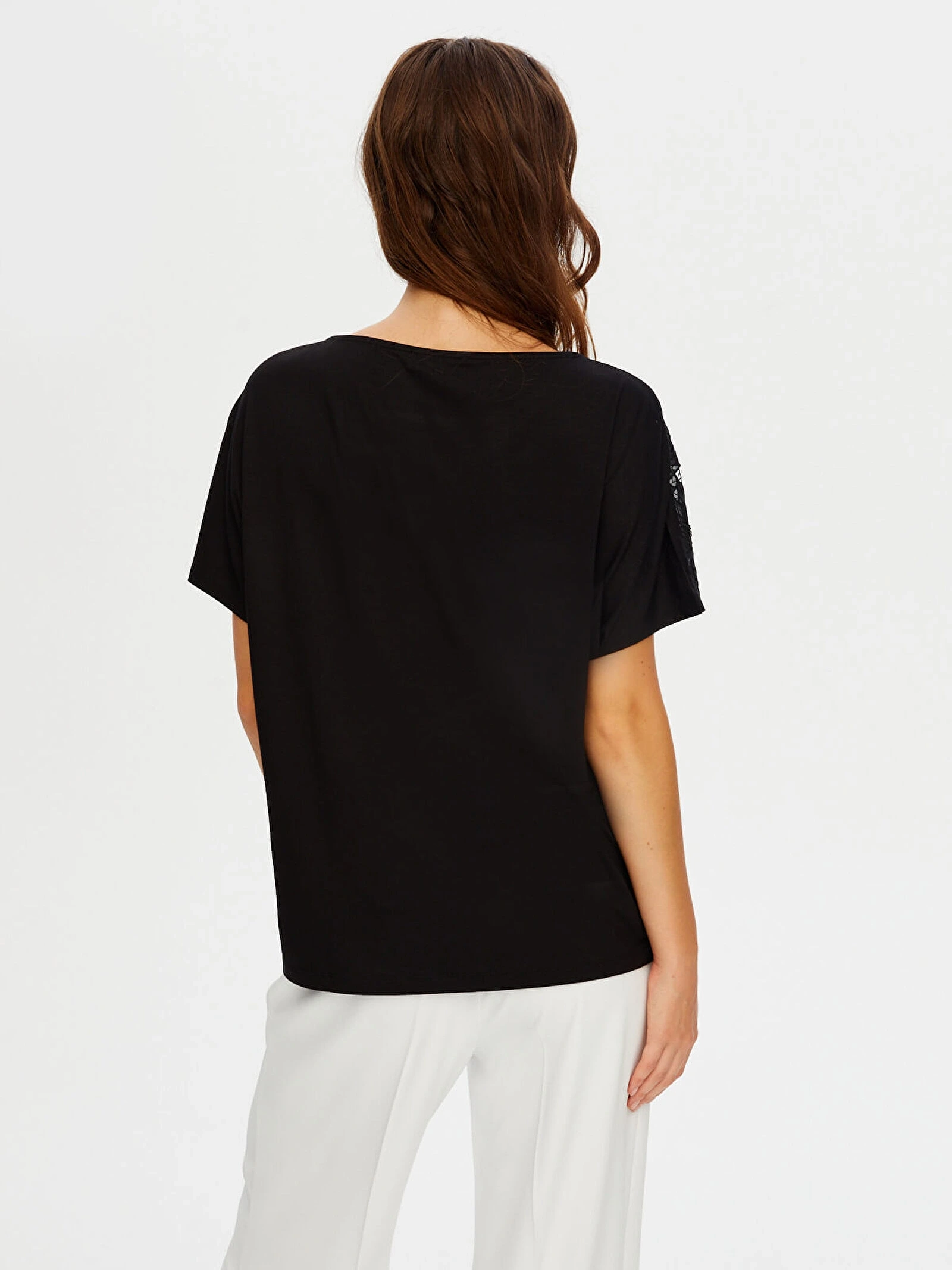 Ürünün formunu ve payetli dantel detaylarını koruyabilmek için bakım talimatlarına uygun şekilde kullanılması önerilir. Maksimum 30°C sıcaklıkta tersten yıkanmalı, ağartıcı kullanılmamalı, kurutucuda kurutulmamalı ve tersten ütülenmelidir.