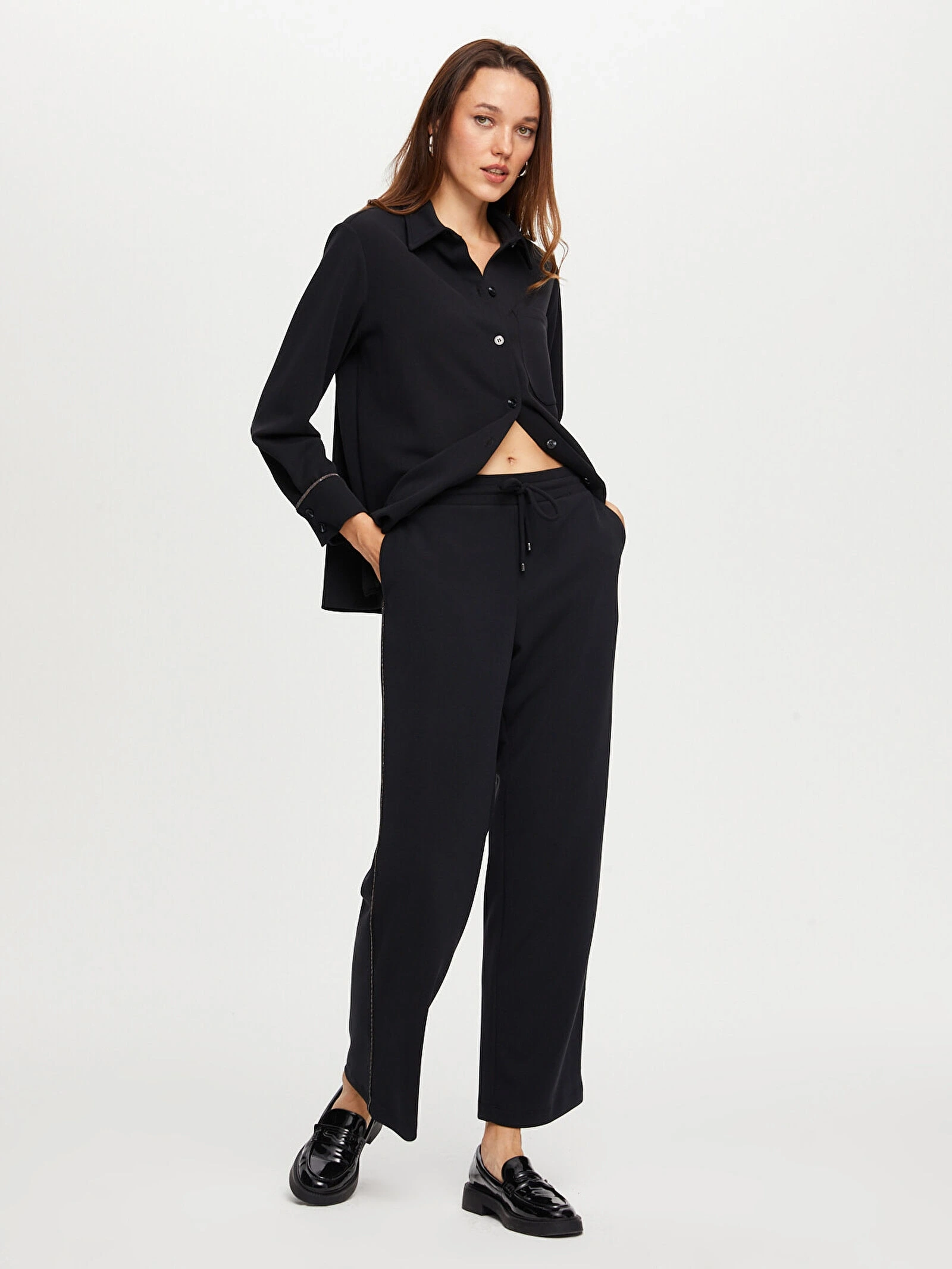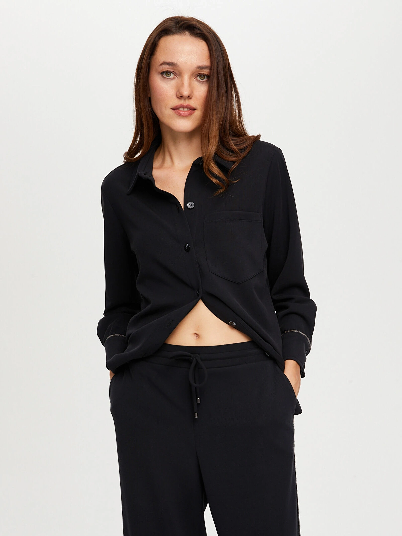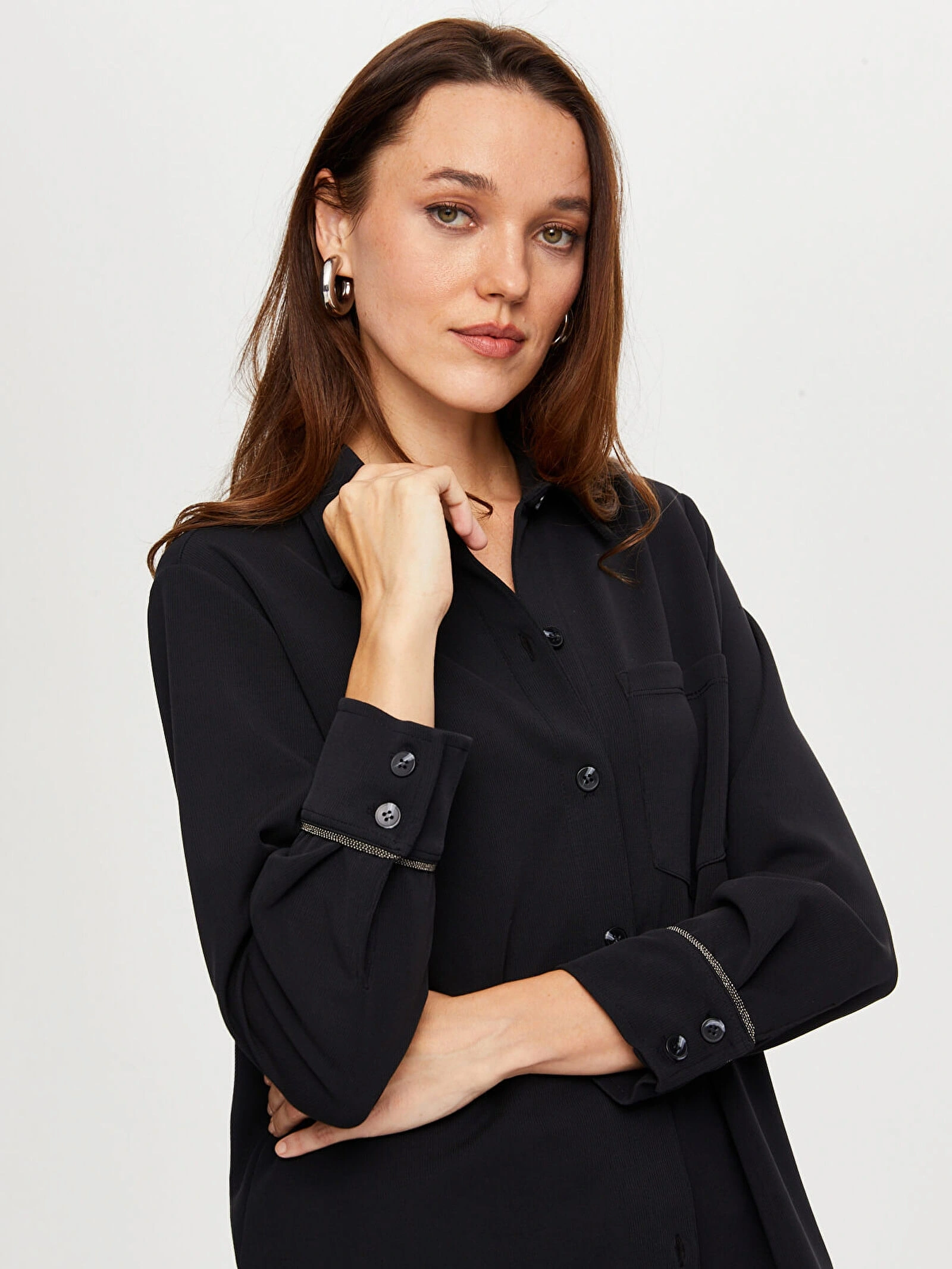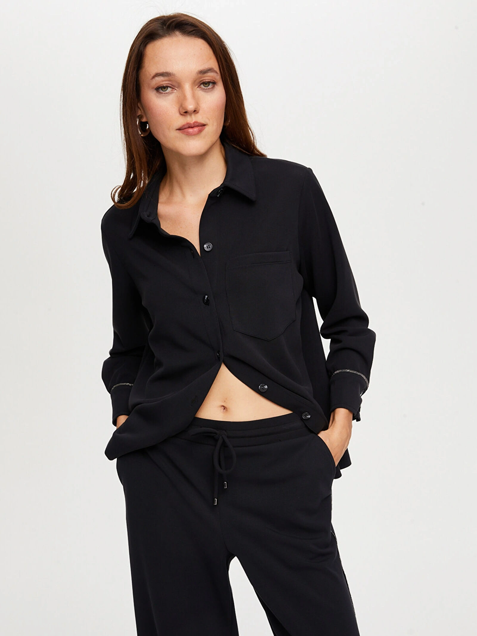 %60 polyester, %32 modal ve %8 spandeks kumaş içeriği, yumuşak dokusu ve esnek yapısıyla gün boyu konforlu kullanım sağlar. Siyah rengi ile zamansız bir stil sunan bu tunik, farklı kombinlerle kolayca uyum sağlar.