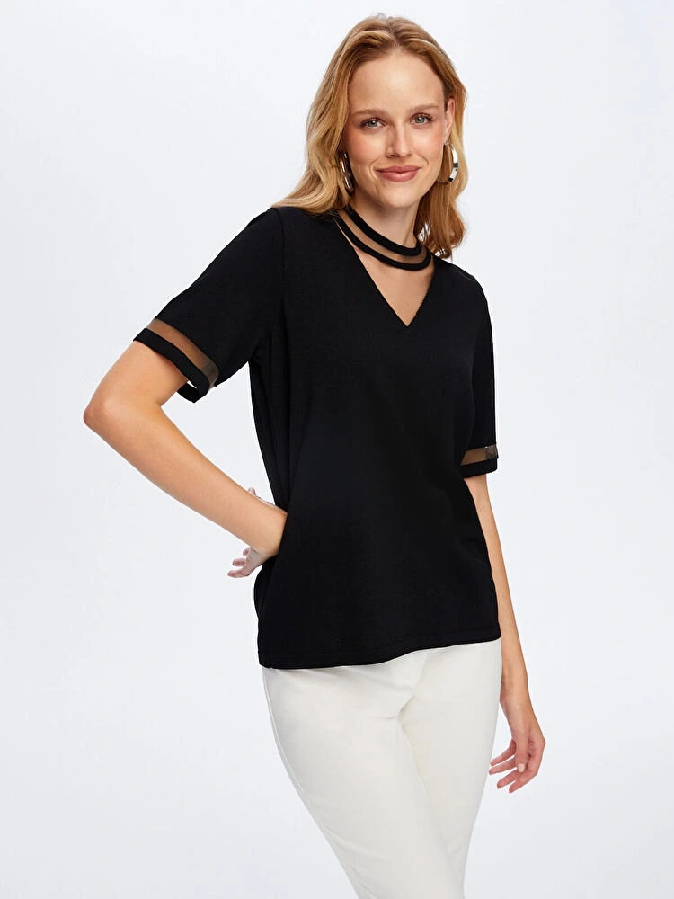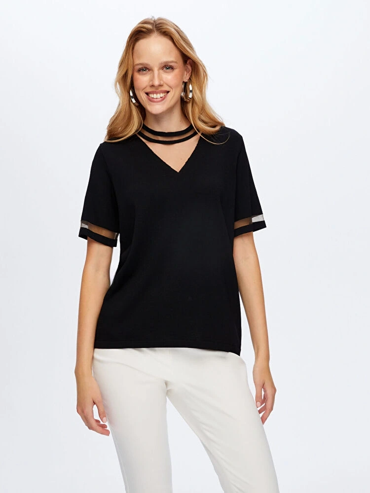 • Ürün Adı: Transparan Detaylı Kısa Kollu Triko Bluz W26TRB008