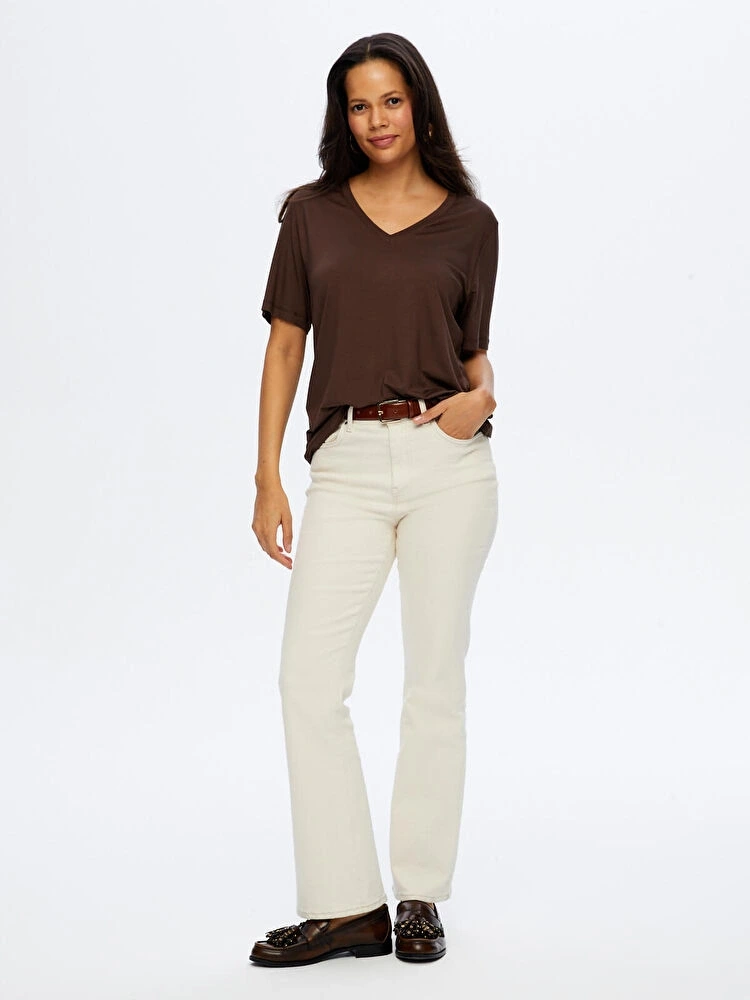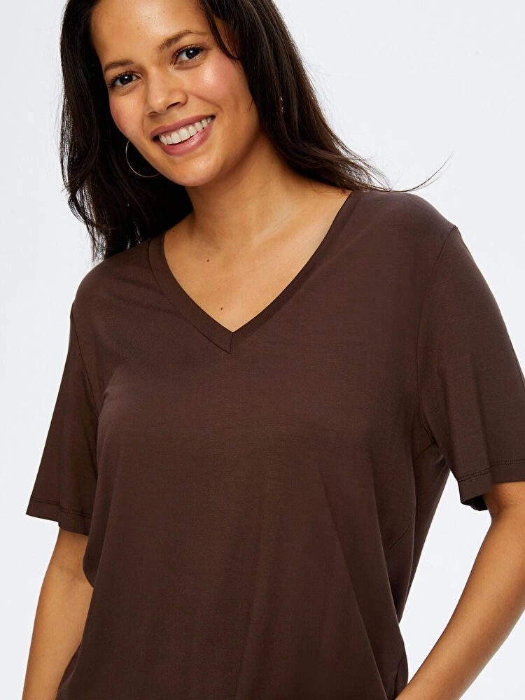 Faik Sönmez Kadın V Yaka Kısa Kol Koyu Kahve T-Shirt W26TSH008