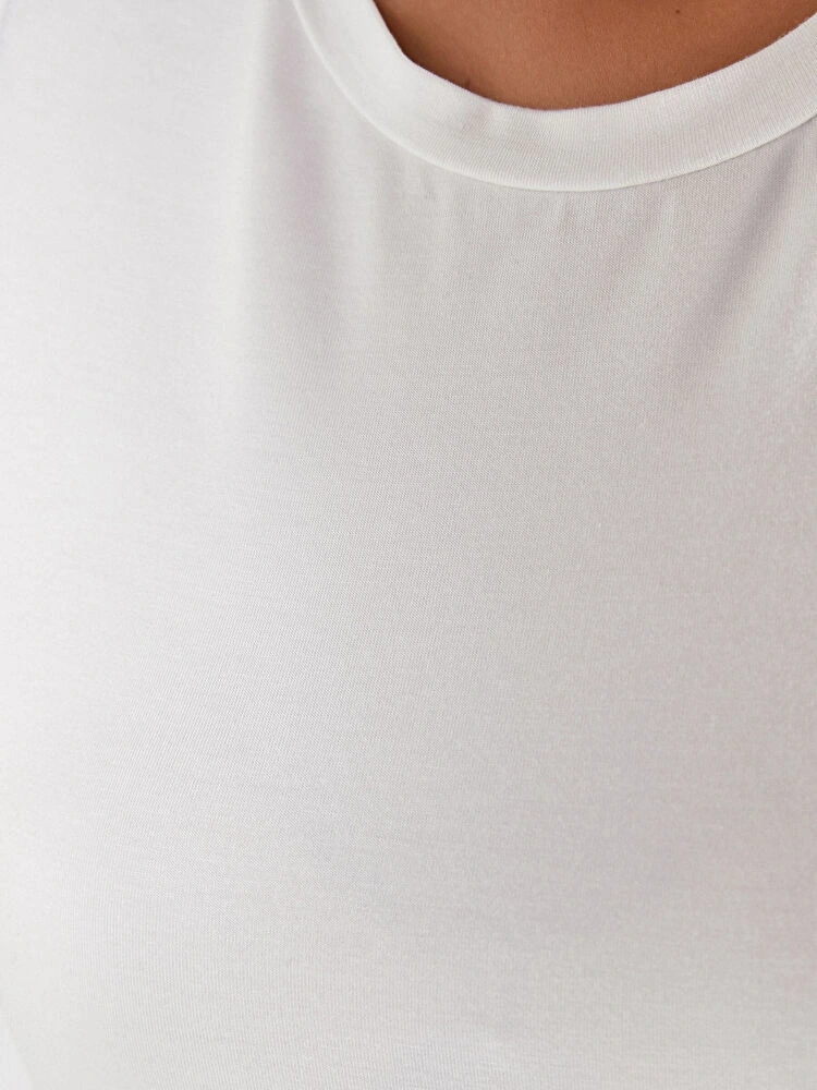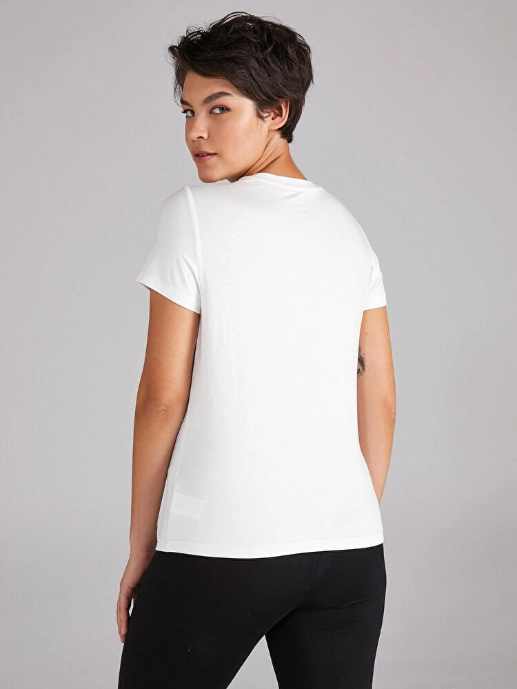%96 viskon ve %4 elastan karışımlı kumaşı sayesinde yumuşak dokulu, esnek ve konforlu bir kullanım sunan bu t-shirt, hafif yapısı ile gün boyu rahatlık sağlar.