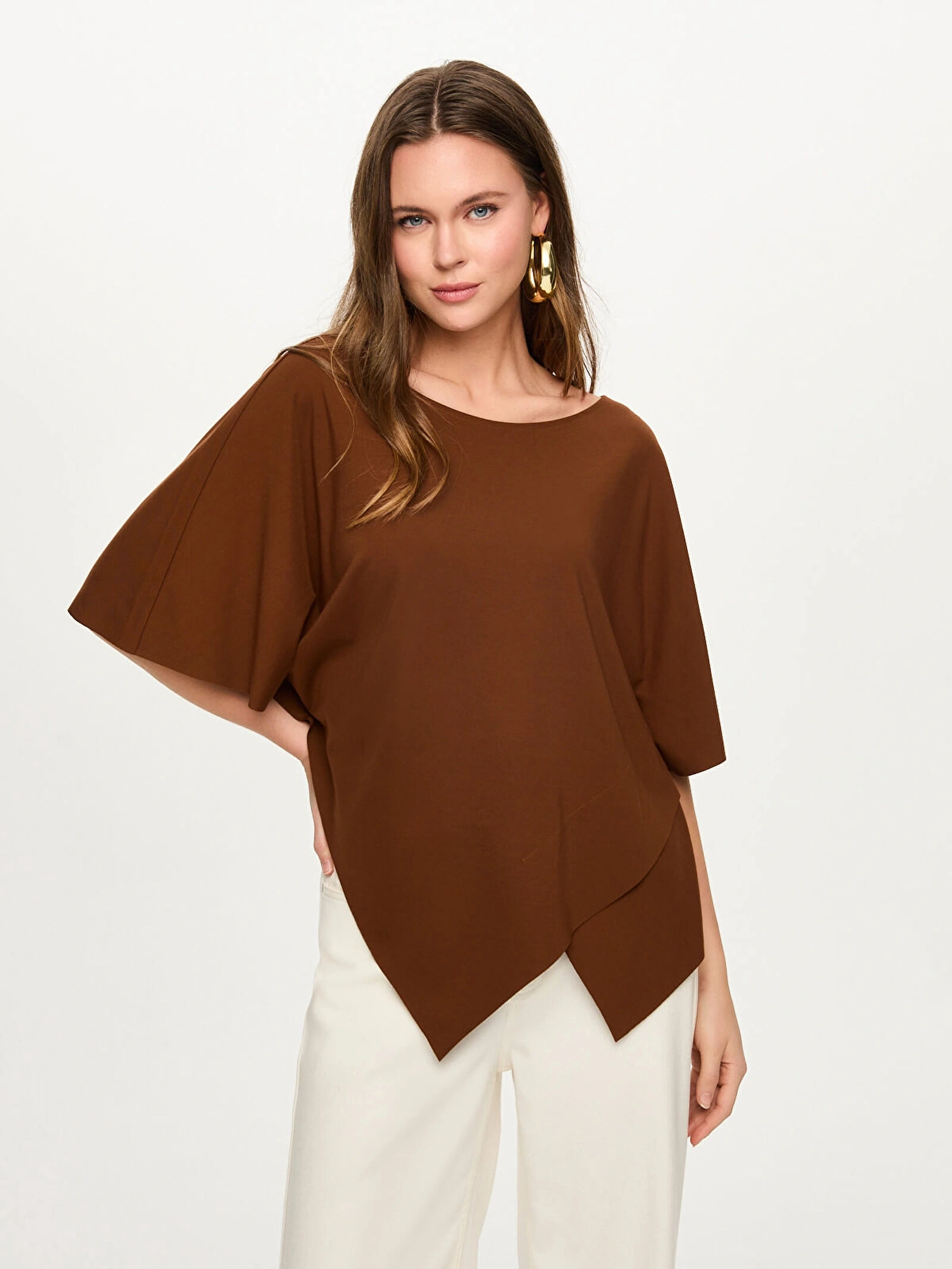 Faik Sönmez Mendil Form Asimetrik Yuvarlak Yaka T-Shirt US26TSH062