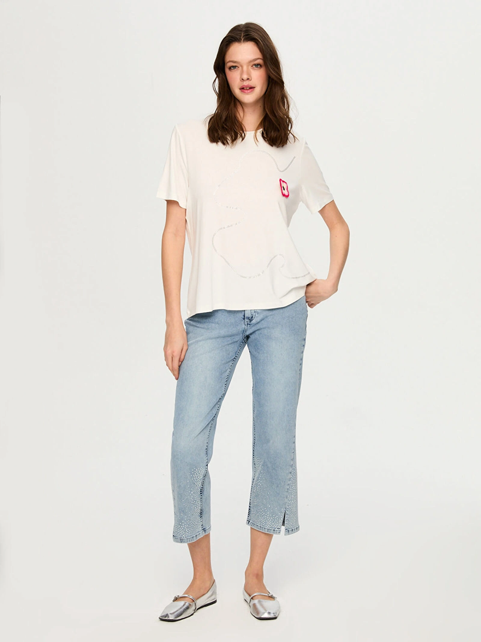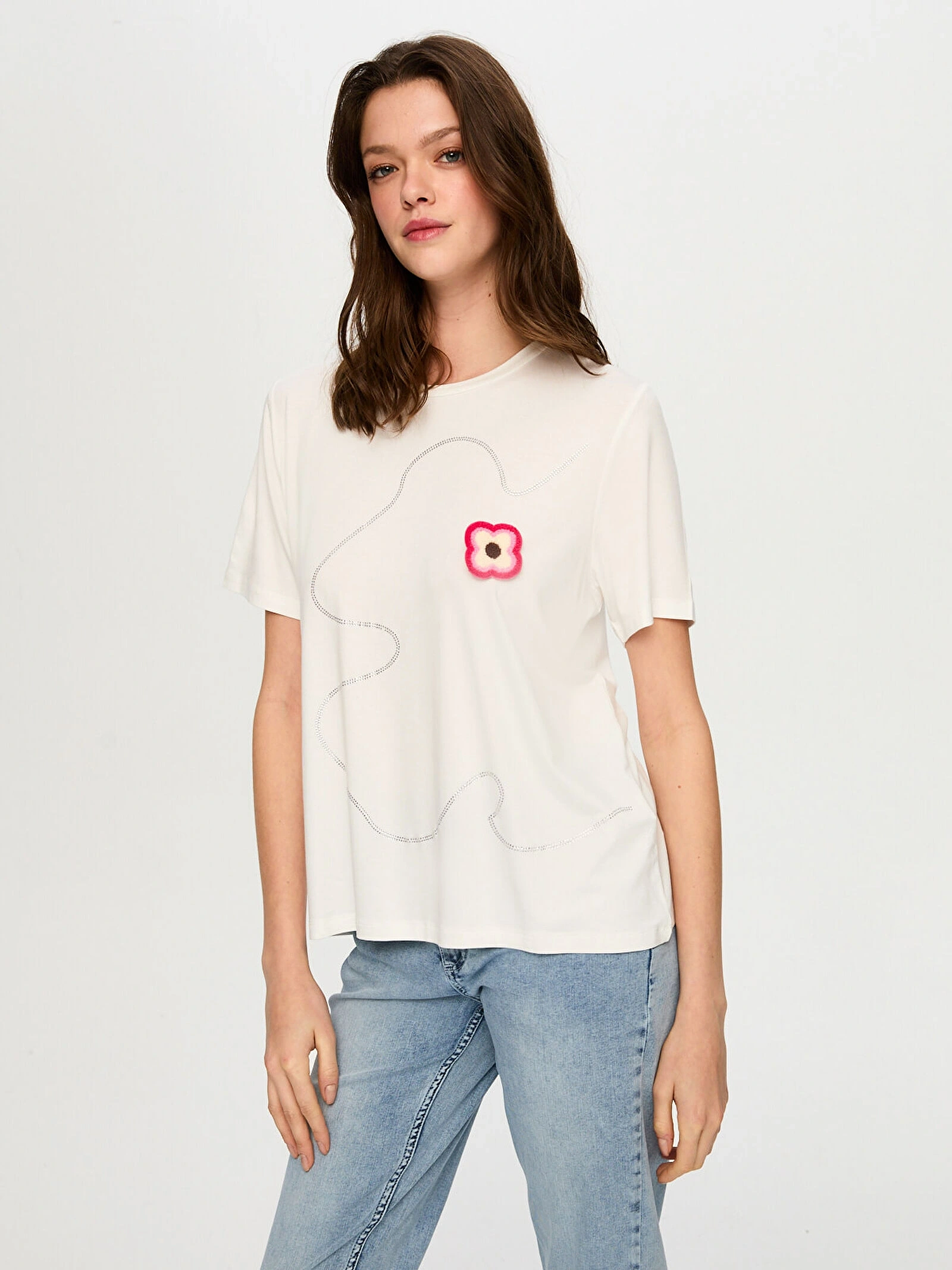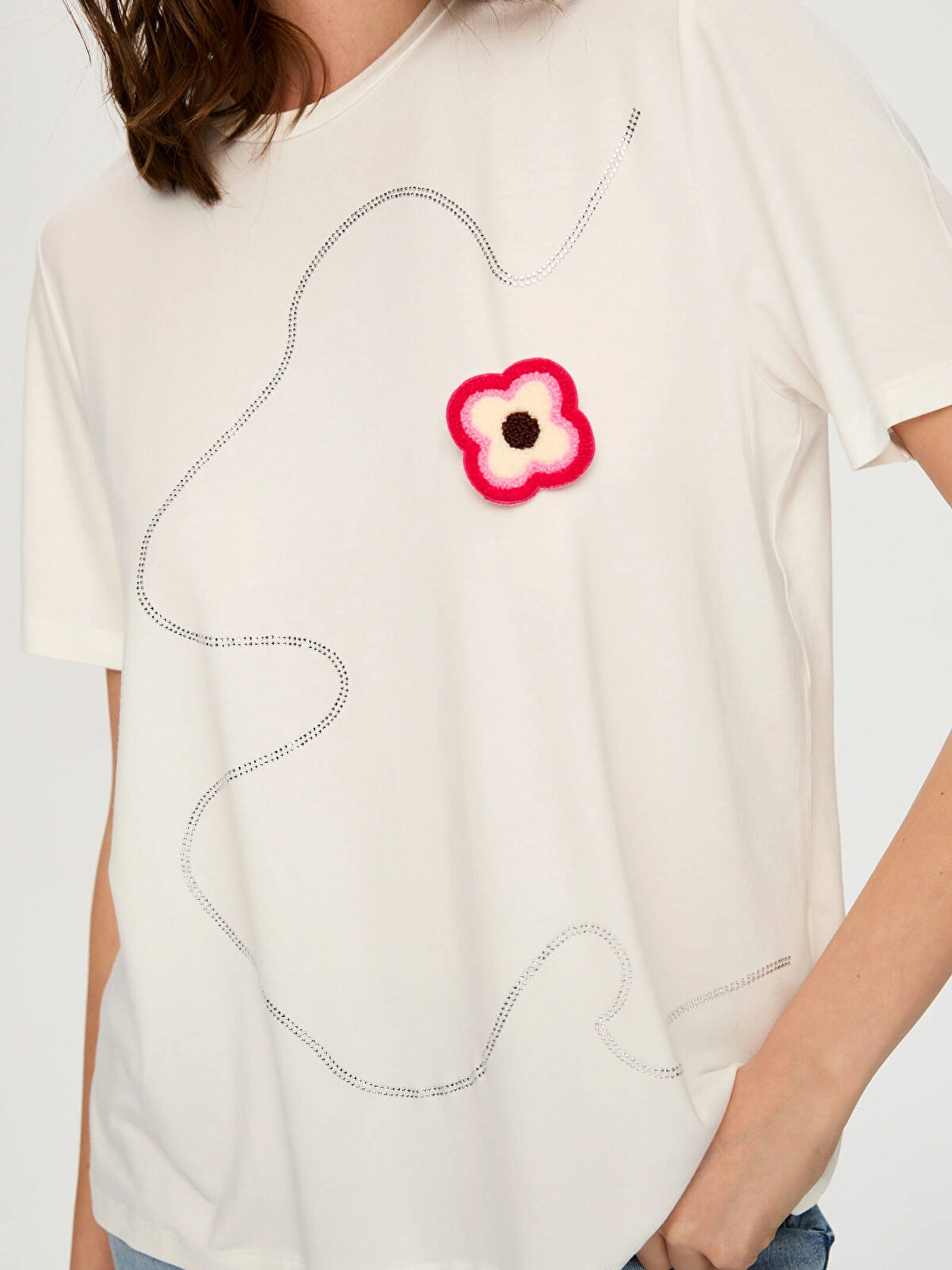 Faik Sönmez Taş Ve Çiçek Patch Detaylı Yuvarlak Yaka T-Shirt US26TSH052