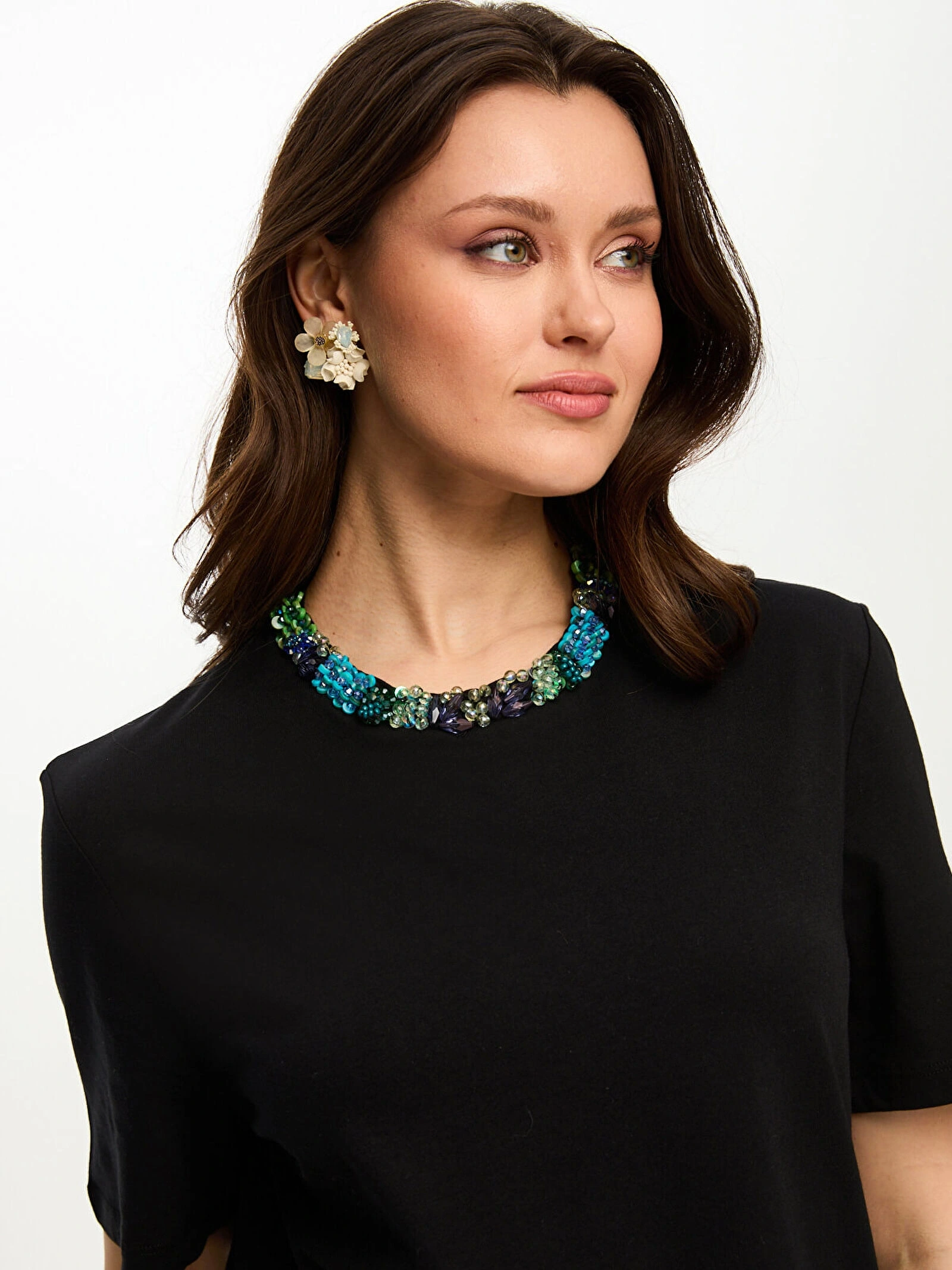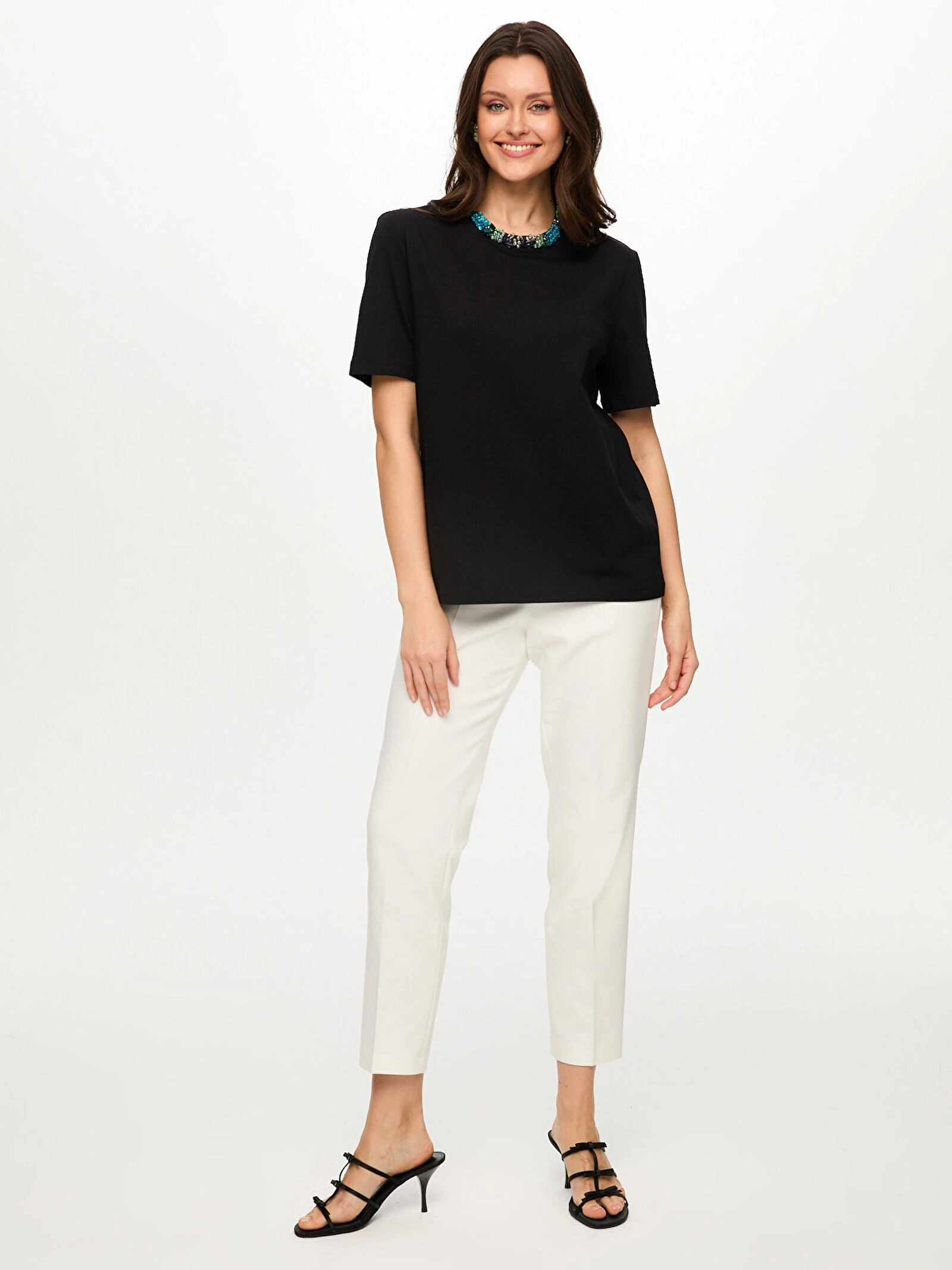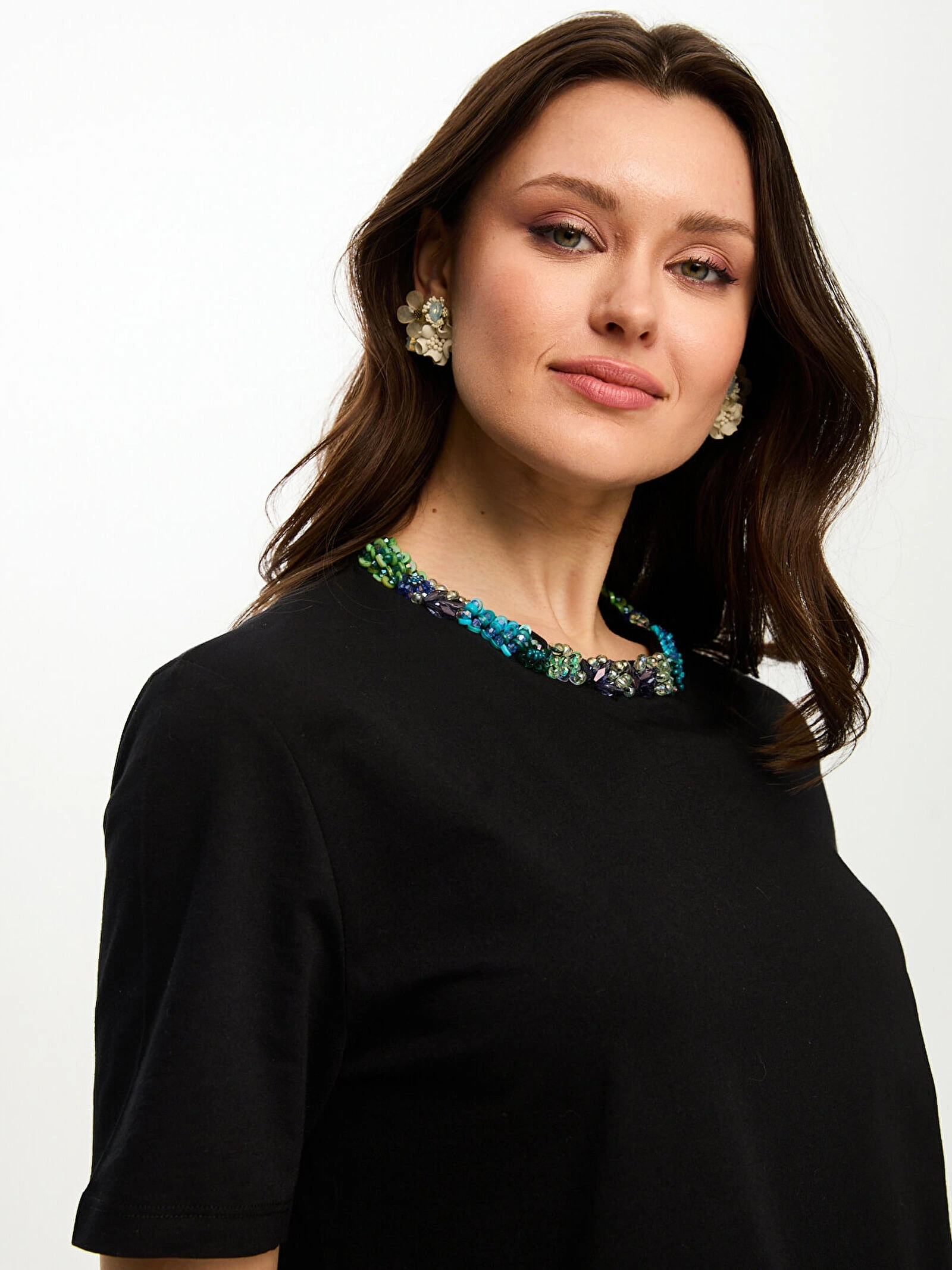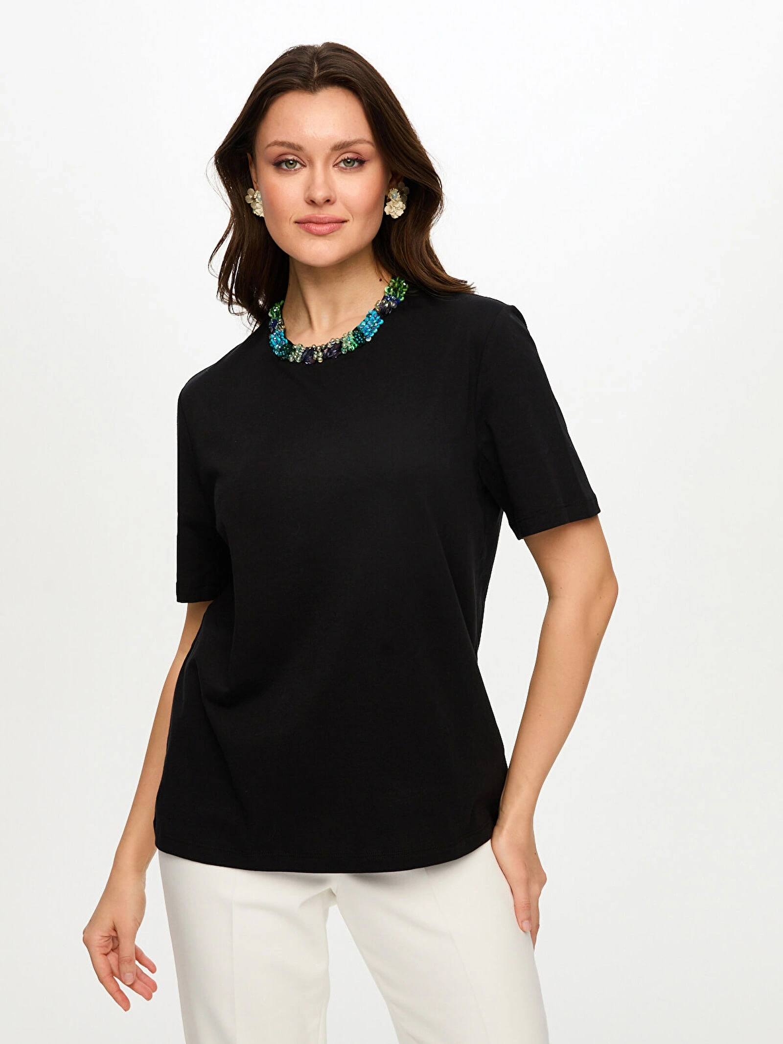 Faik Sönmez Yakası Taş Detaylı Yuvarlak Yaka T-Shirt US26TSH065