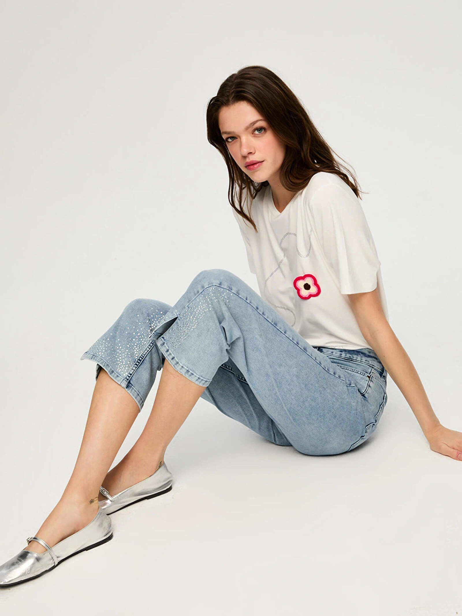 Faik Sönmez Yanları Taş Detaylı Straight Fit Jean Pantolon US26JPN008