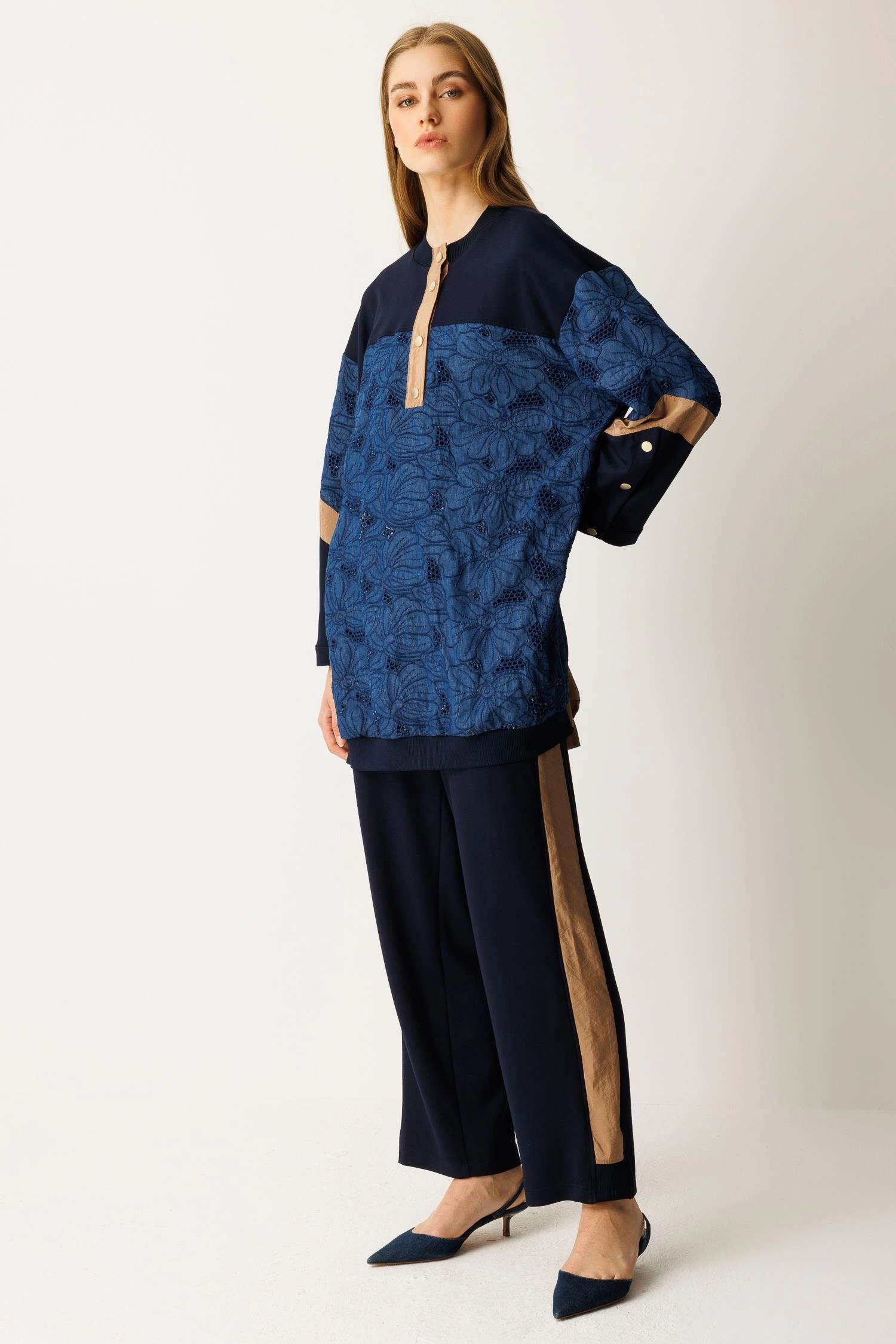 Ghisa Taşlı Pensli Palazzo Pantolon 8702