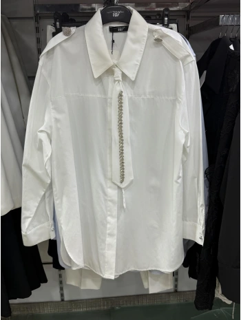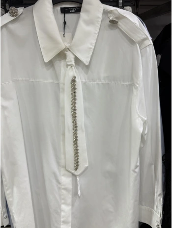 my312 Taş Detaylı Kravatlı Gömlek 25S8608 Ekru