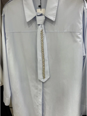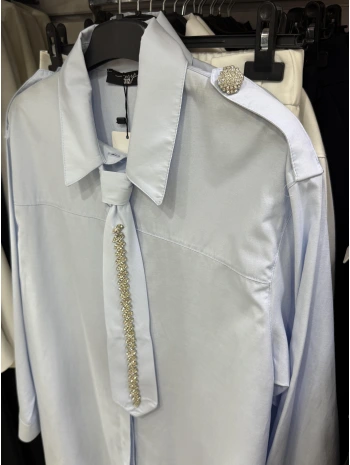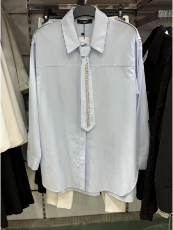 my312 Taş Detaylı Kravatlı Gömlek 25S8608 Mavi