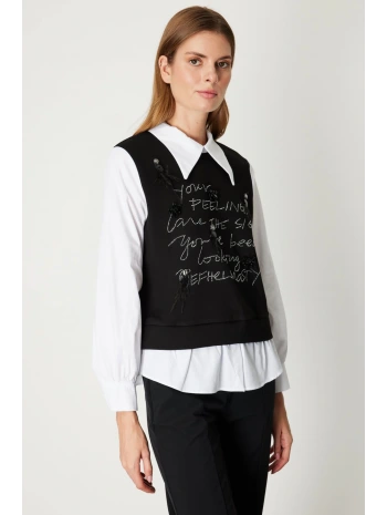 Minimal tasarım çizgilerini mevsimin stil rotasına uyarlayan bu bluz, zarif bir aura yaratıyor. Arka kısmındaki tek düğme kapama detayı ile tamamlanan parça, rahat kesimi sayesinde konforlu bir kullanım sunuyor. İlkbahar-yaz sezonunda takım pantolonlarla veya denim şortlarla kombinlenebilir.