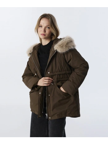 Suni kürk yakalı ve ayarlanabilir bel detaylı tasarımı, montu hem konforlu hem de stil sahibi bir dış giyim parçasına dönüştürür. Kalın yapısı, soğuk hava koşullarında sıcak ve şık kombinler için ideal bir tercih sunar.