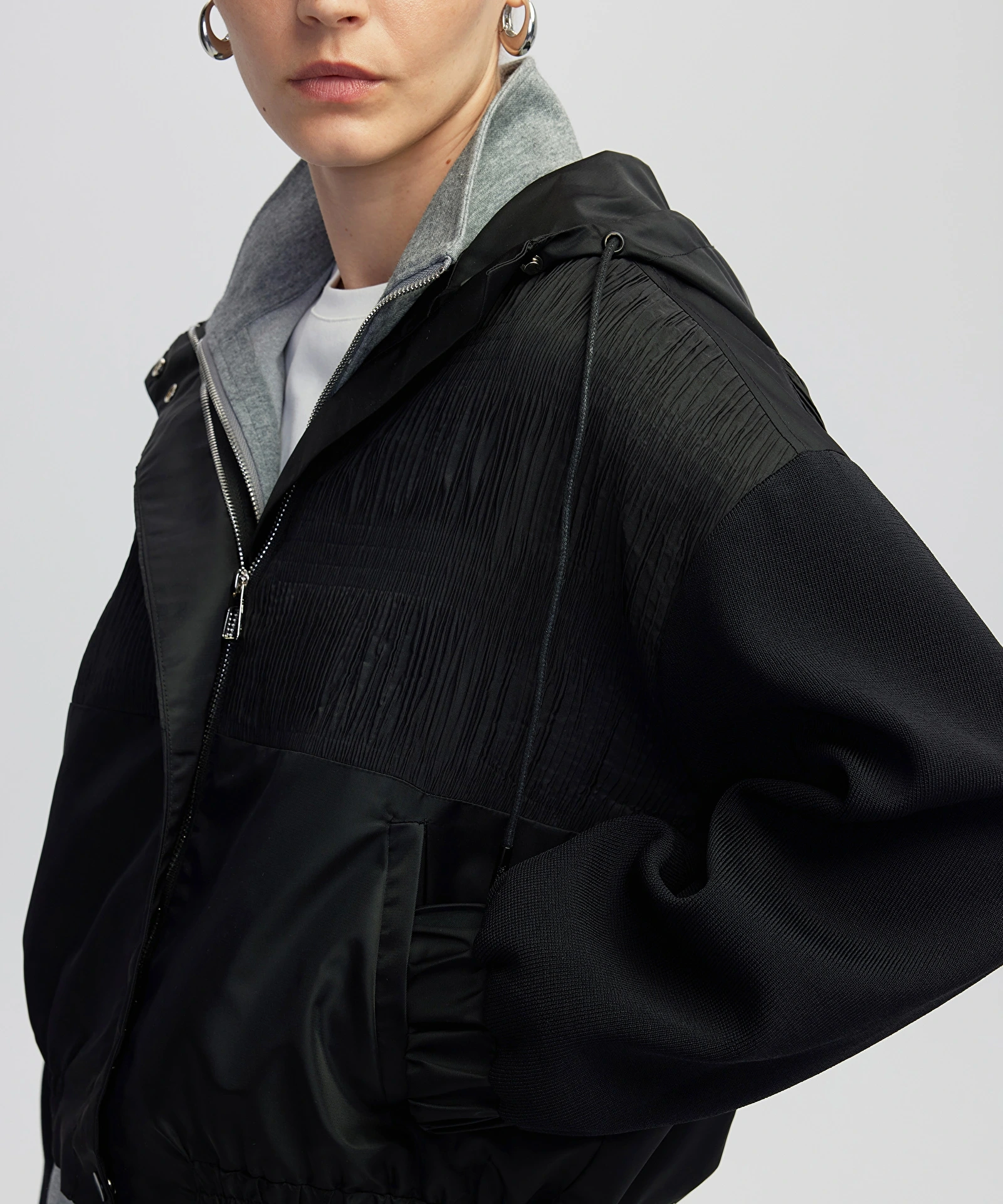 İpekyol Triko Mix Elastik Bel Kadın Siyah Mont IW6250012192, göğsündeki kontrast dokusu ve triko kolları ile alternatif bir dış giyim seçeneği sunar. Gizli patlı tasarımı, elastik beli, cepleri ve kapüşonu ile hem konforlu hem şık bir kullanım sağlar. Kumaş mixli yapısı ve özgün dokuları, modern stilinizi tamamlar ve göze hitap eder.