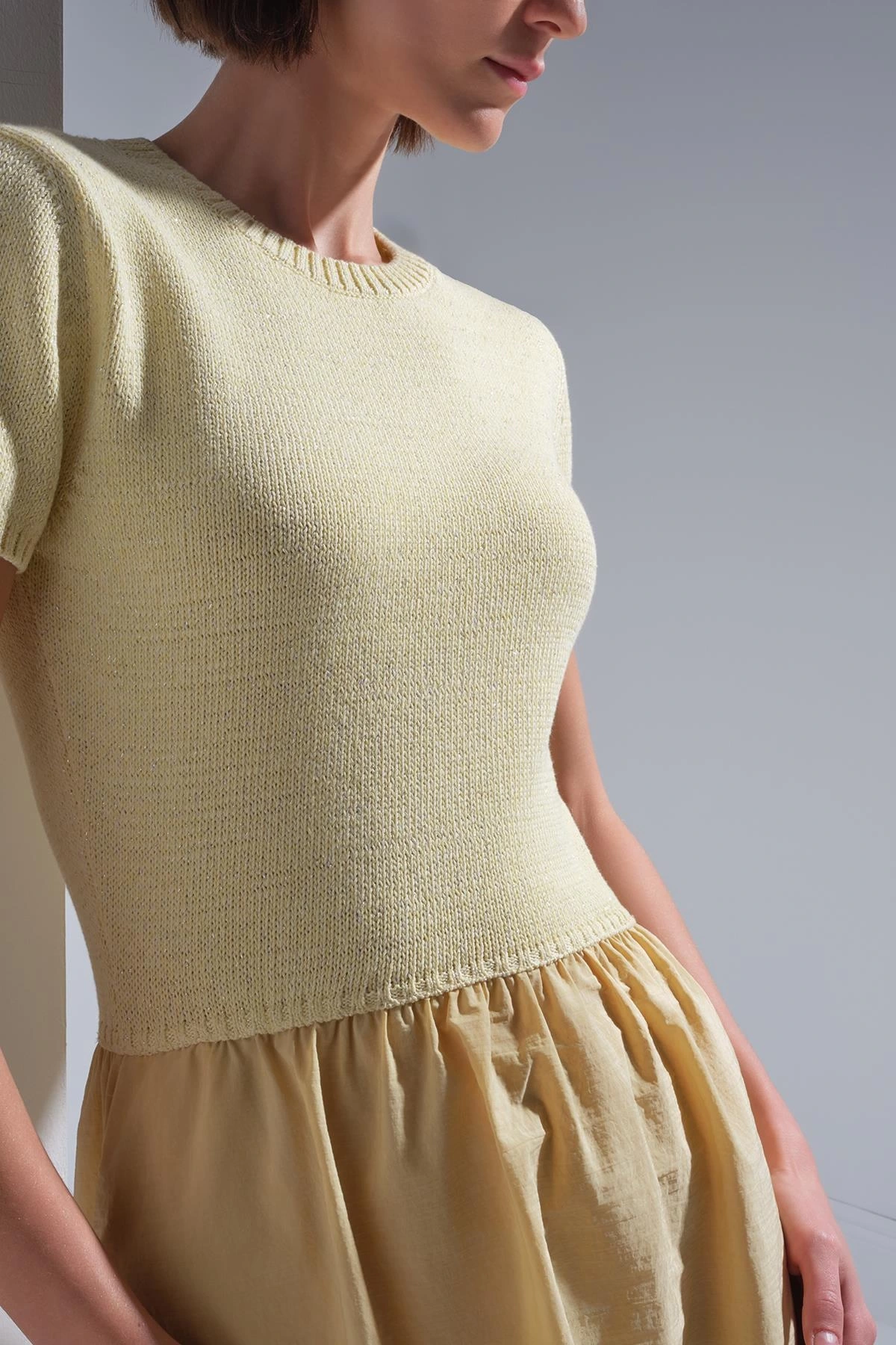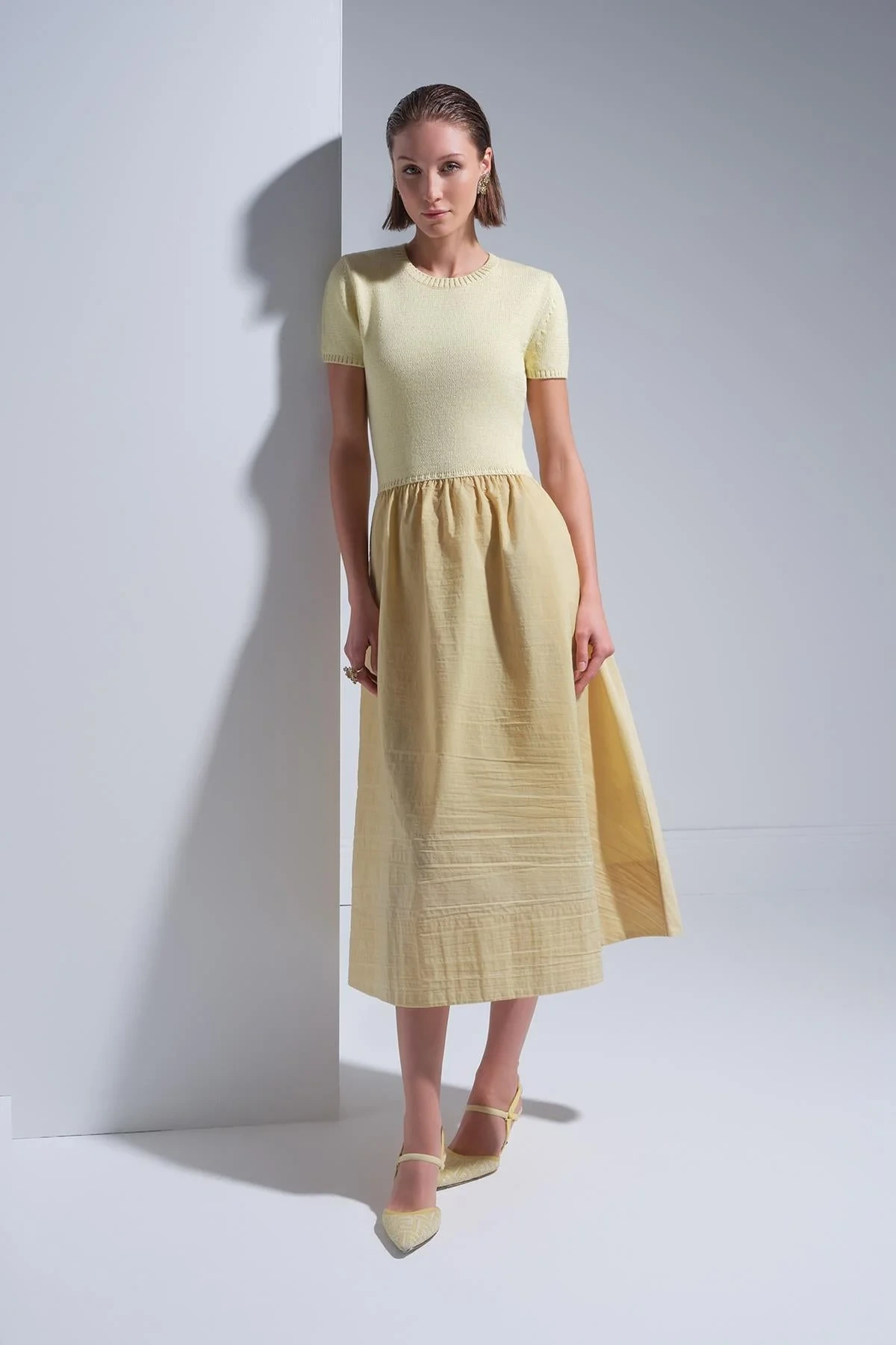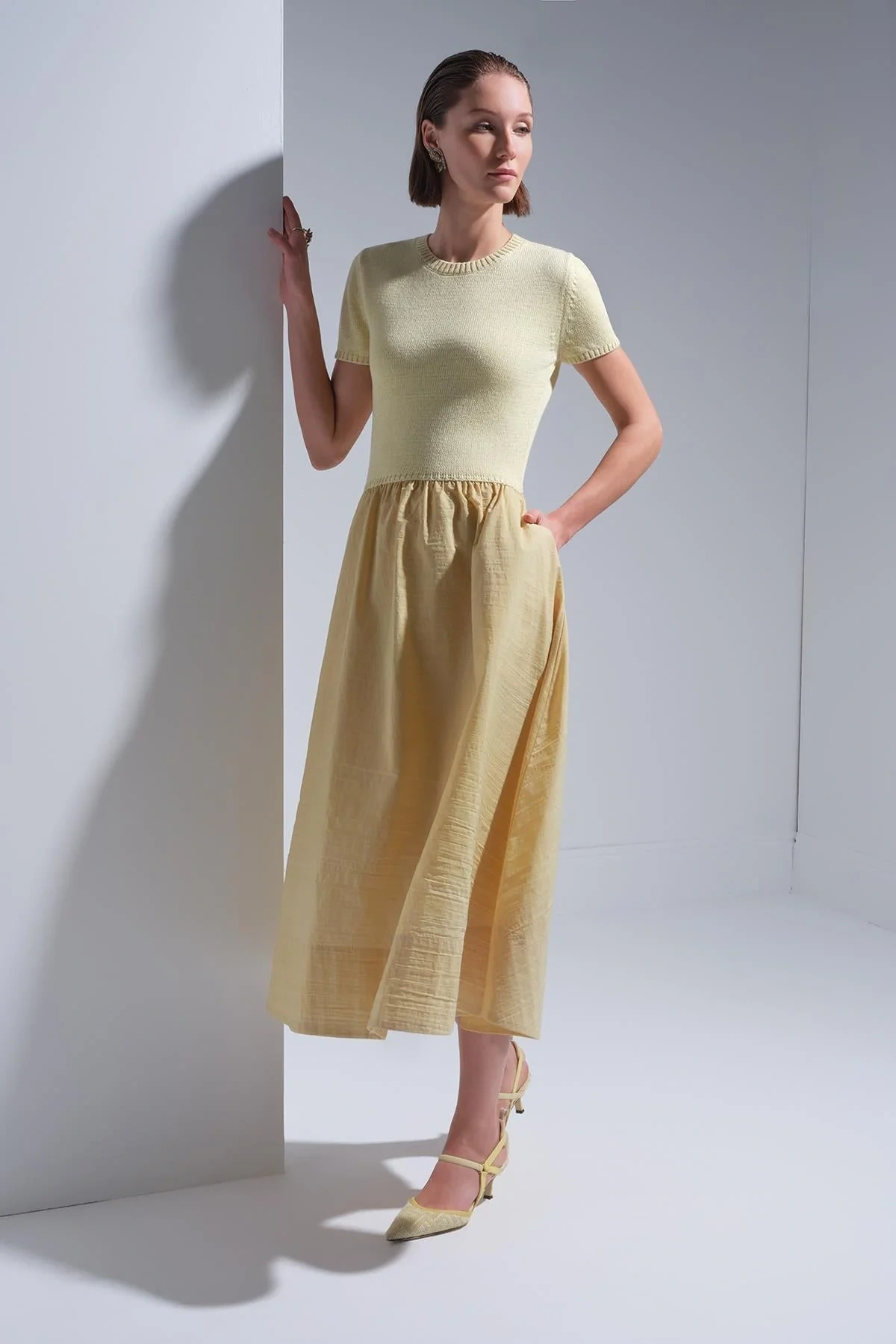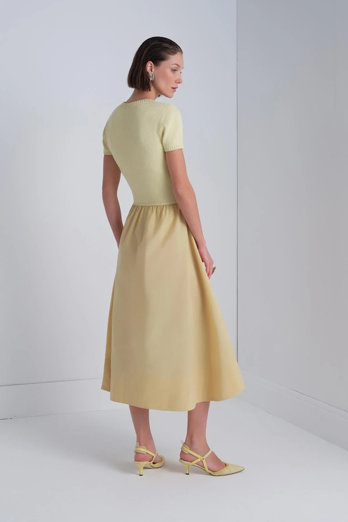 Join Us Bisiklet Yaka Kumaş Etekli Sarı Midi Elbise 2025S146