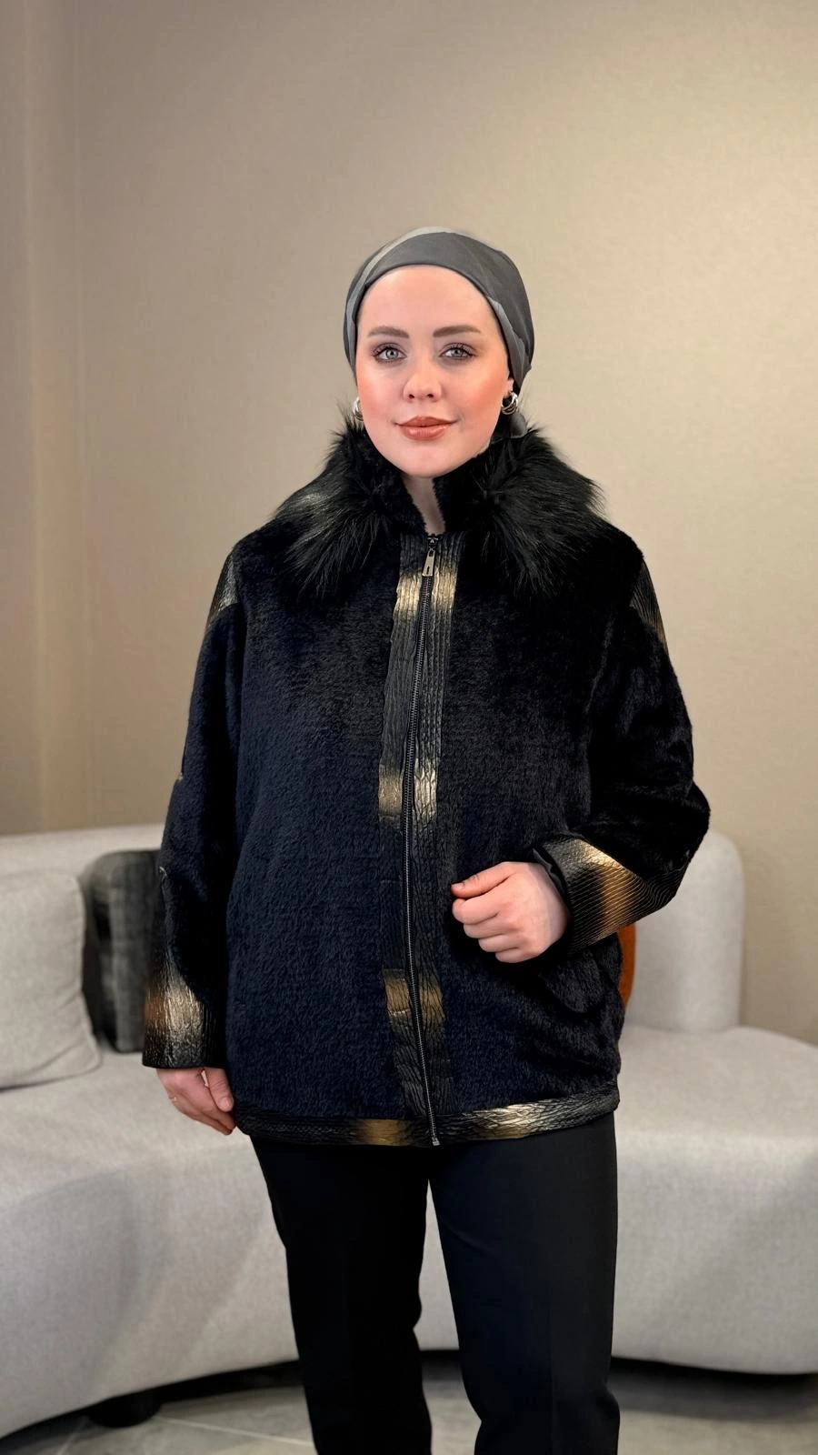 Matex Yakası Peluş Renkli Kaban 1230
