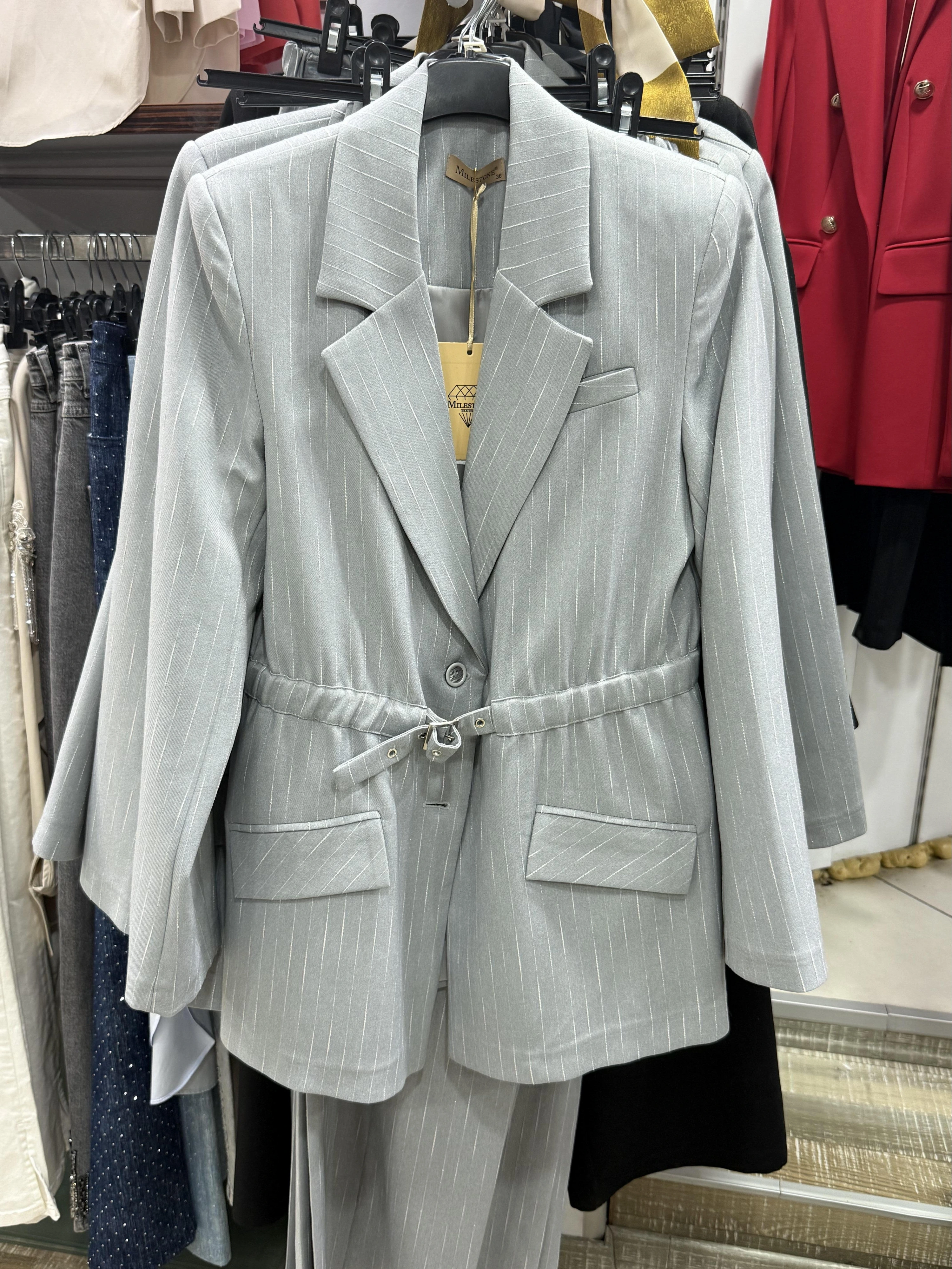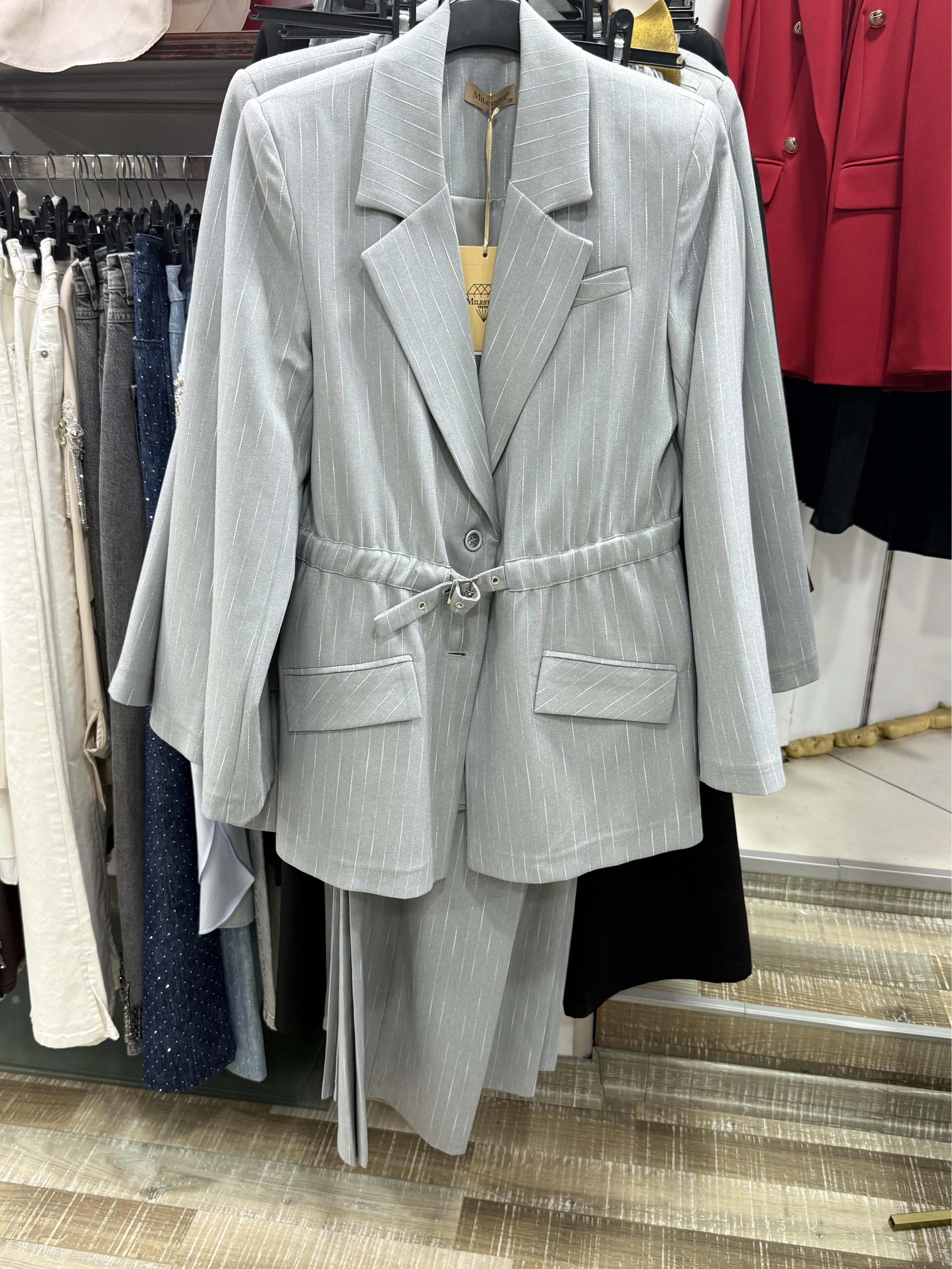 Milestone Çizgili Beli Kemerli Takım 687
