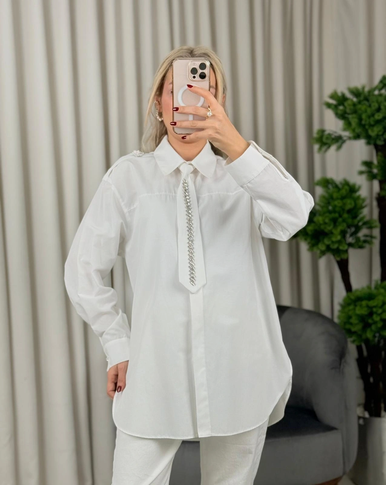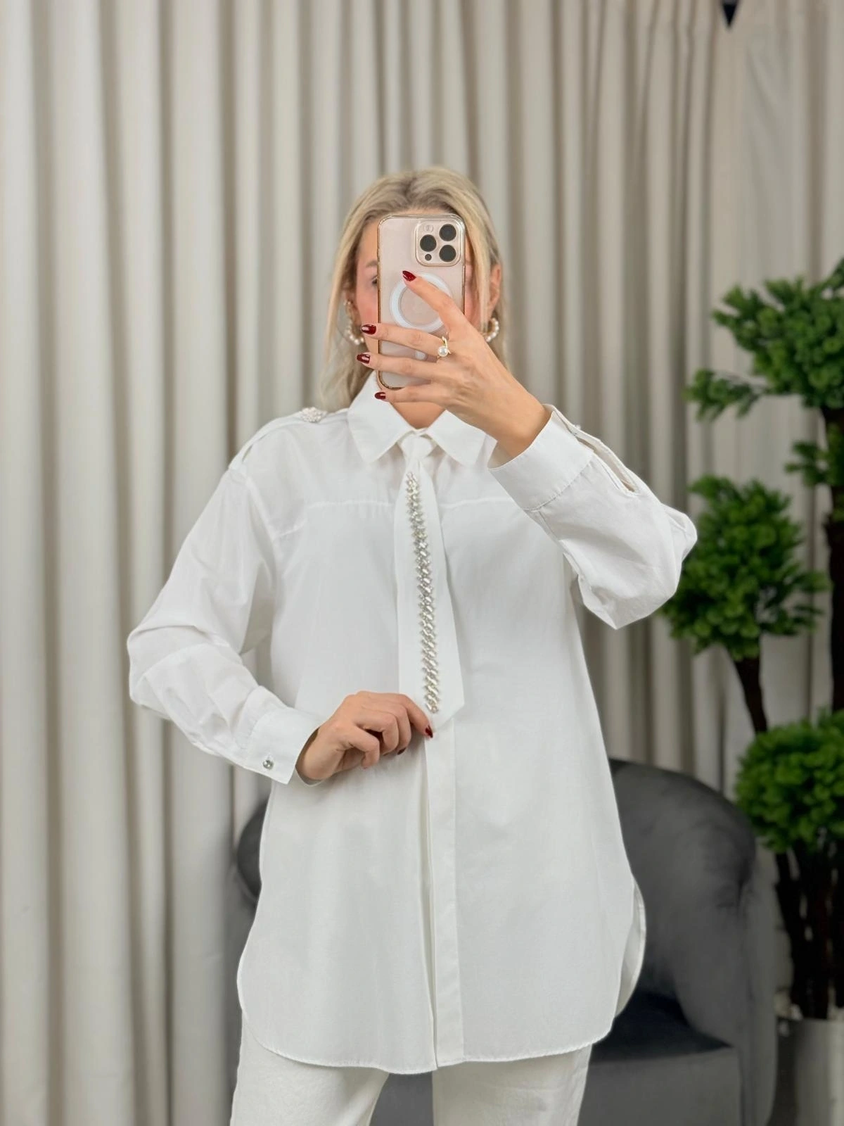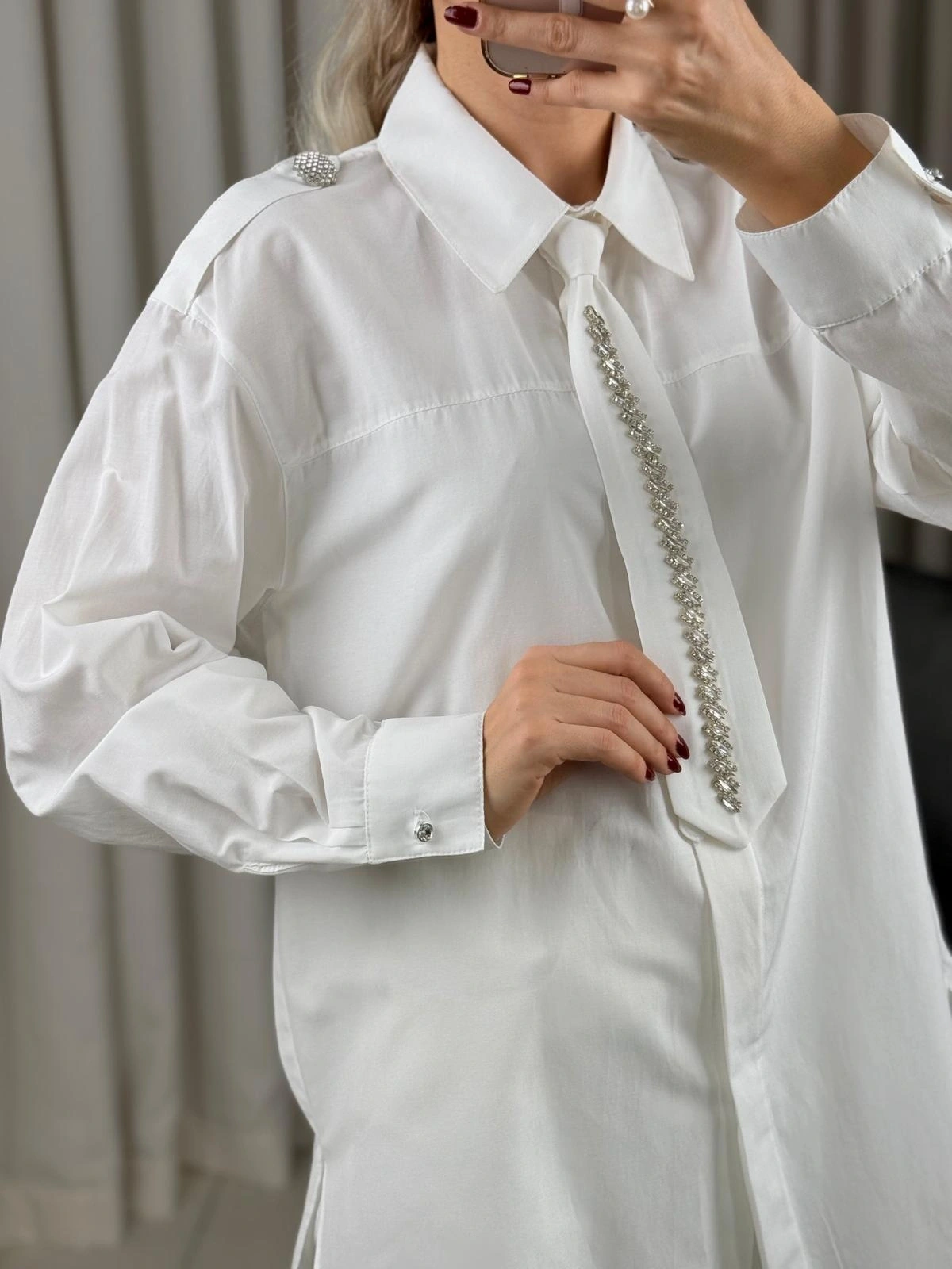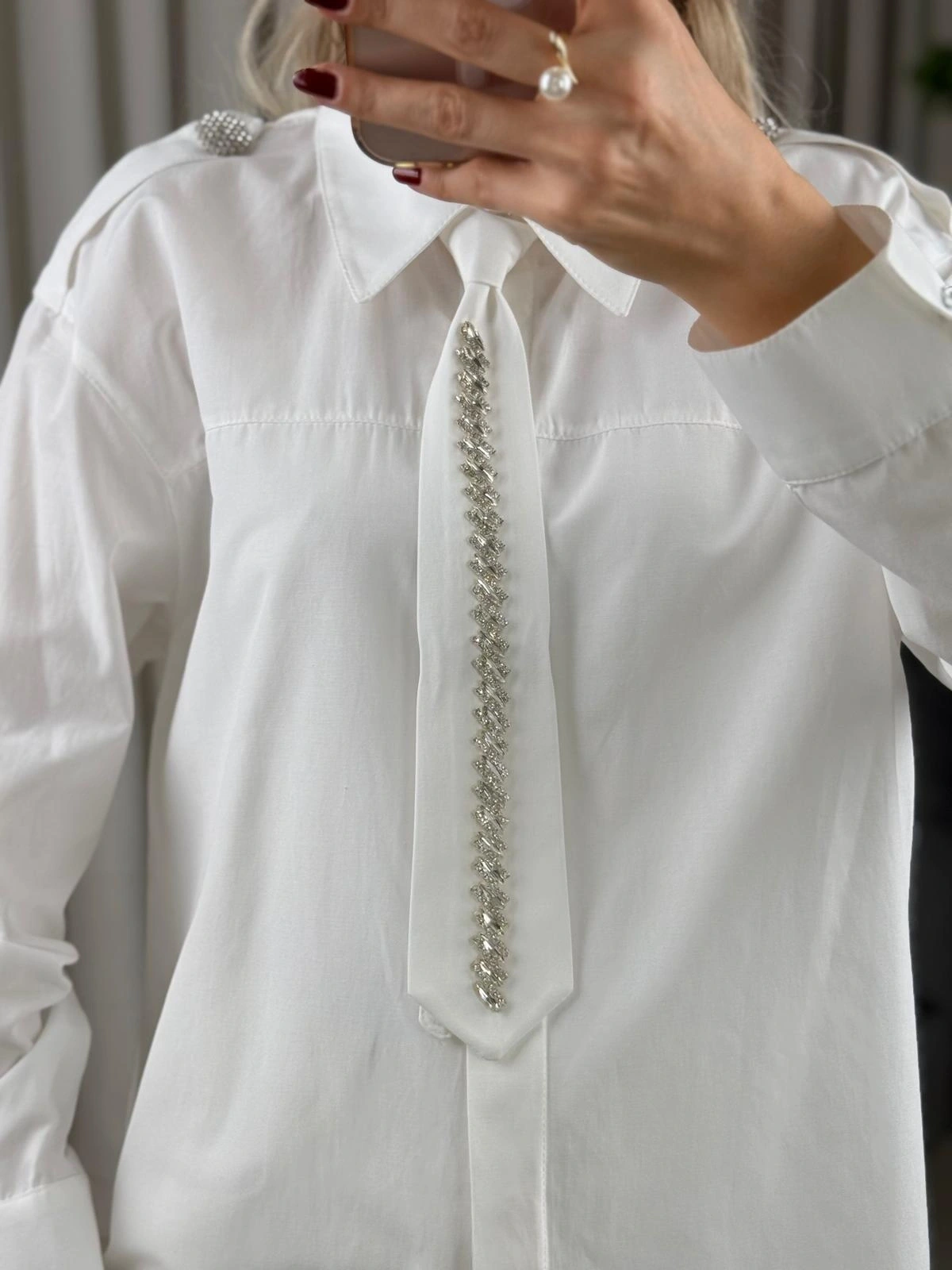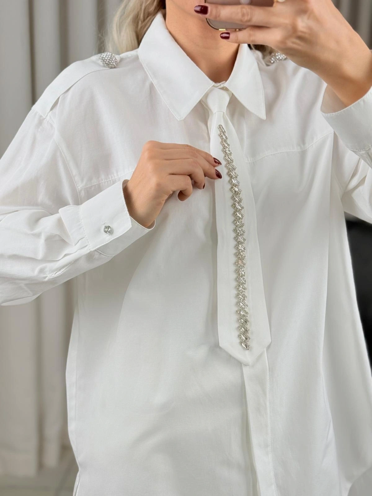 my312 Taş Detaylı Kravatlı Gömlek 25S8608 Ekru