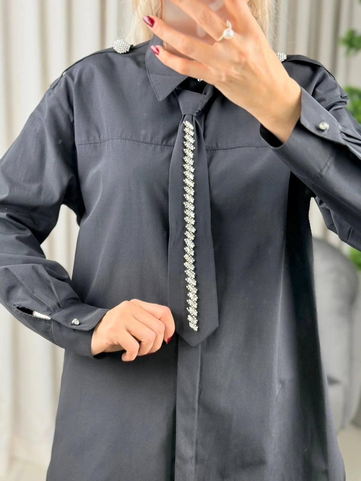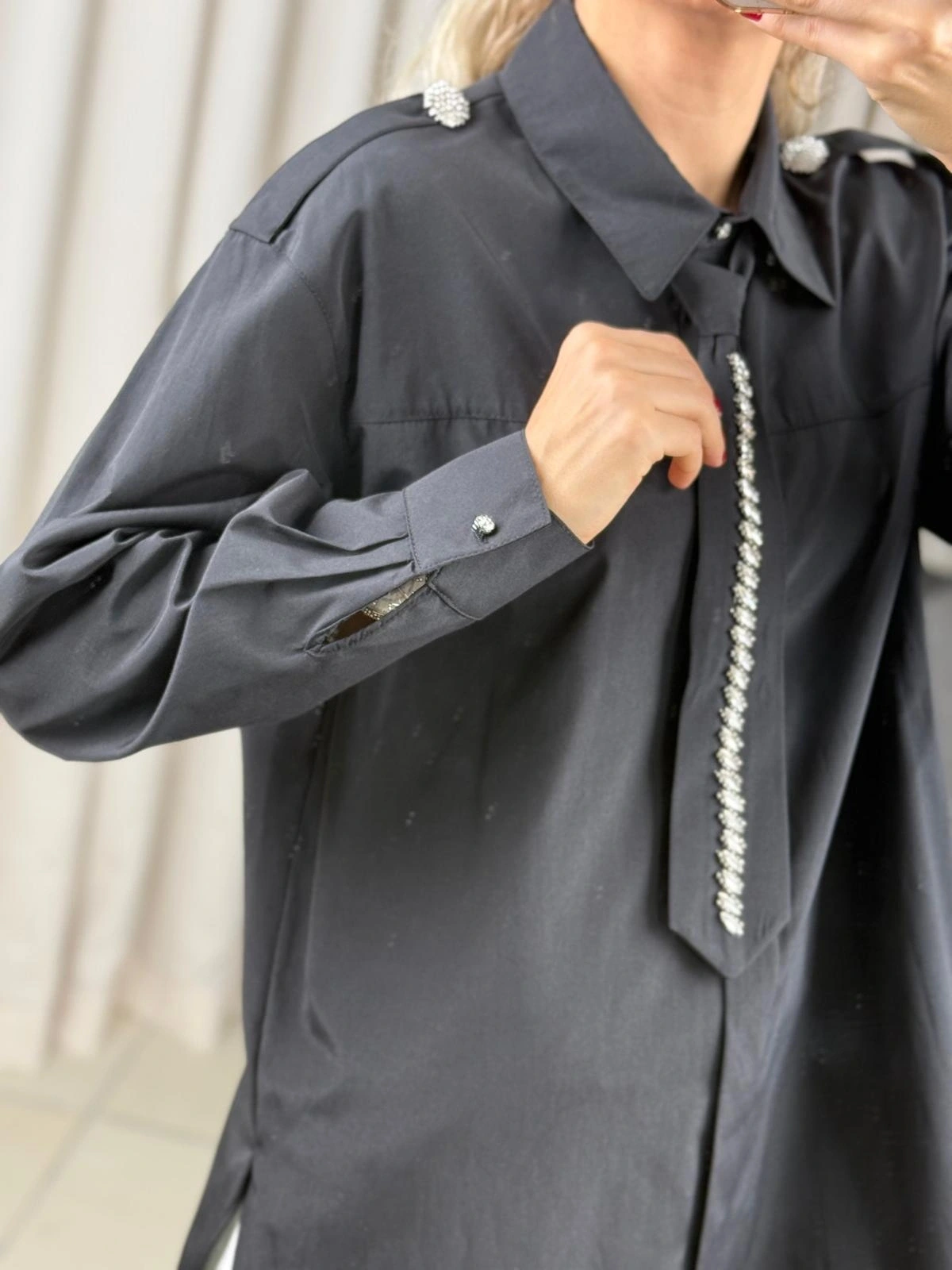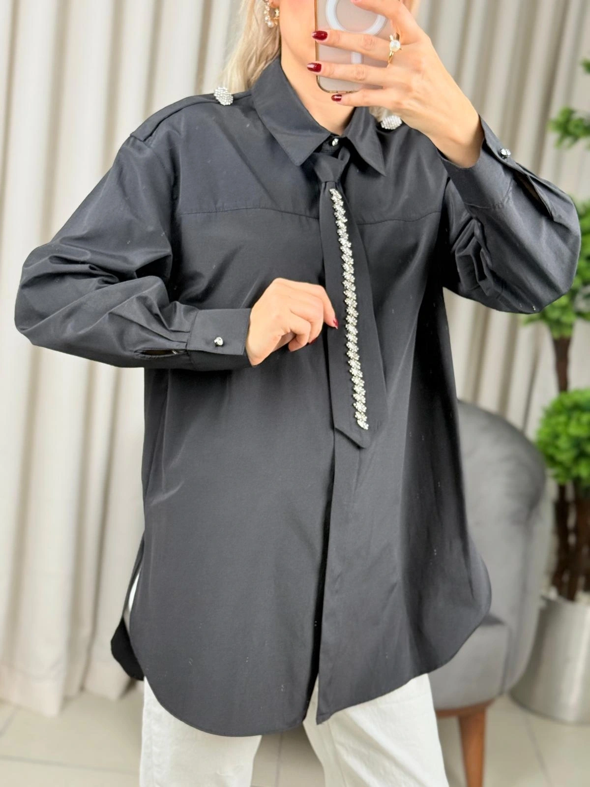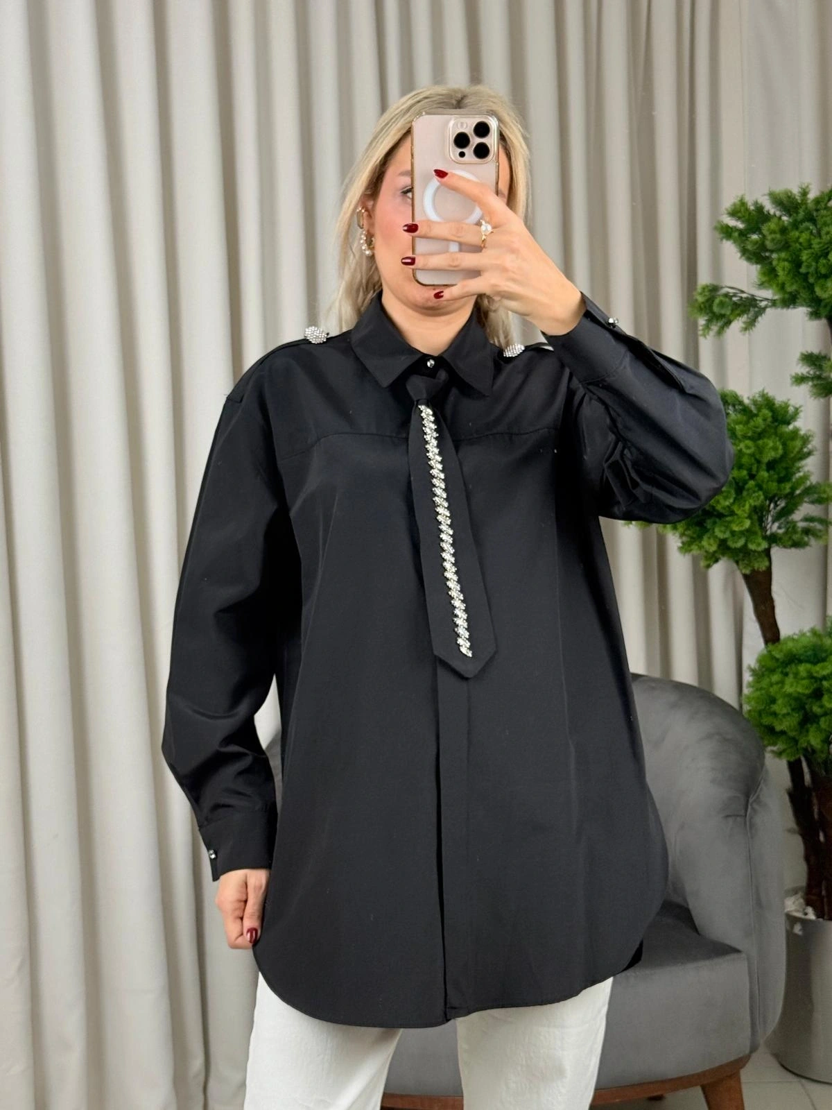 my312 Taş Detaylı Kravatlı Gömlek 25S8608 Siyah