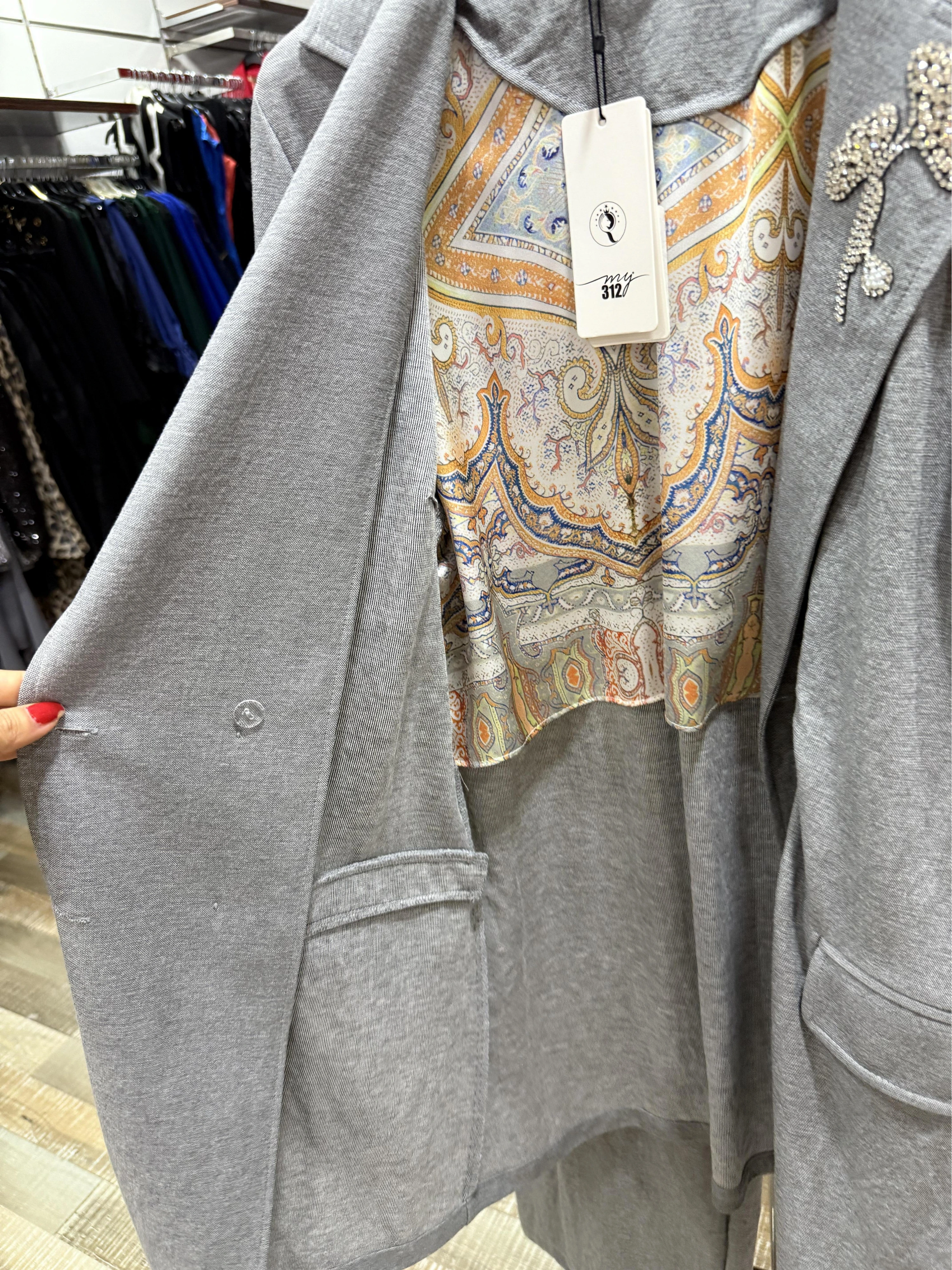 my312 Yakası Taşlı Takım 25S1400 Gri