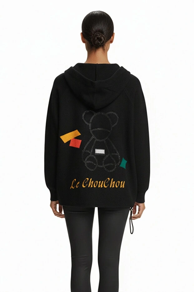 On Fashion Arkası Ayı Desenli Kapüşonlu Siyah Hırka 60933, eğlenceli ayı baskı detayı ve rahat tasarımı ile günlük kullanıma uygun, dikkat çekici bir hırkadır. Kapüşonlu yaka tasarımı, spor bir görünüm sunarken fermuarlı kapama şekli pratik ve konforlu bir kullanım sağlar. Uzun kollu yapısı, serin havalarda ideal bir koruma sunarken çift cepli tasarımı, hem fonksiyonellik hem de rahatlık kazandırır.