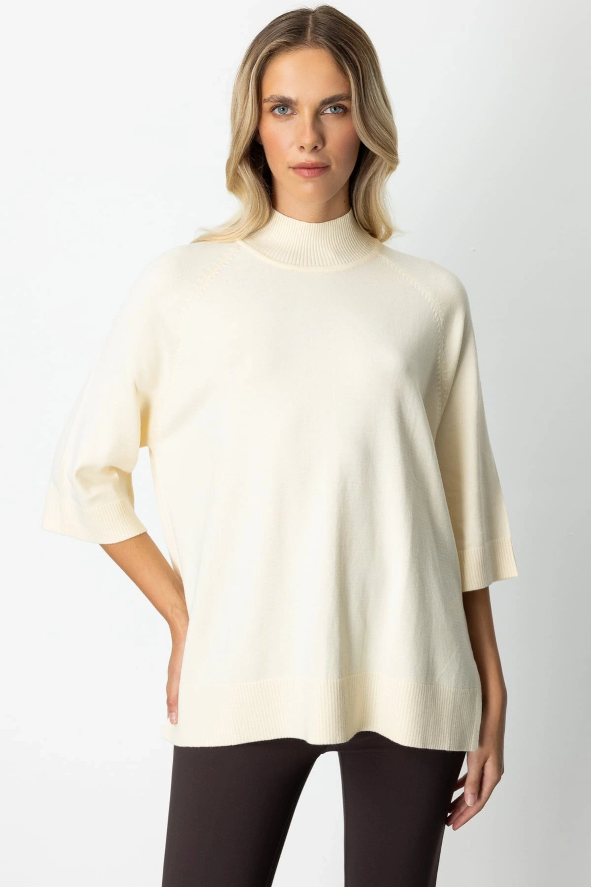 Astarsız yapıya sahip olan krem renk kadın kazak, günlük kombinlerden şehir stiline kadar farklı kombin alternatifleriyle rahatlıkla kullanılabilir.