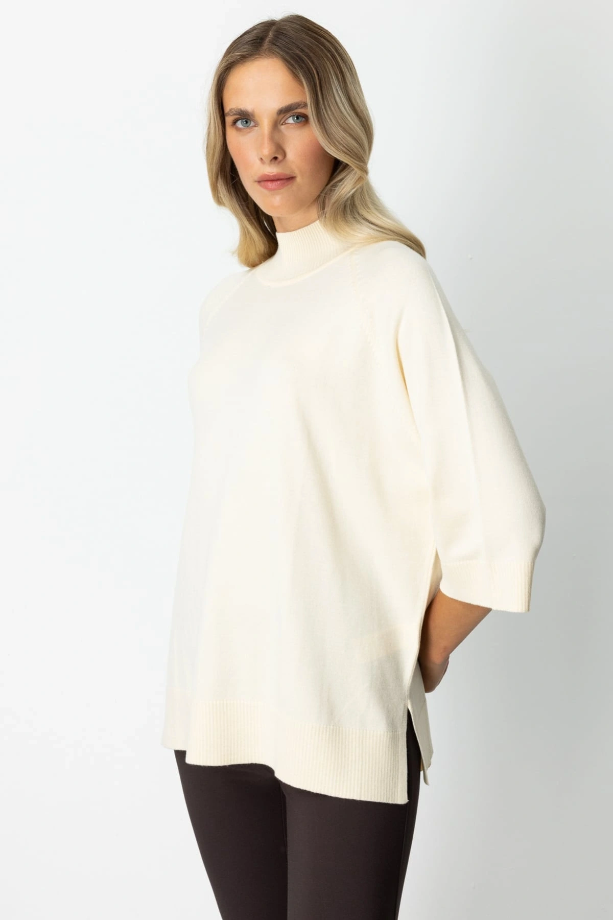 Ürün Adı: On Fashion Kadın Arkası Düğmeli Yırtmaçlı Balıkçı Salaş Krem Renk Kazak 65310