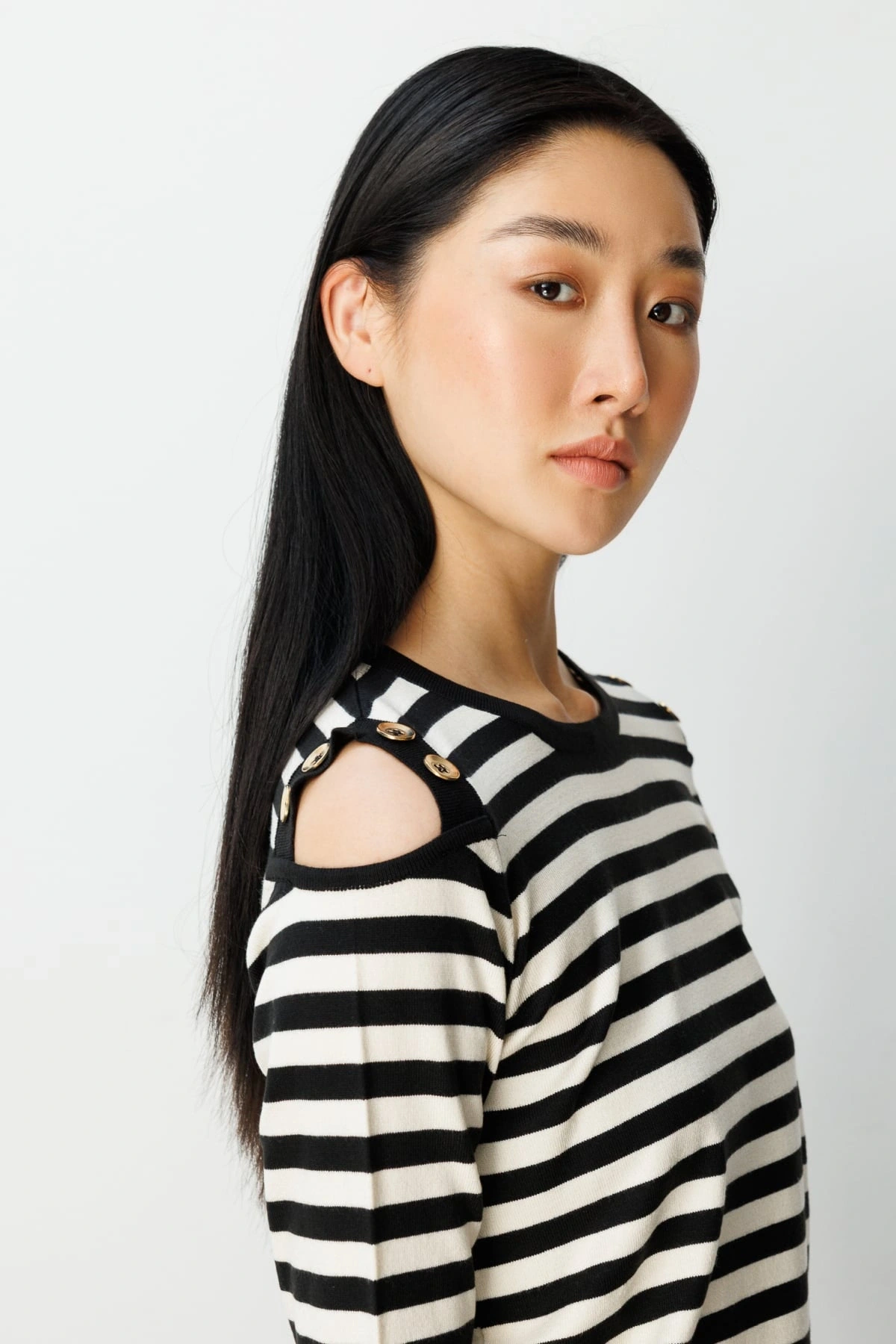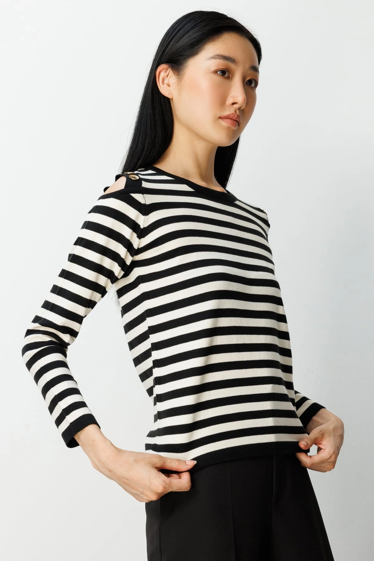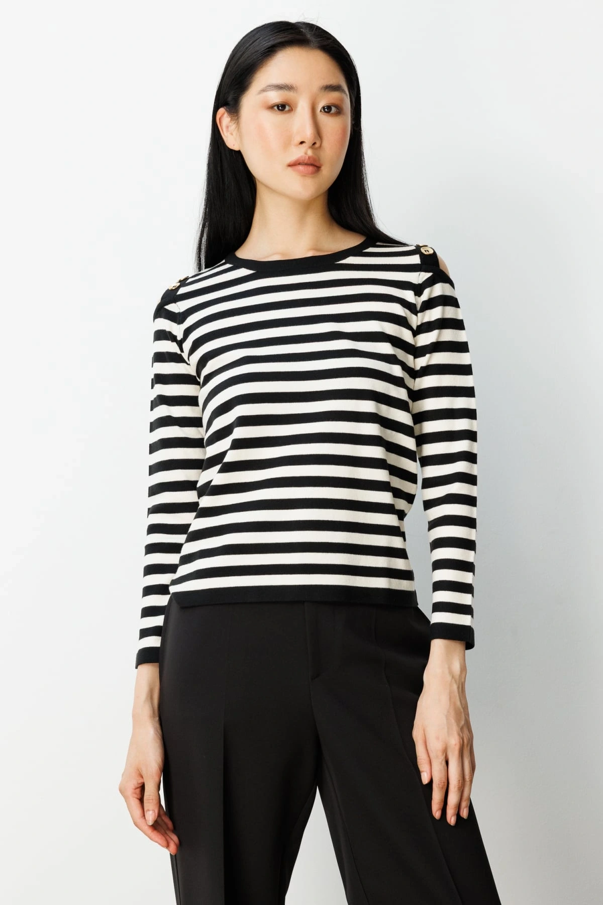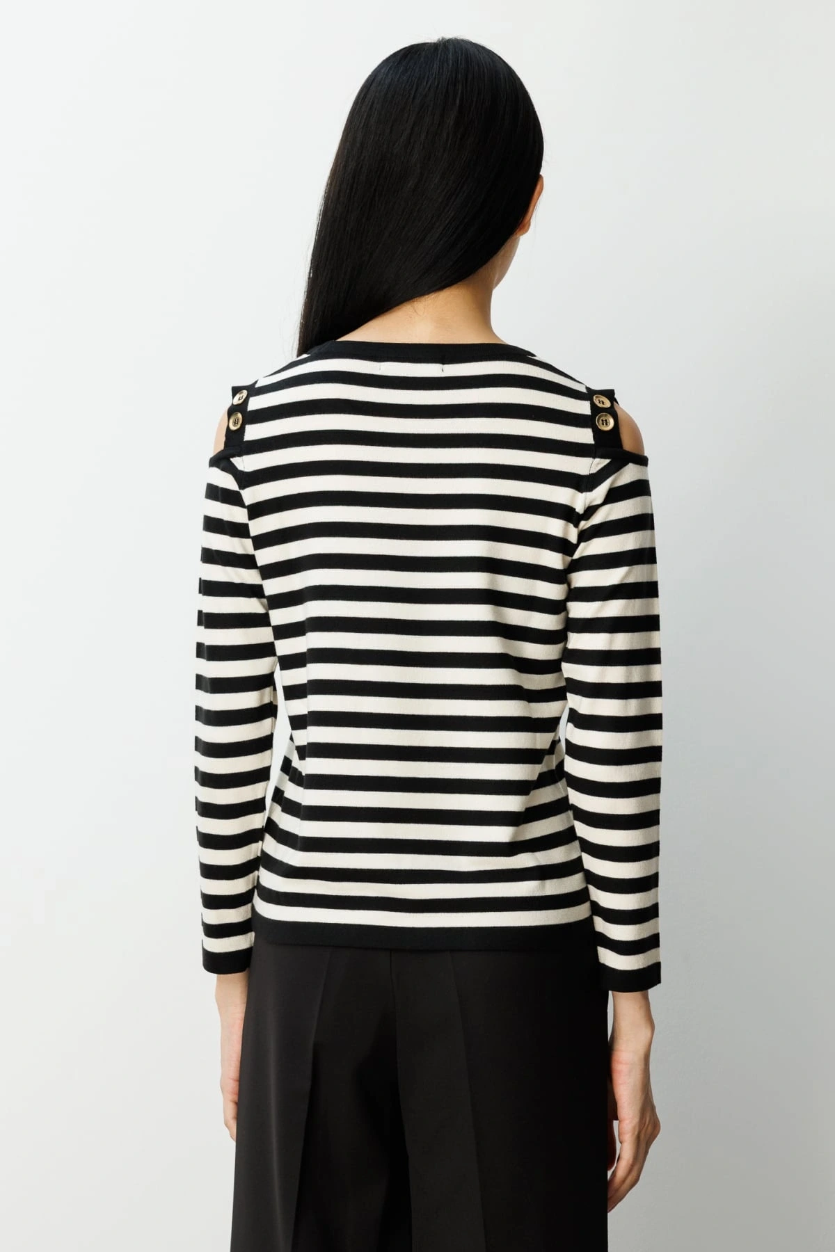 Ürün Adı: On Fashion Kadın Düğme Detaylı Siyah Çizgili Kazak 65304