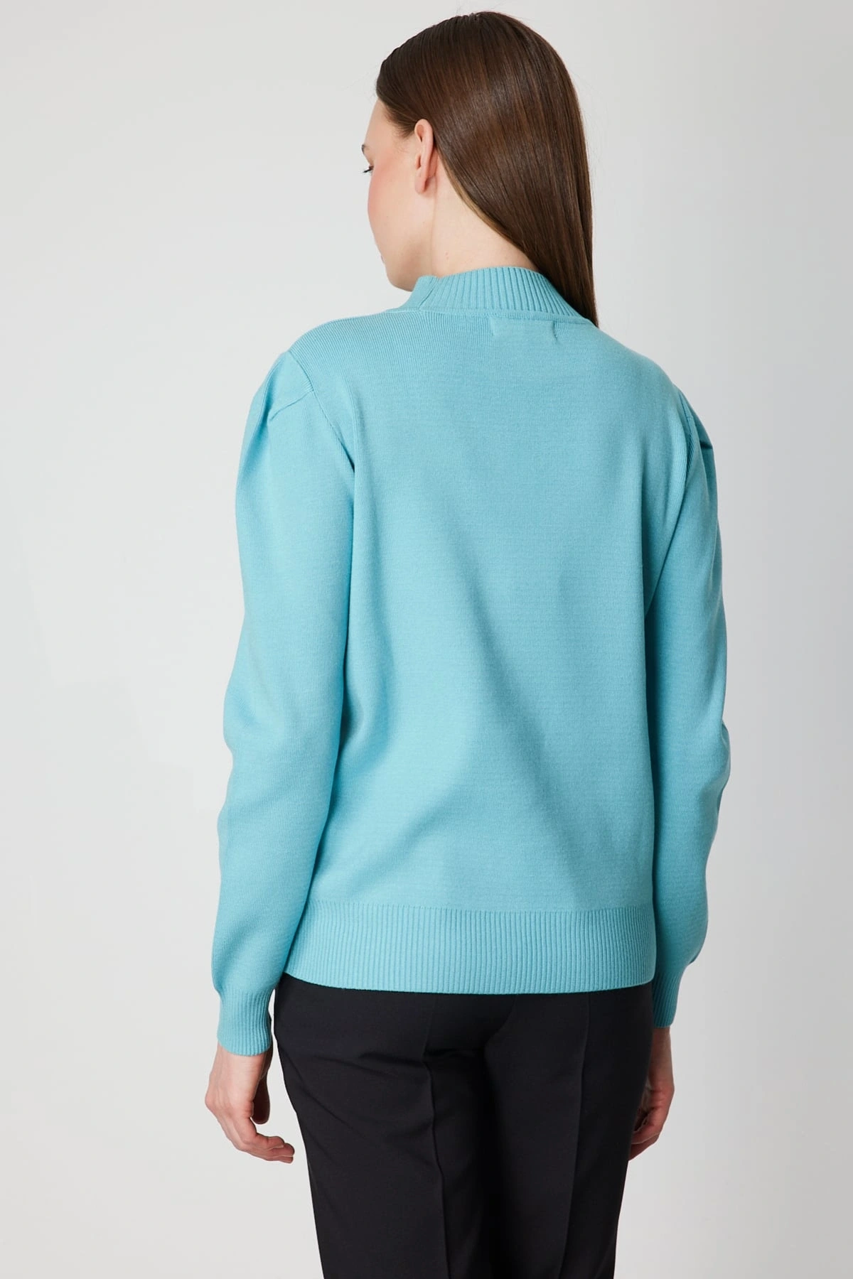 Ürün Adı: On Fashion Kadın Düğmeli Omuz Detaylı Turkuaz Kazak 65331